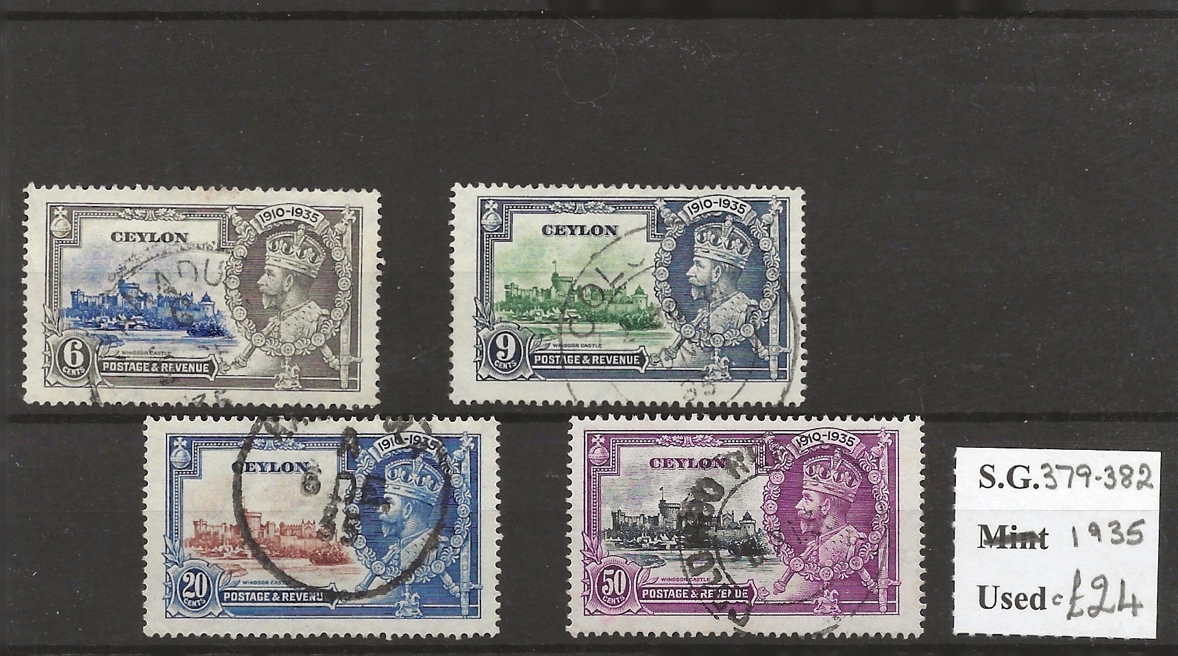 Ceylon 1935 Silver Jubilee set (SG 379/82) vfu Cat £22