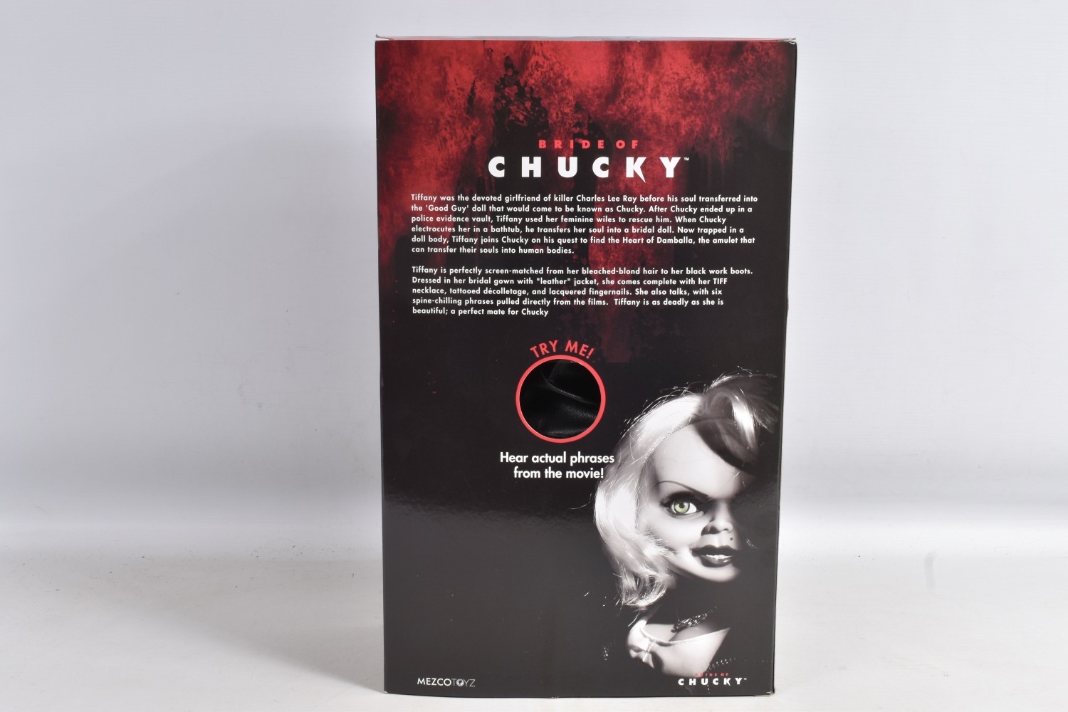 A BOXED MEZCO TOYZ BRIDE OF CHUCKY DOLL, asst. 78015, CC1306, opened from the base but doesnt appear to have ever been out of the box, very little wear, some scratches to the base of the box