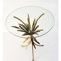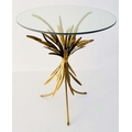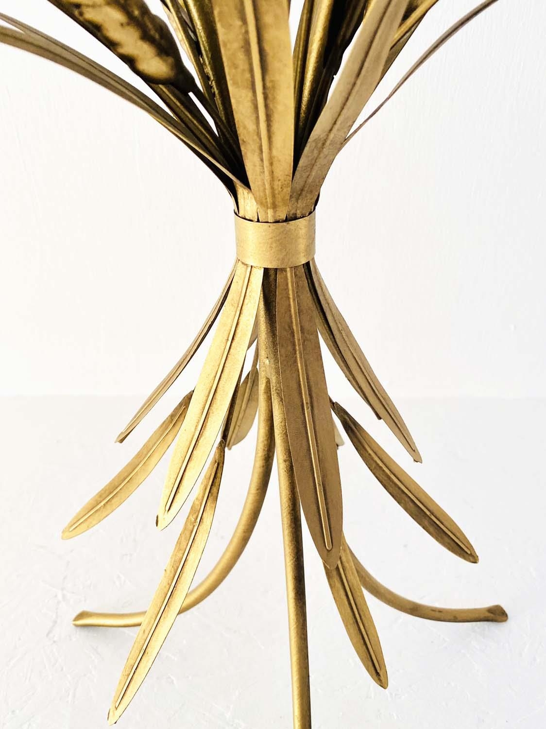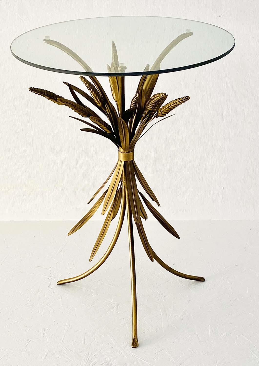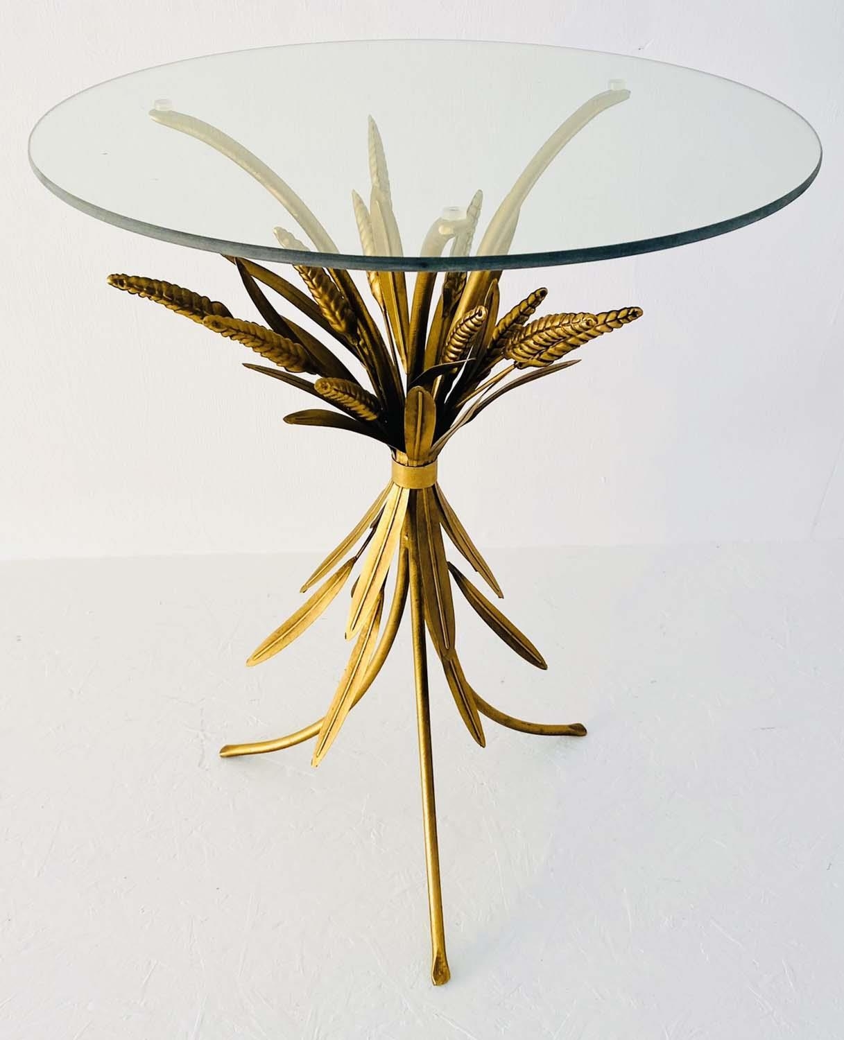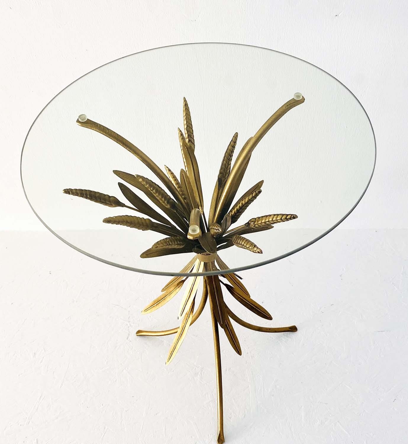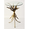 MAISON JANSEN STYLE SIDE TABLE, 67cm high, 47cm diameter, wheat sheaf design, gilt metal, glass top.