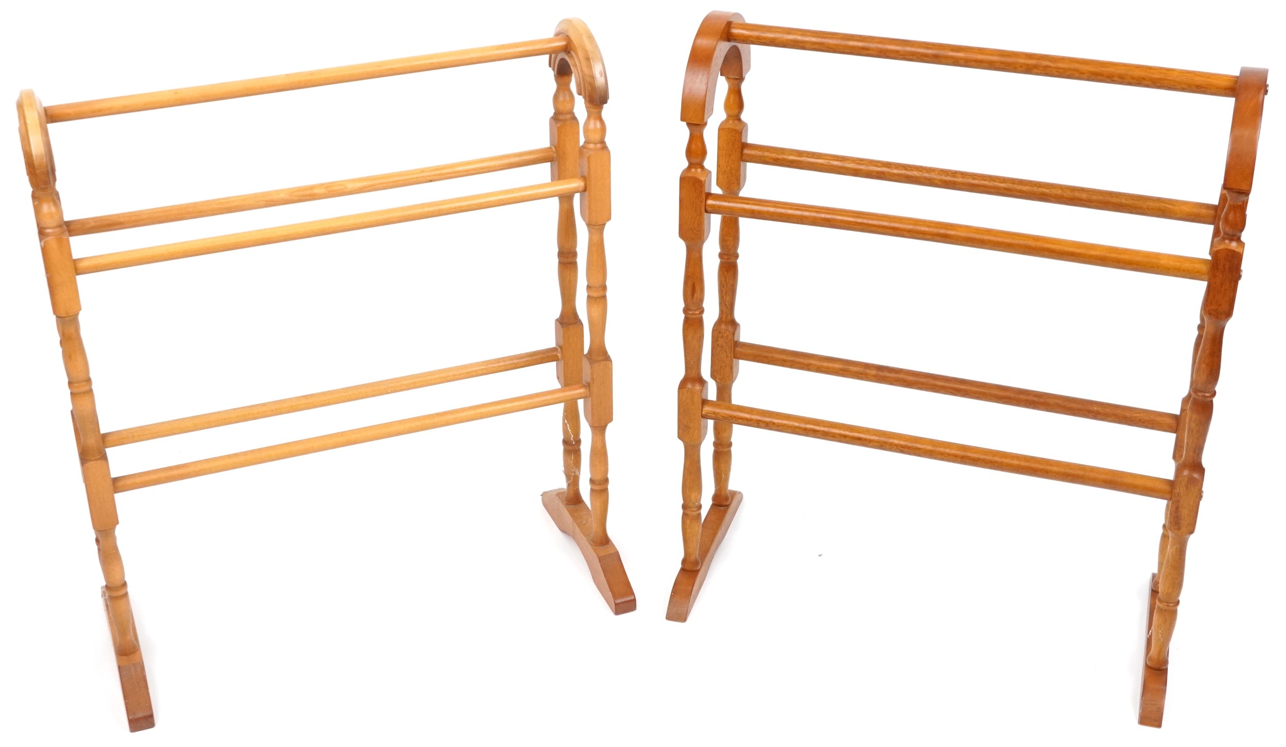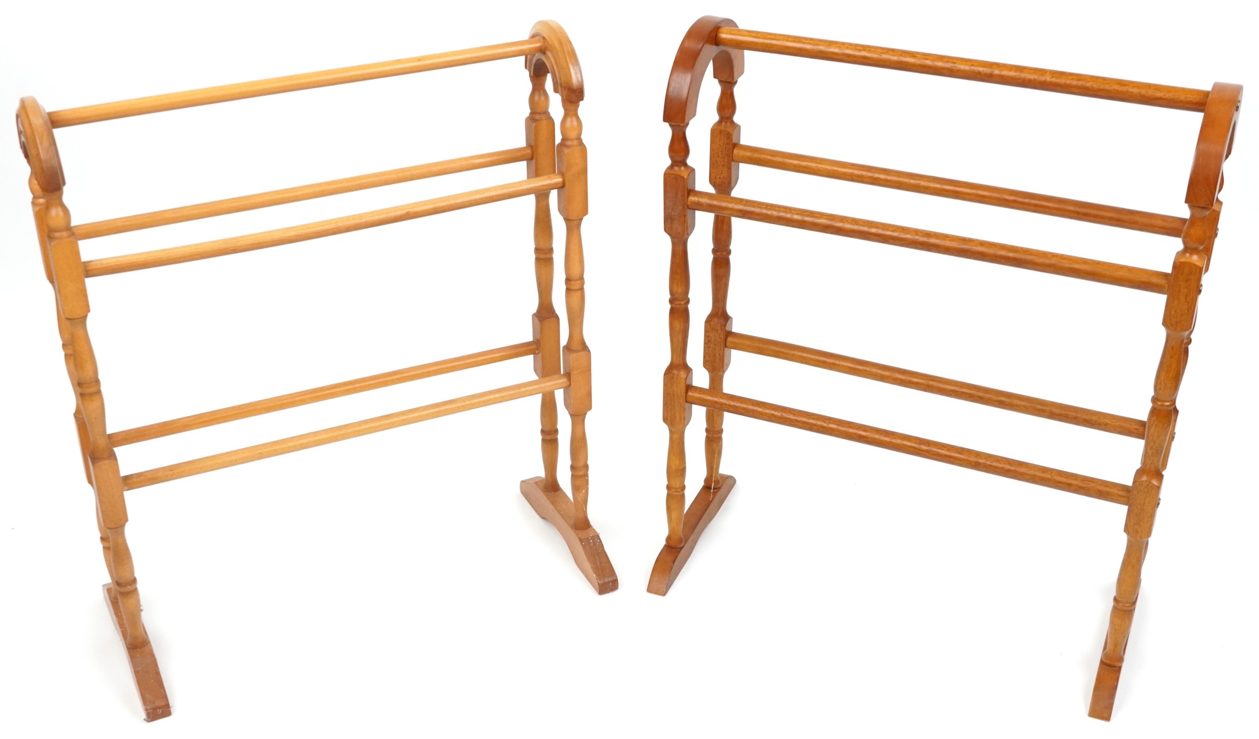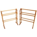 Two similar late 20th century turned towel rails, the largest 80cm high x 66cm wide.