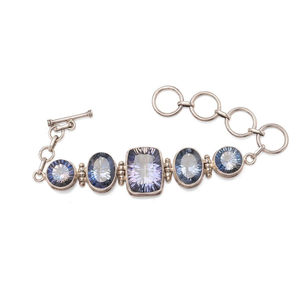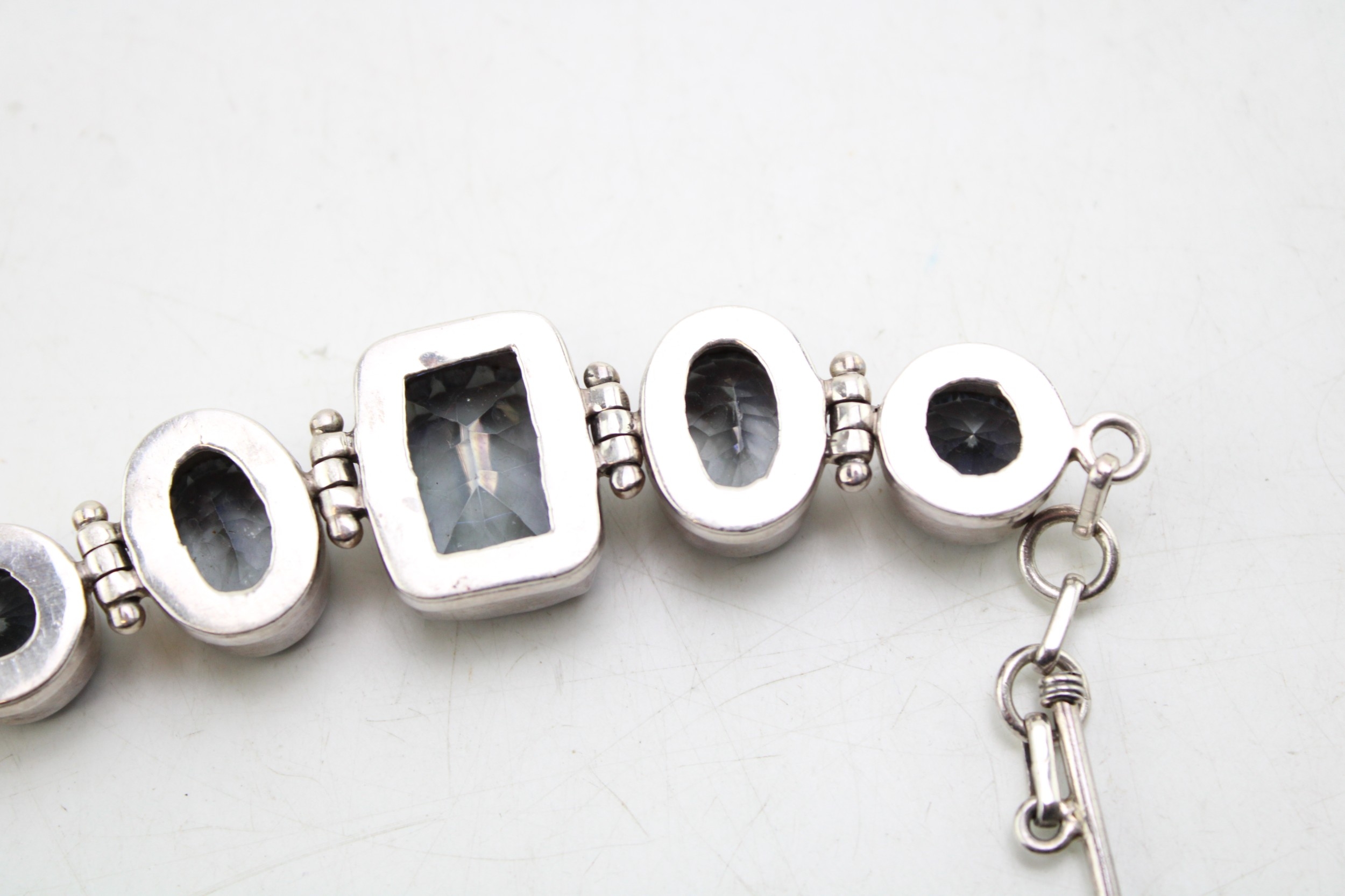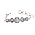 A vintage silver lady's bracelet, set with blue coloured stones, 20cm long.