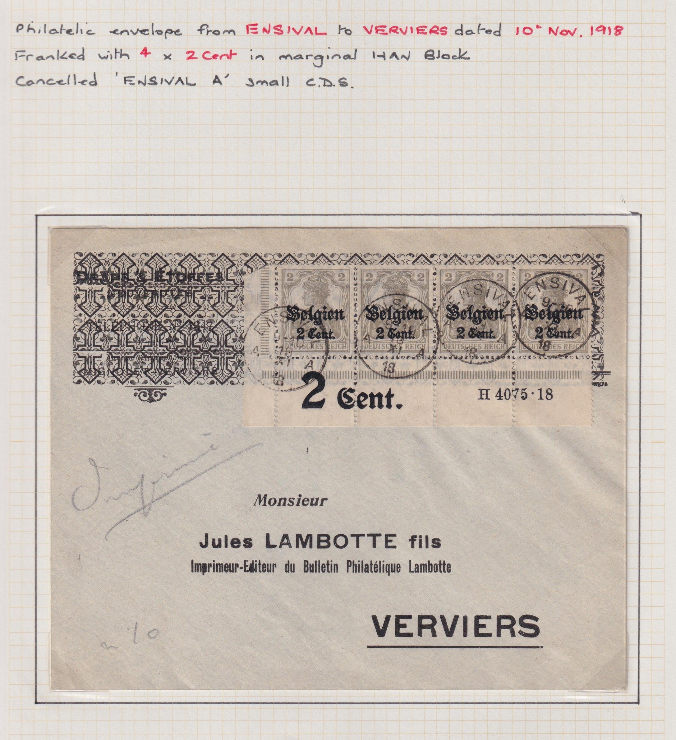WW1 Occupations of Belgium collection of covers and cards written up on pages, a fine range, including some bearing locals, stampless etc, mostly written up.