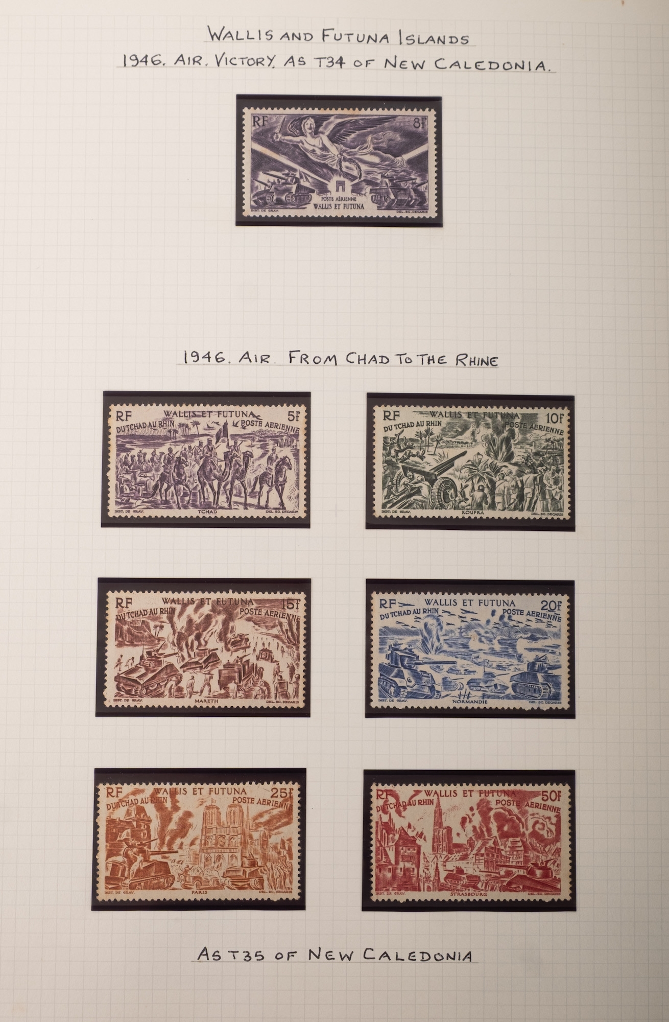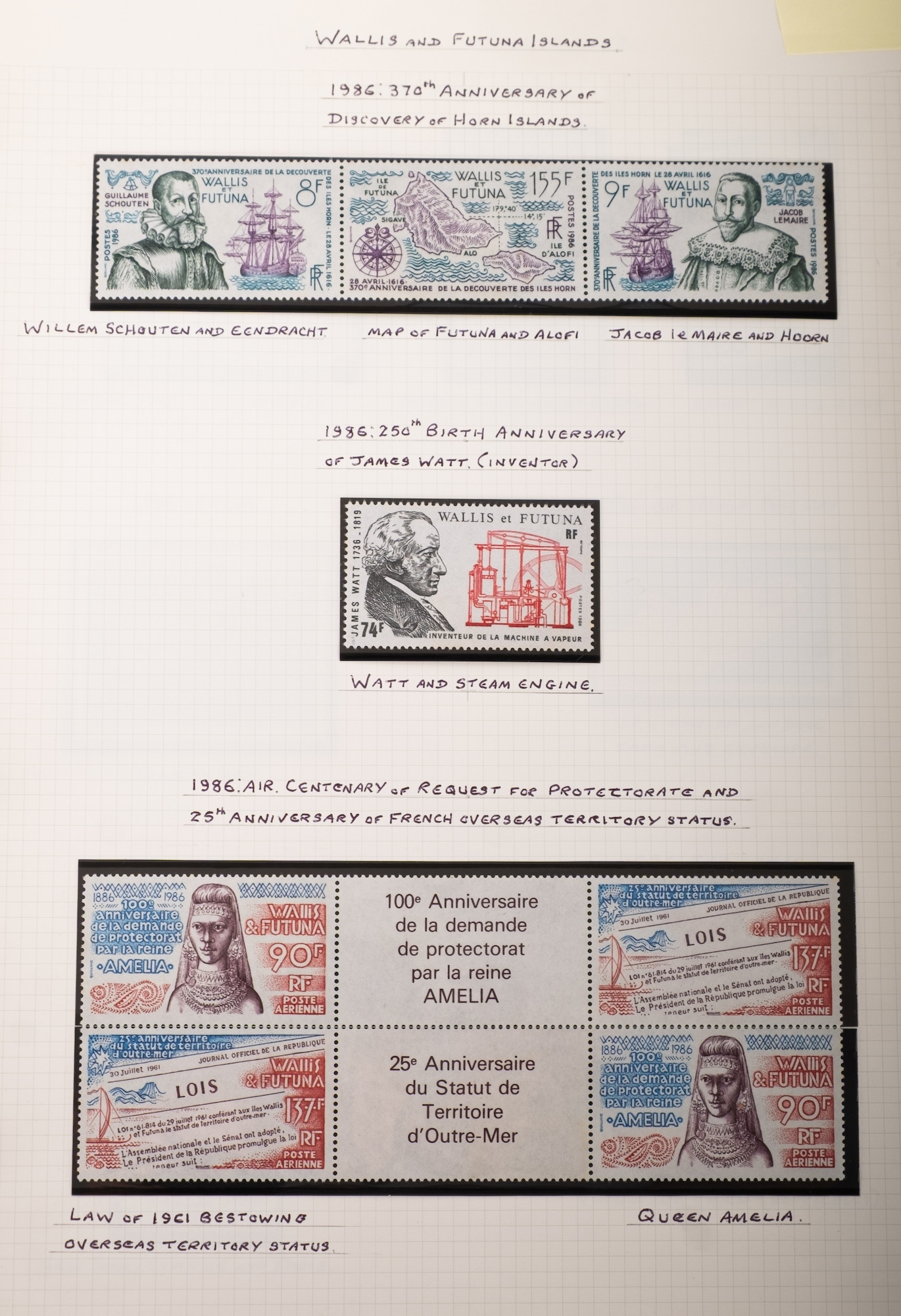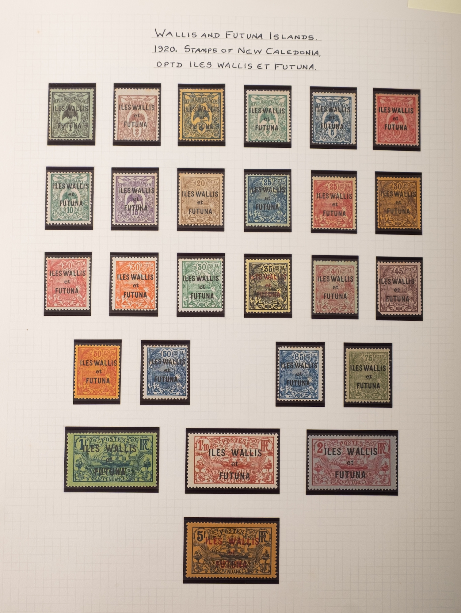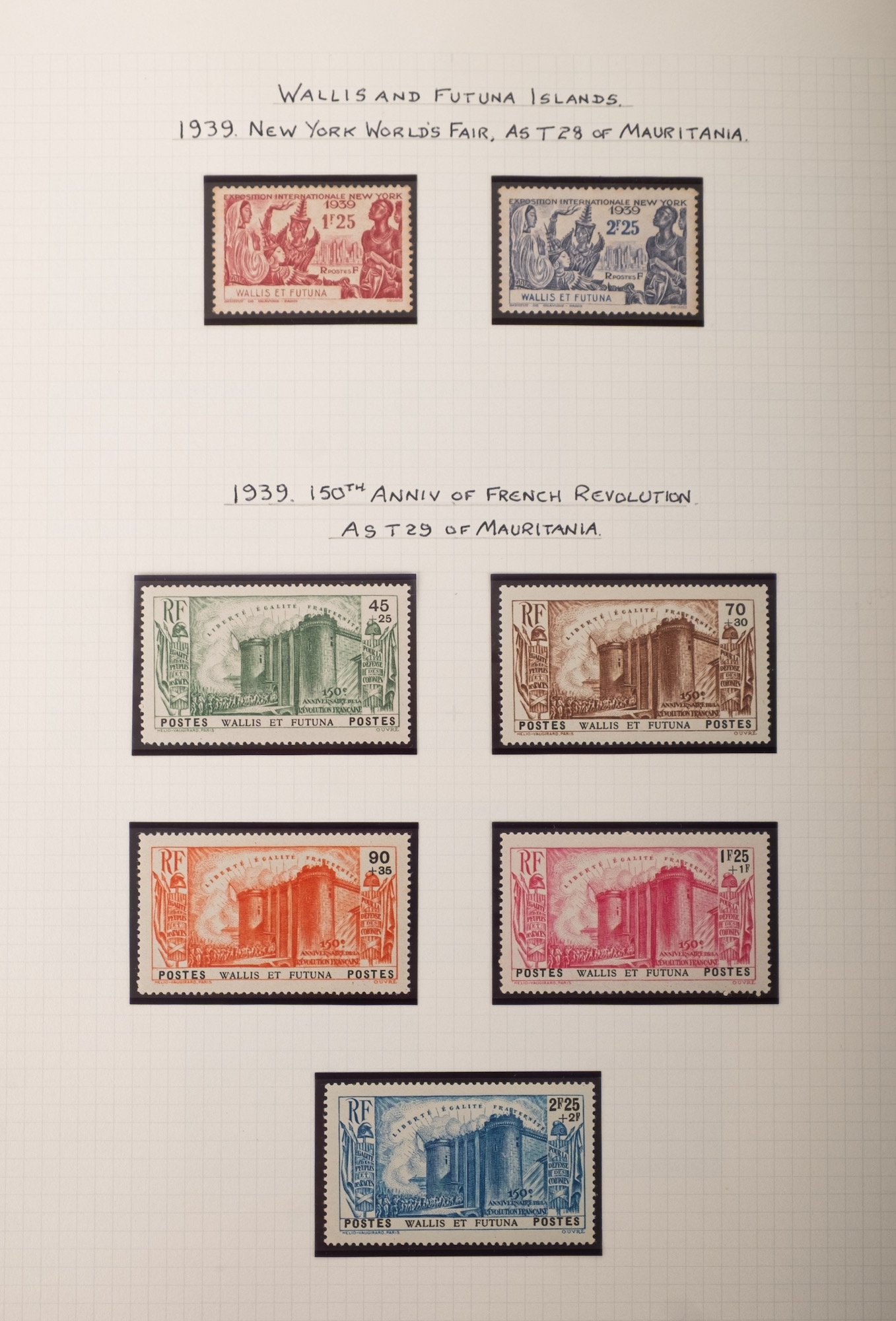 Wallis and Futuna. A nicely written up collection of stamps including 1920 overprints to 5F, 1939 Anniversary of the French Revolution, and further issues through to the late 1980s.