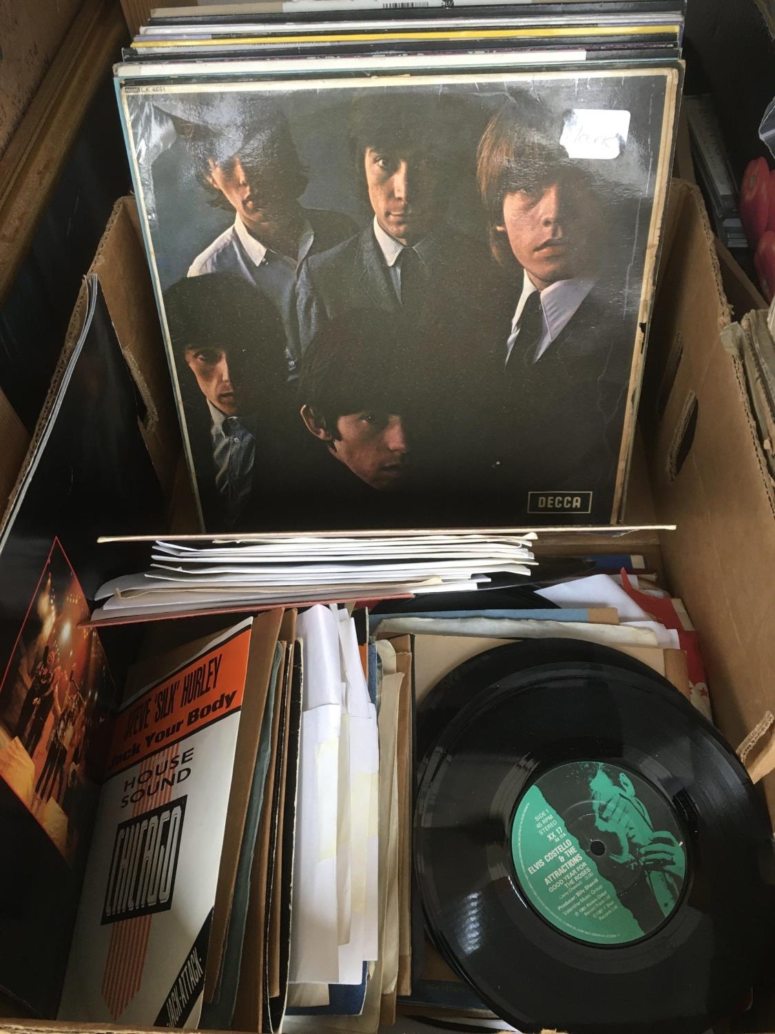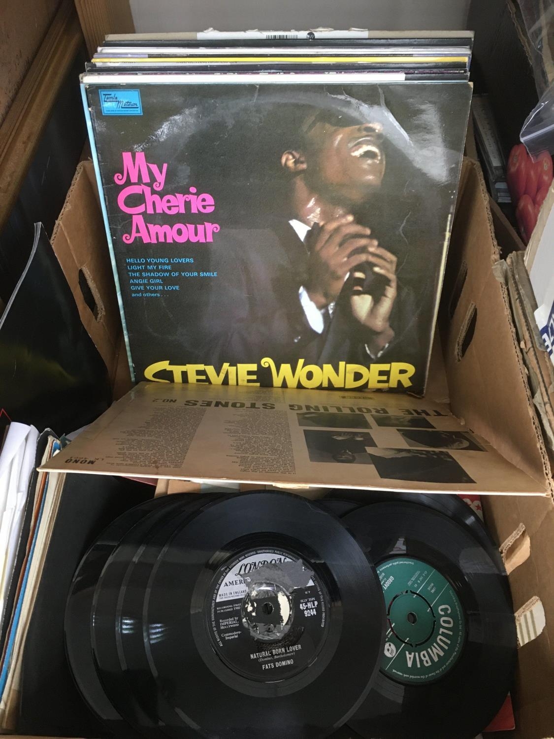 A collection of LPs, 7 inch singles and 78s by various artists including The Rolling Stones, Stevie Wonder,