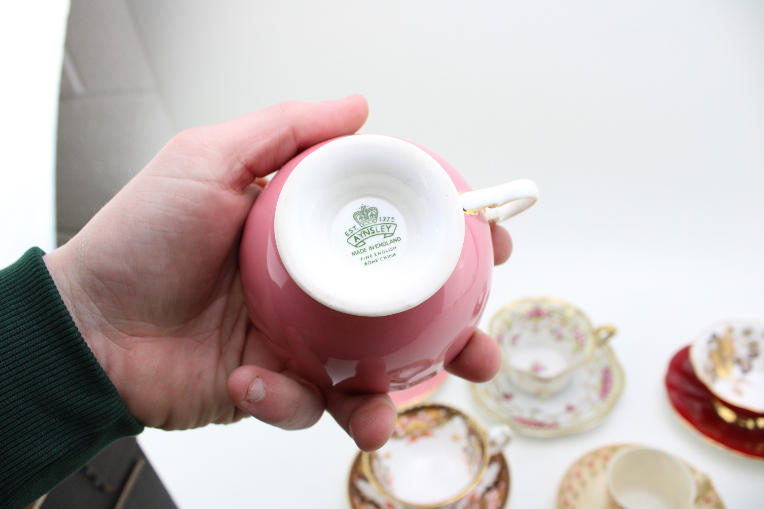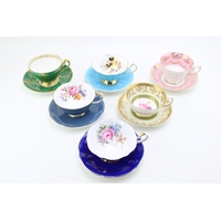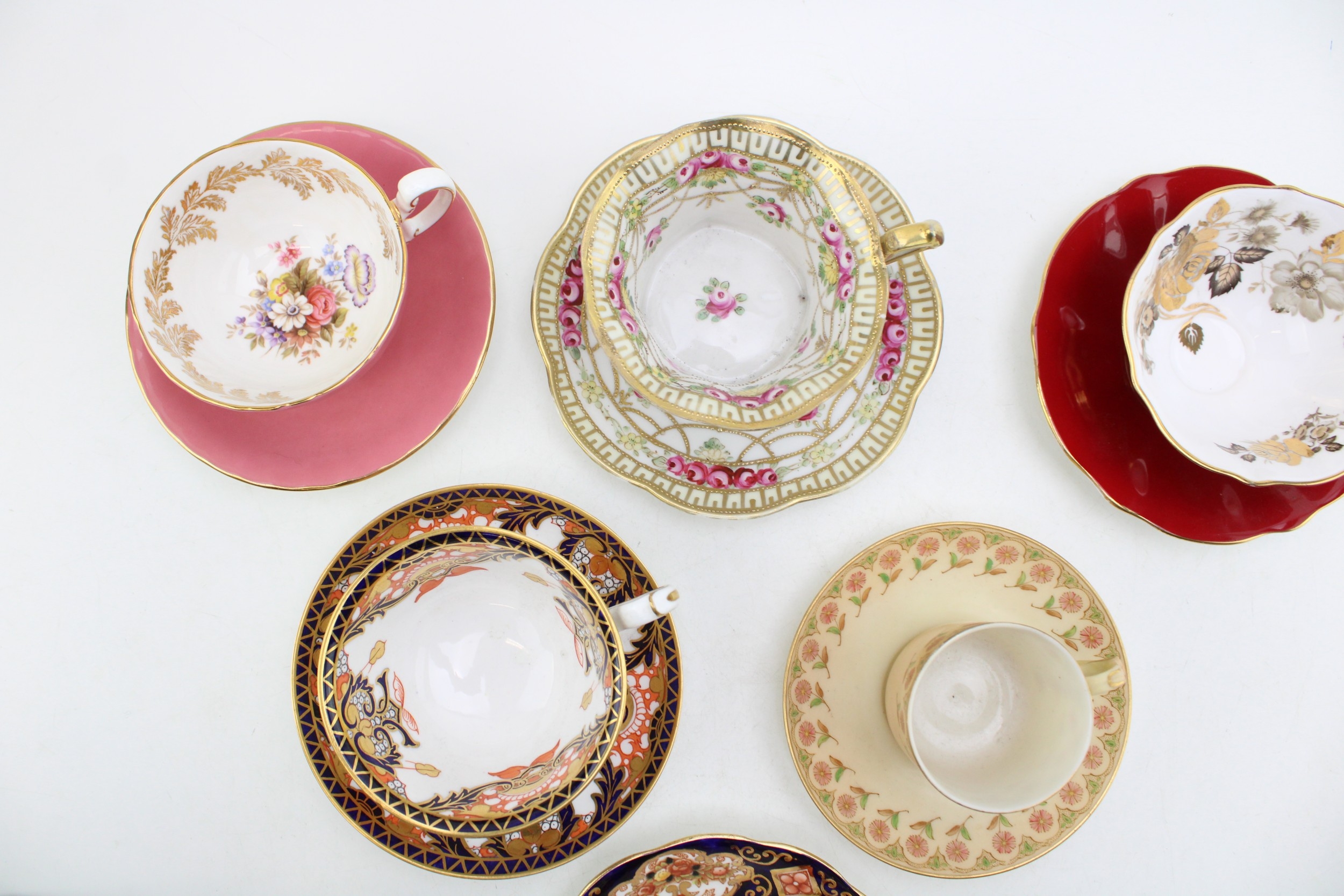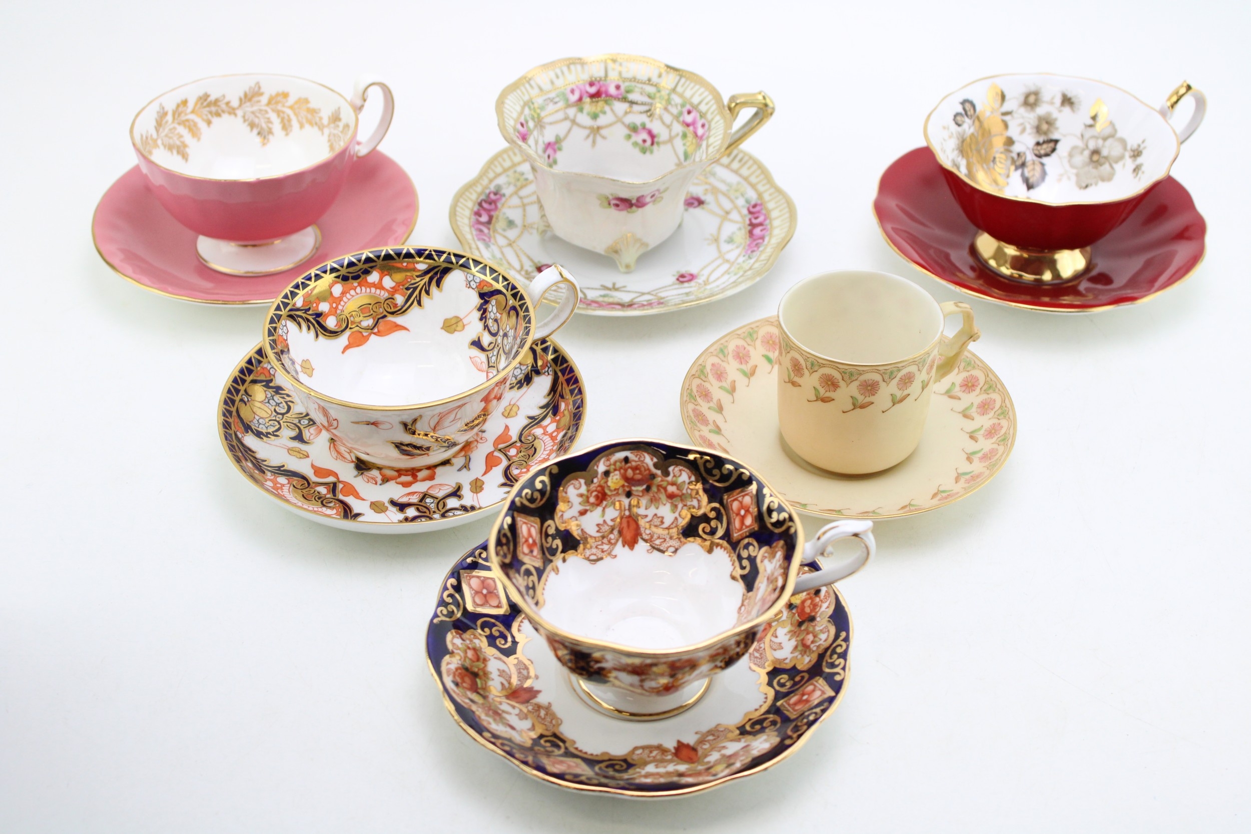 A collection of six cups and saucers, all with floral designs, to include Royal Albert, Royal Crown Derby, Aynsley and others (6).
