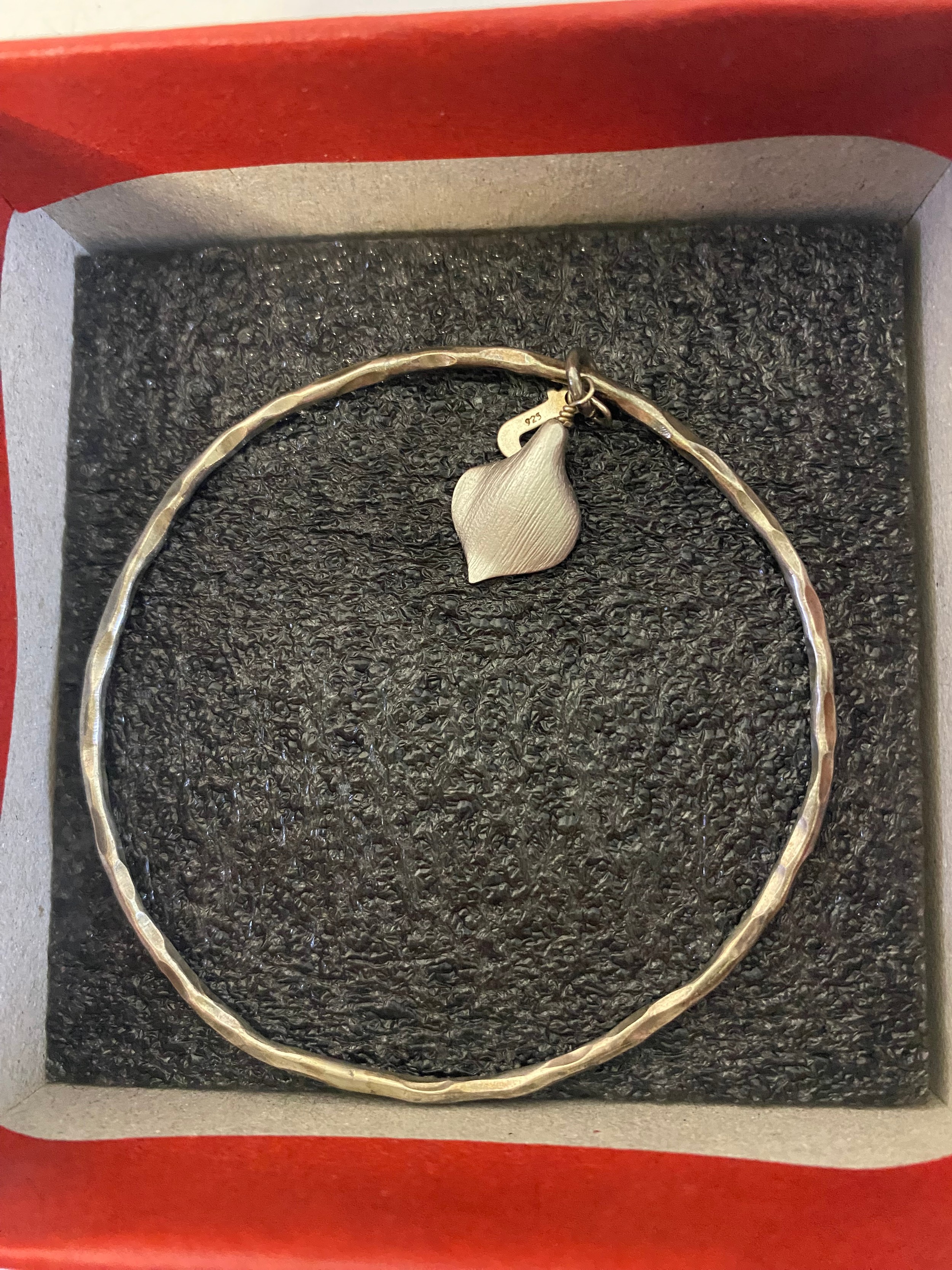 Handmade 925 silver bangle with Lily flower charm