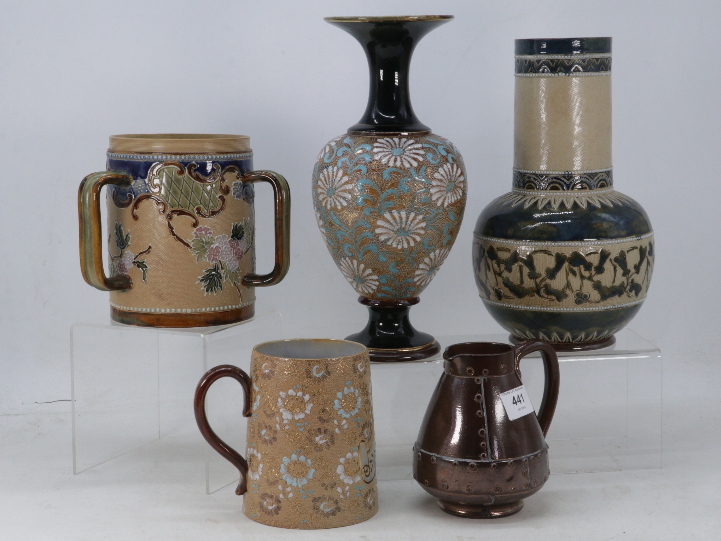 Doulton Lambeth vase, Royal Doulton vase, Tyg, tankard and a jug