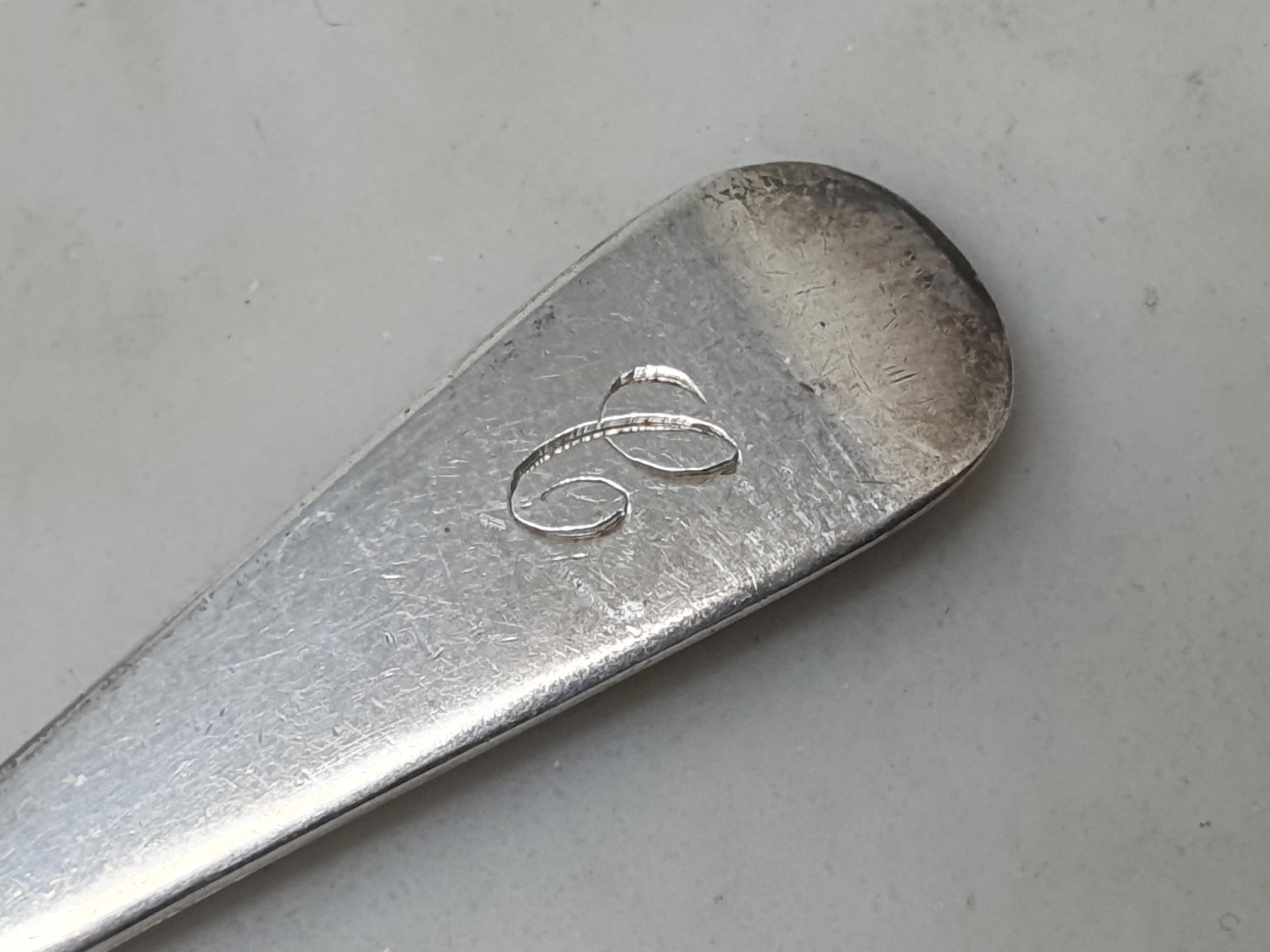 Five Edward VII silver Teaspoons Hanoverian pattern with rat-tail bowls, engraved initial C, London 1901, 96gms