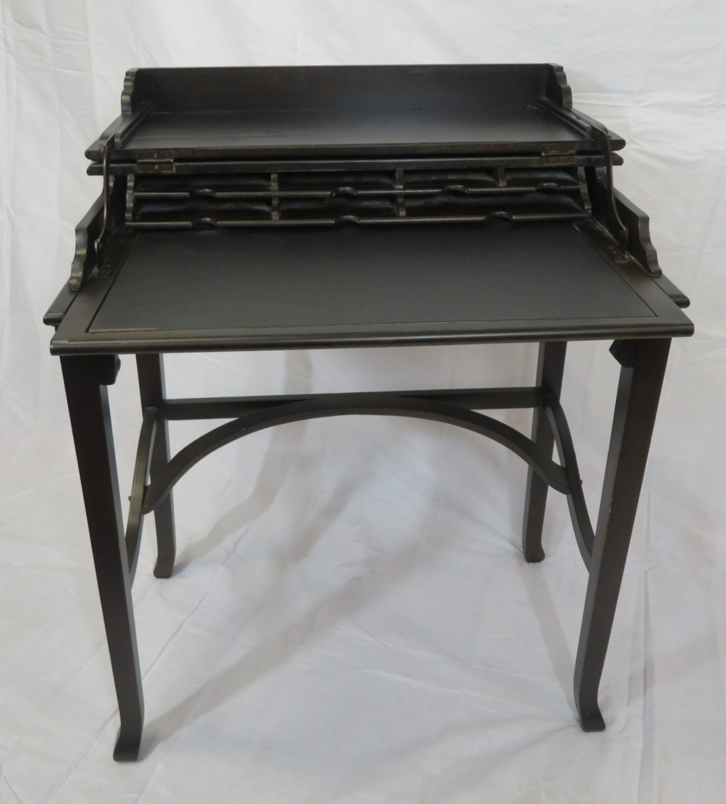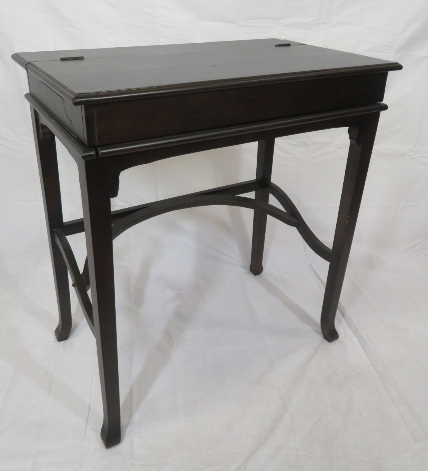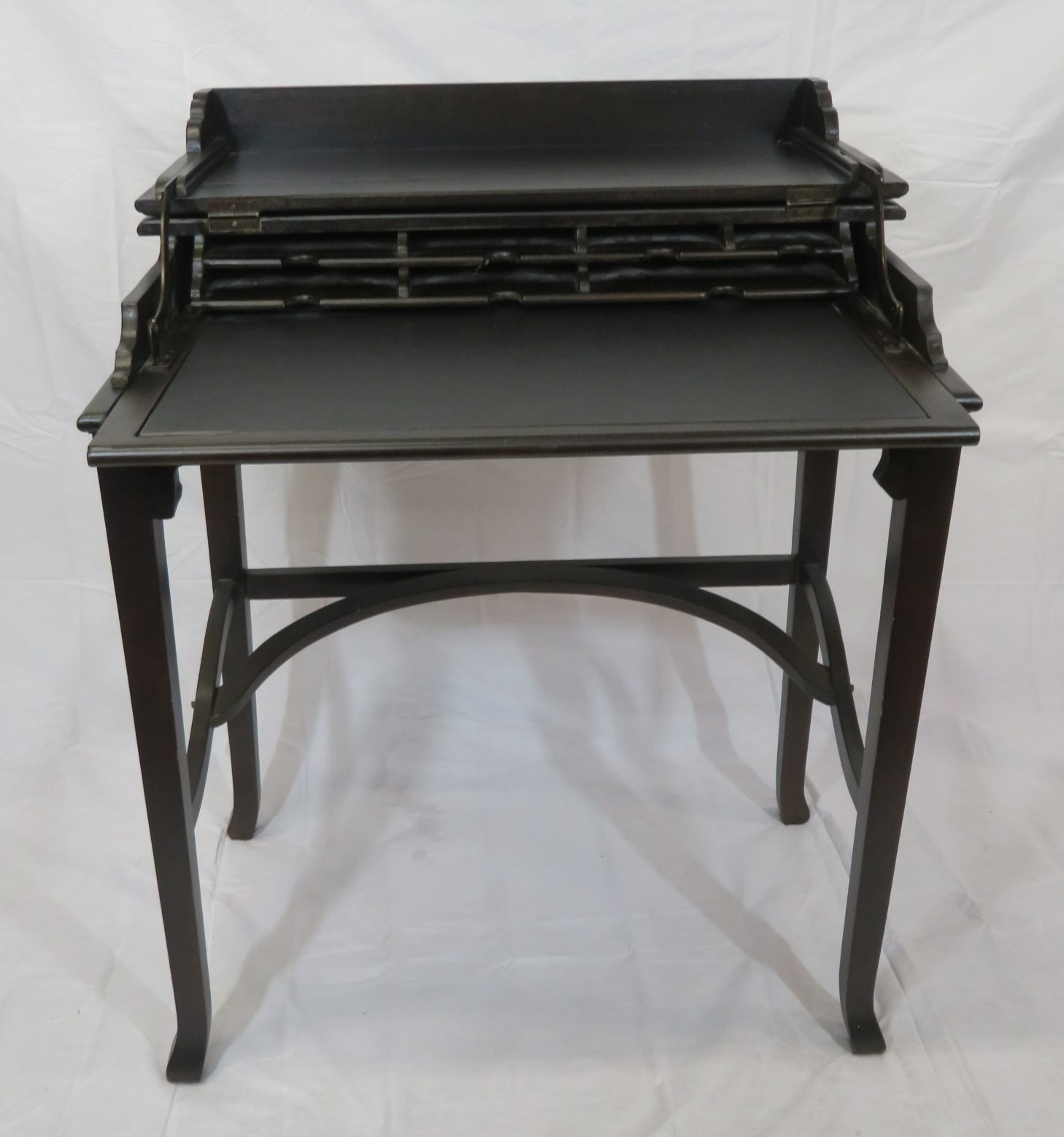 Edward mahogany bachelors desk with metamorphic fold-over top & pull-out slope, on square tapering legs with shaped stretchers