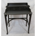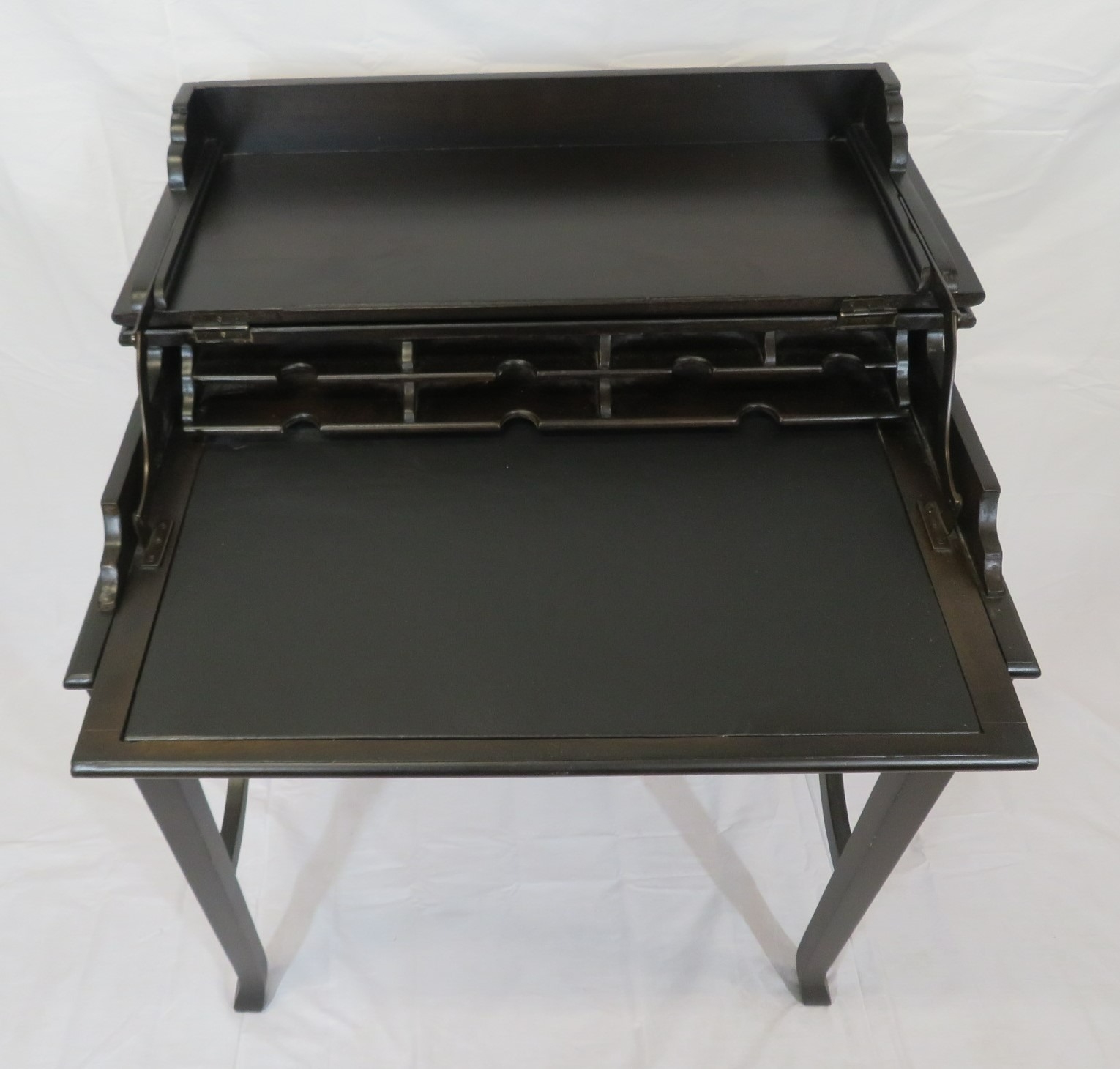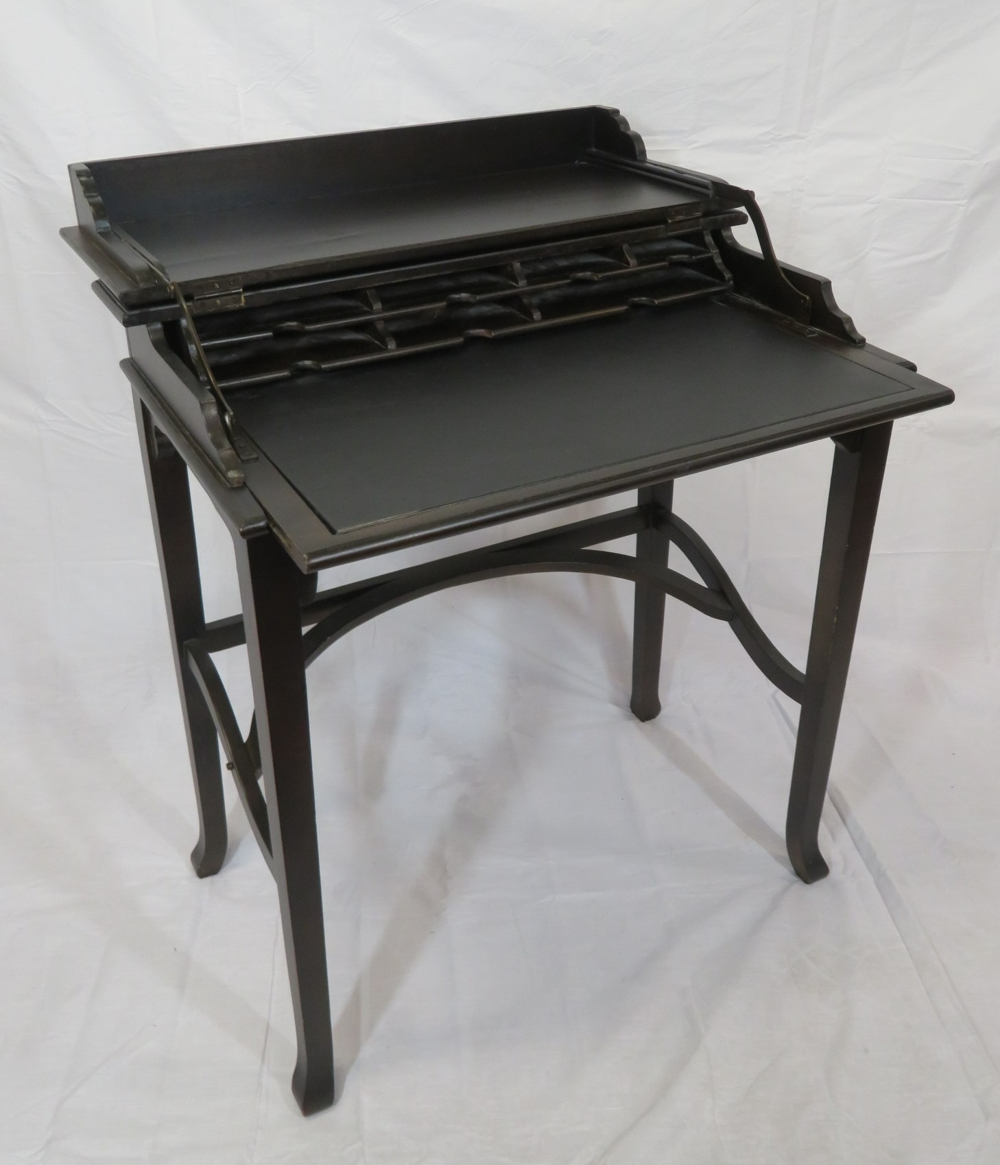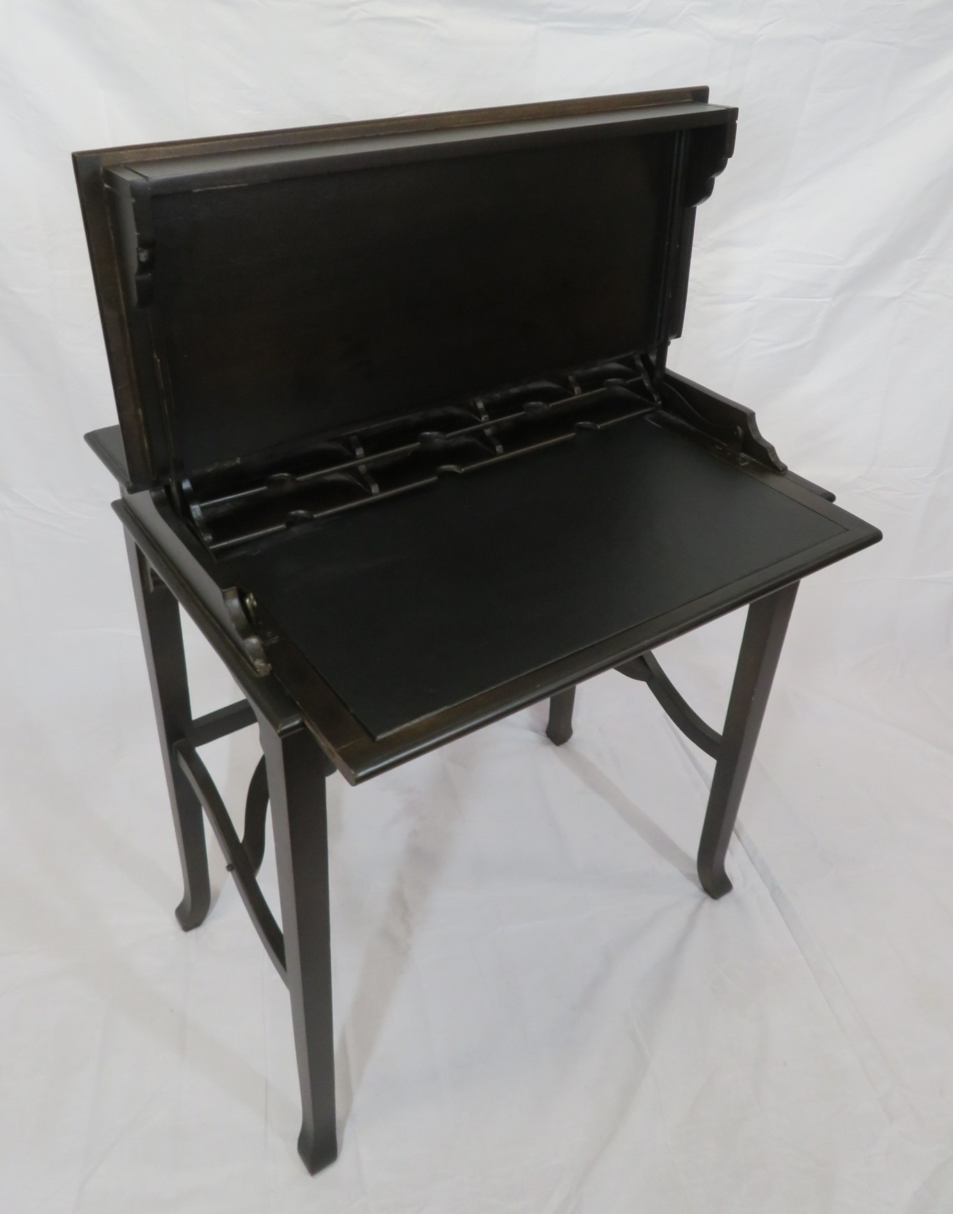 Edward mahogany bachelors desk with metamorphic fold-over top & pull-out slope, on square tapering legs with shaped stretchers