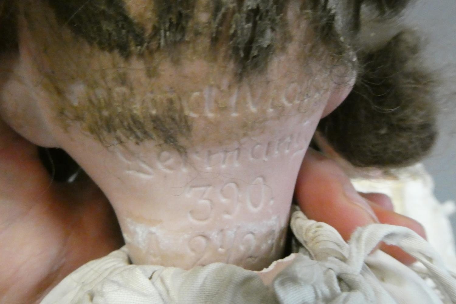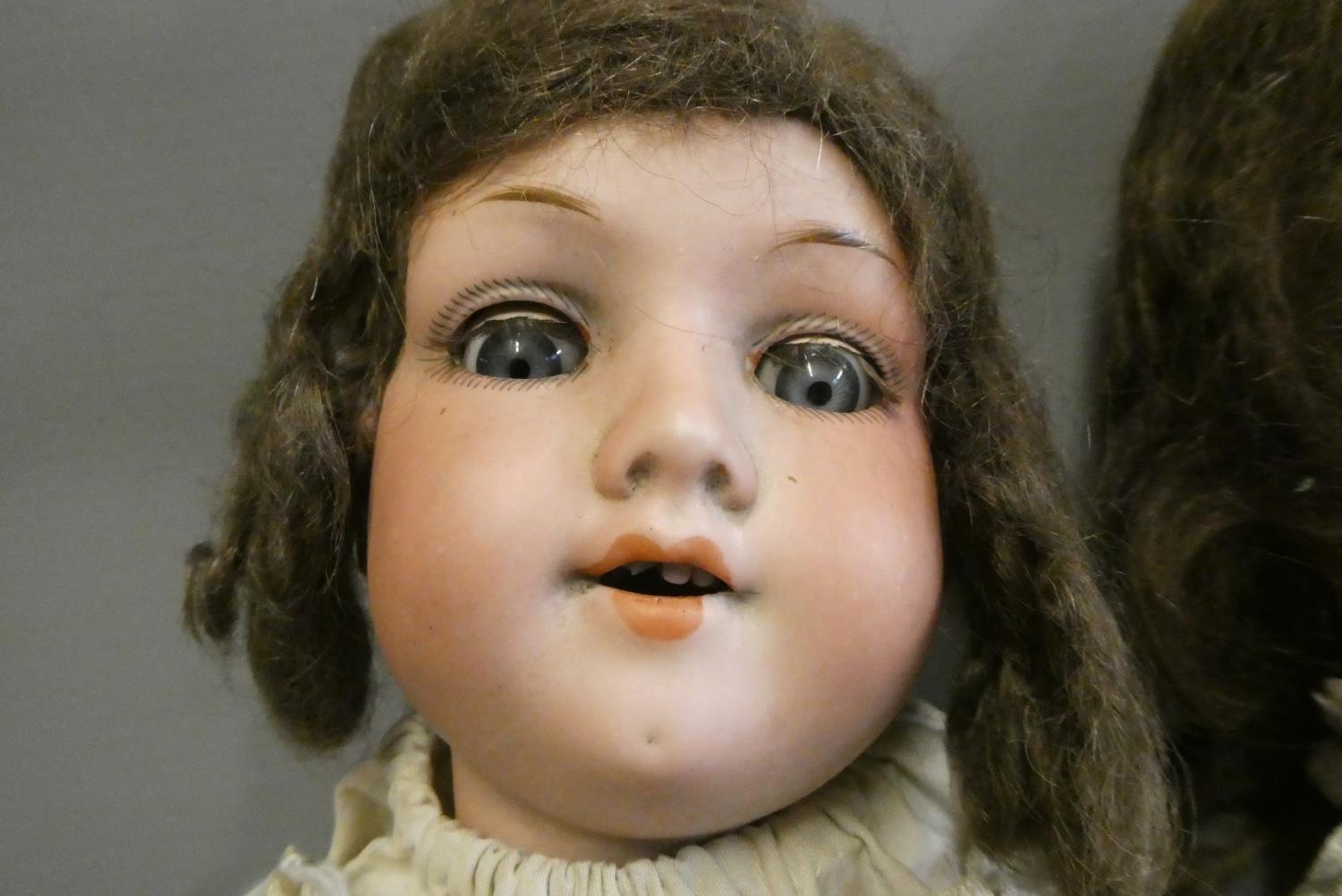 SH doll with loose and damaged hand, head ok. AM doll with chipped tooth, damage to fingers and toes, but head ok.