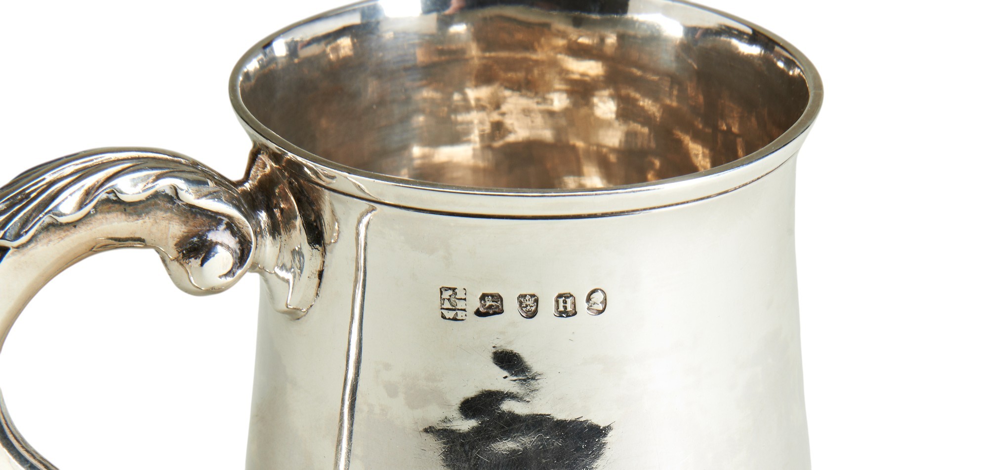 A well made mug with a cast s-scroll handle by Peter, Ann & William Bateman, unengraved
