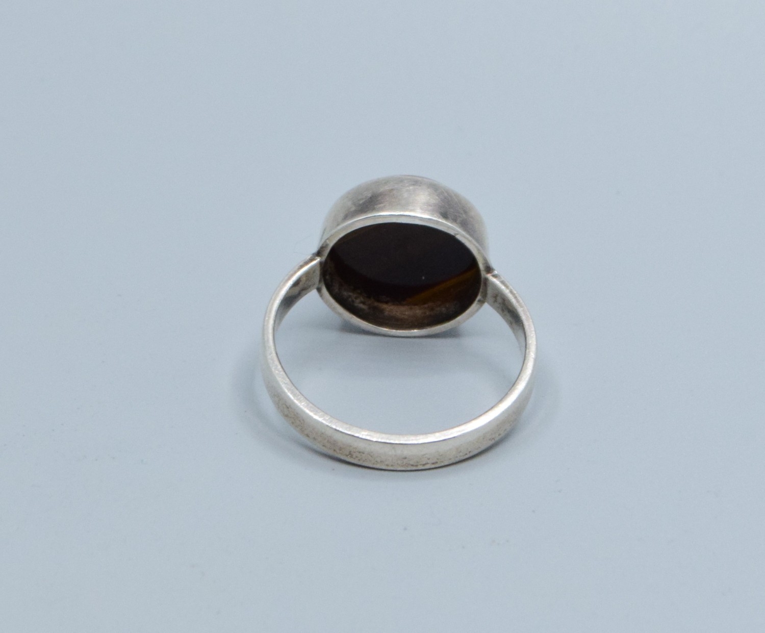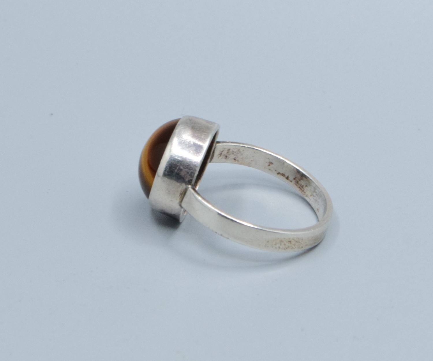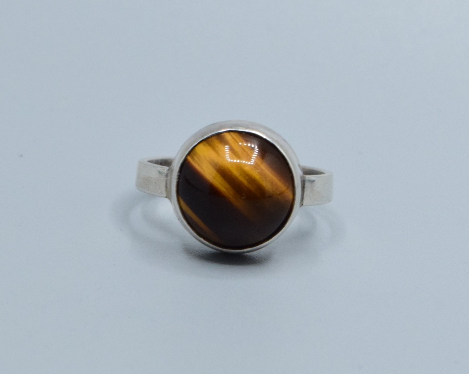 925 silver Tigers Eye solitaire ring held in an enclosed setting size M