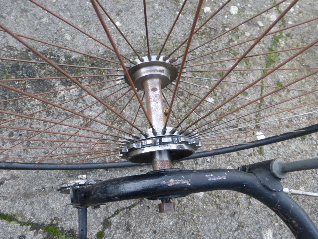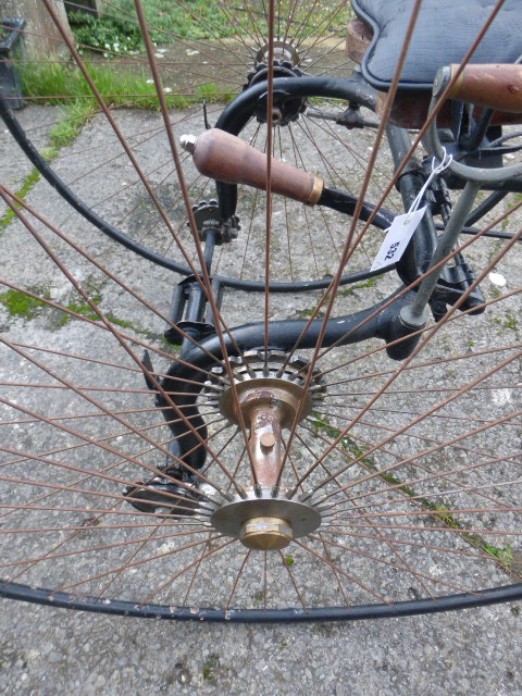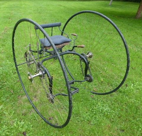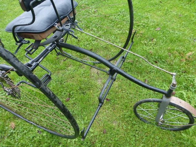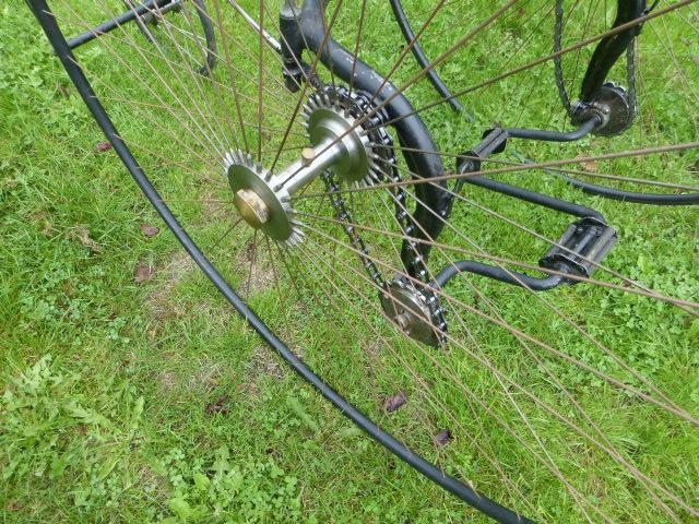 A c1882 Coventry Machinists Co., 'Cheylesmore Club' Tricycle. An open-fronted, rear-steering tricycle numbered 3770. Now in sound, rideable condition, the double driver 48-inch wheels are newly-built, using similar adjustable spoking and bearing hubs, the latter being removeable to allow access through a narrow space. The 15-inch rear wheel has been quality-manufactured. Other features include a spoon brake on each wheel, stirrup handle steering, new long link chain and two spare chain links, an original rear rack and alternative leather saddle. (3)