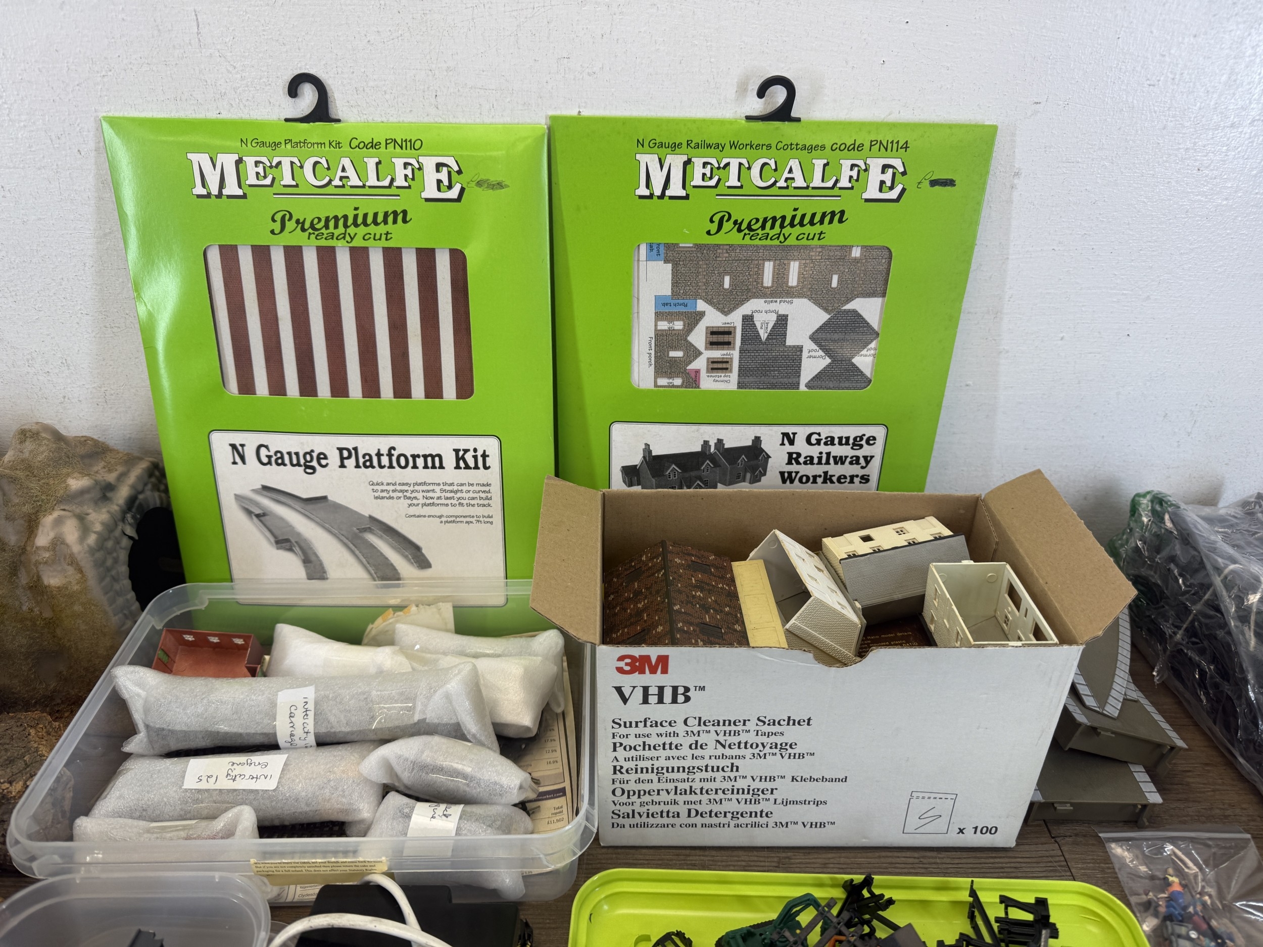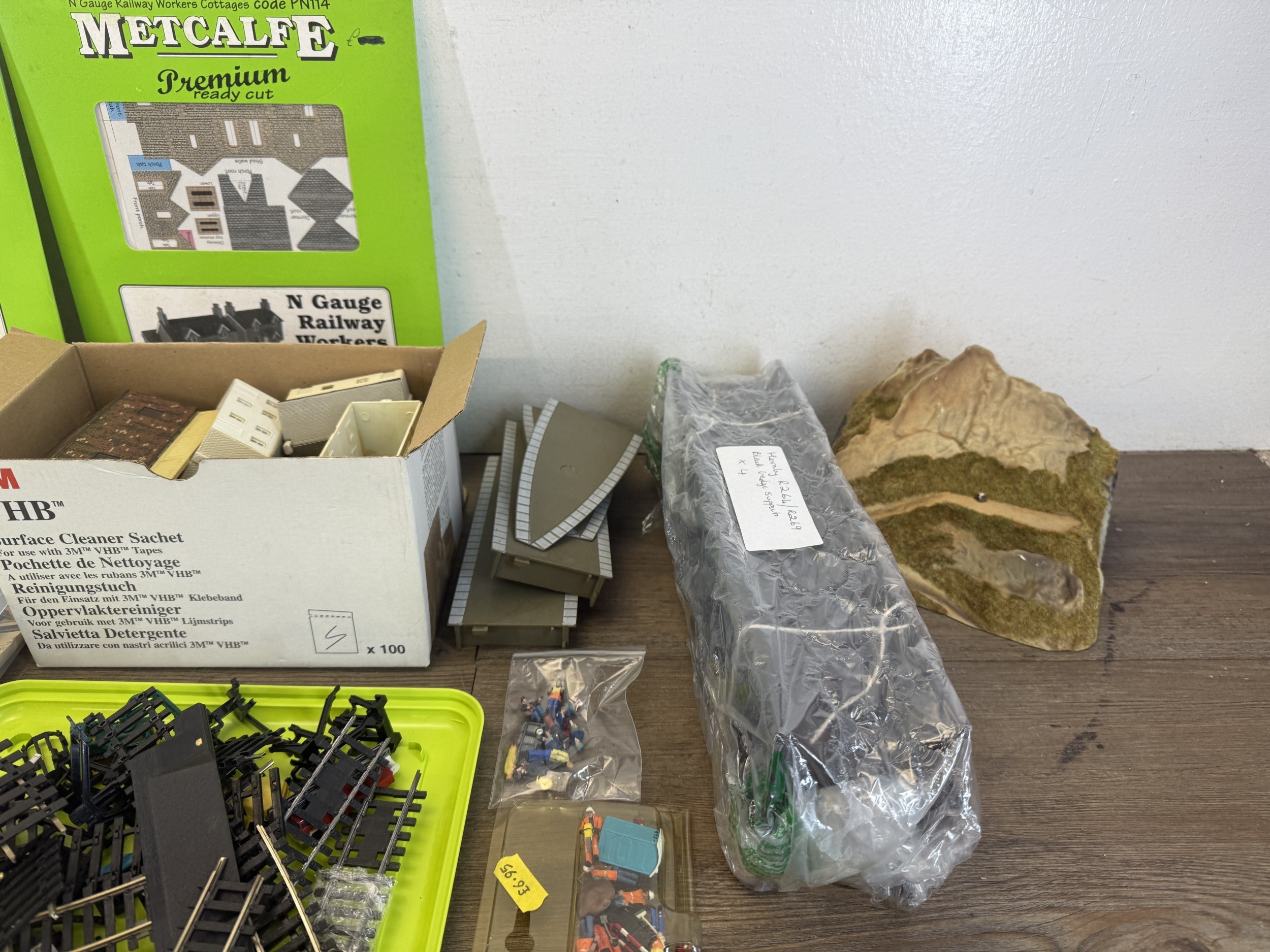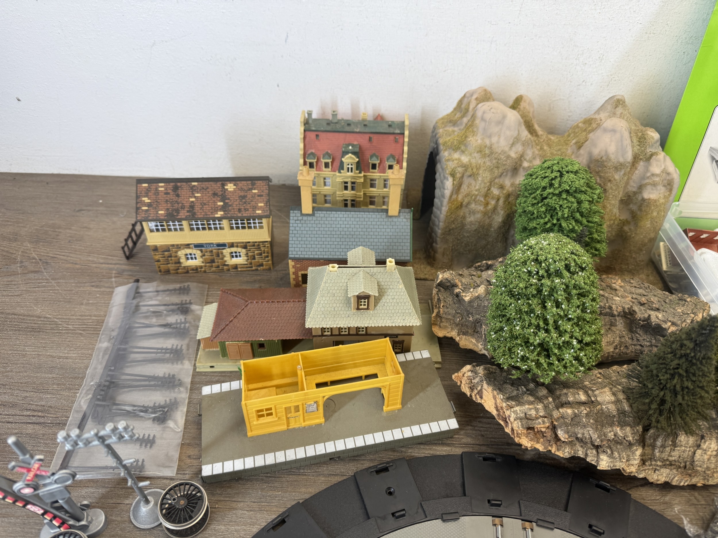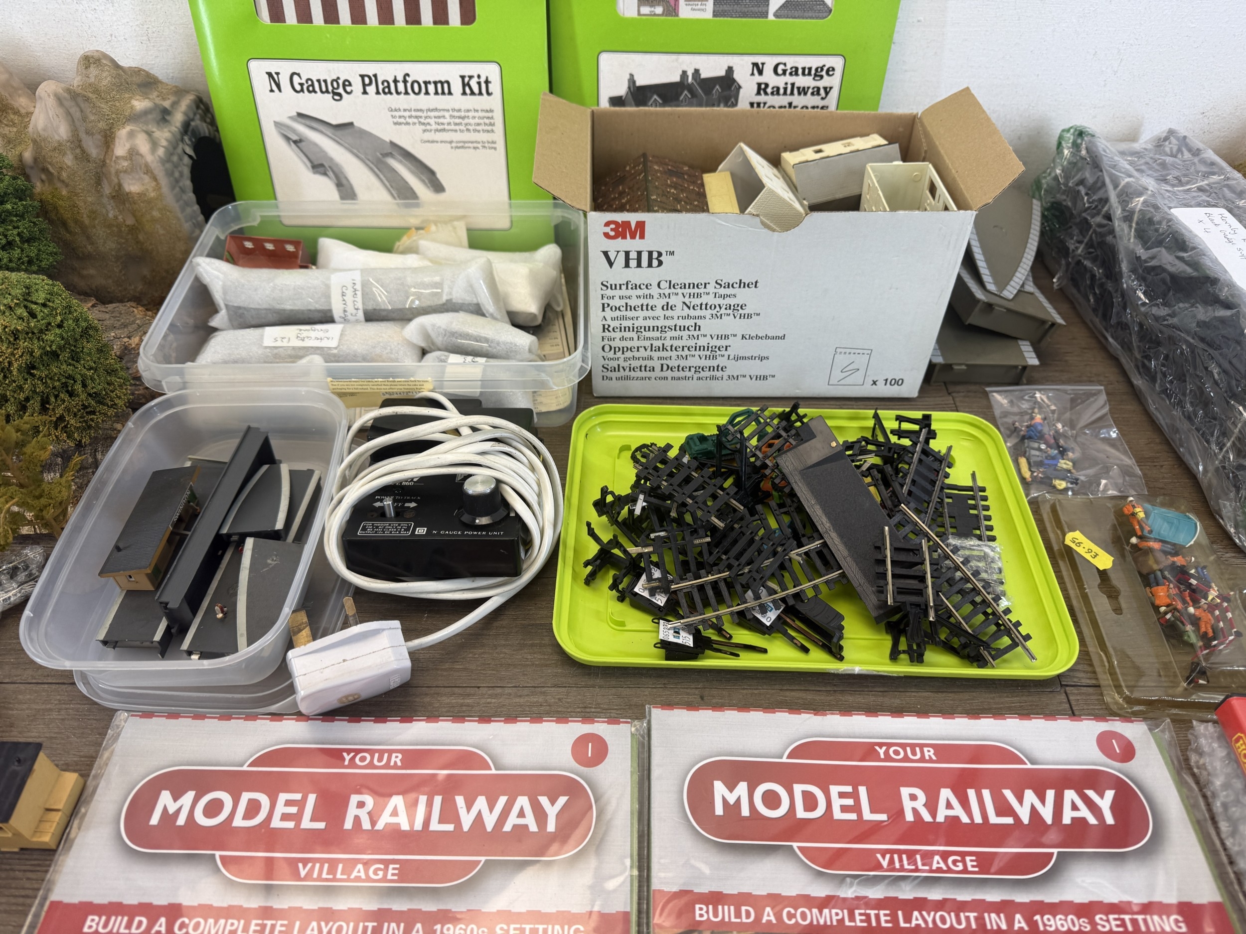 A collection of model railway accessories to include Inter-City 125 N gauge engine and coach, Flying Scotsman N gauge locomotive and tender, buildings, tunnels, track etc.
