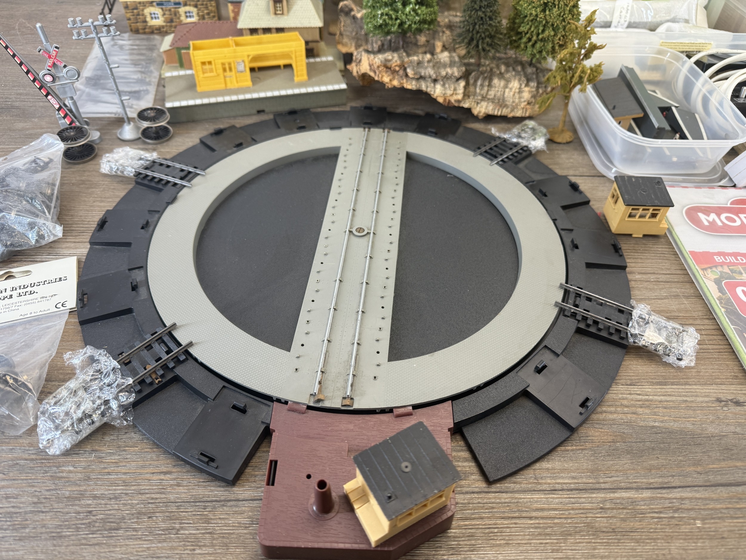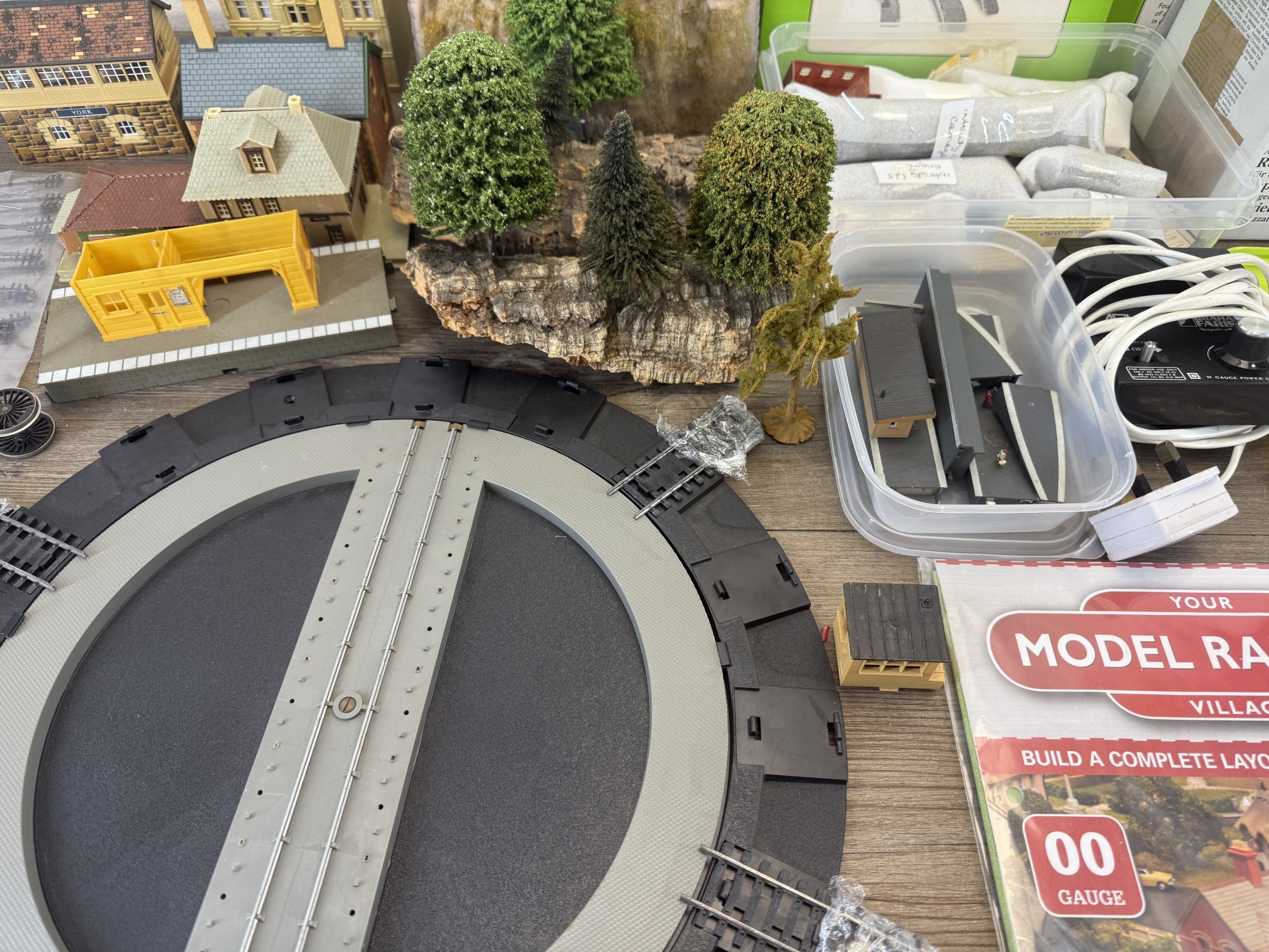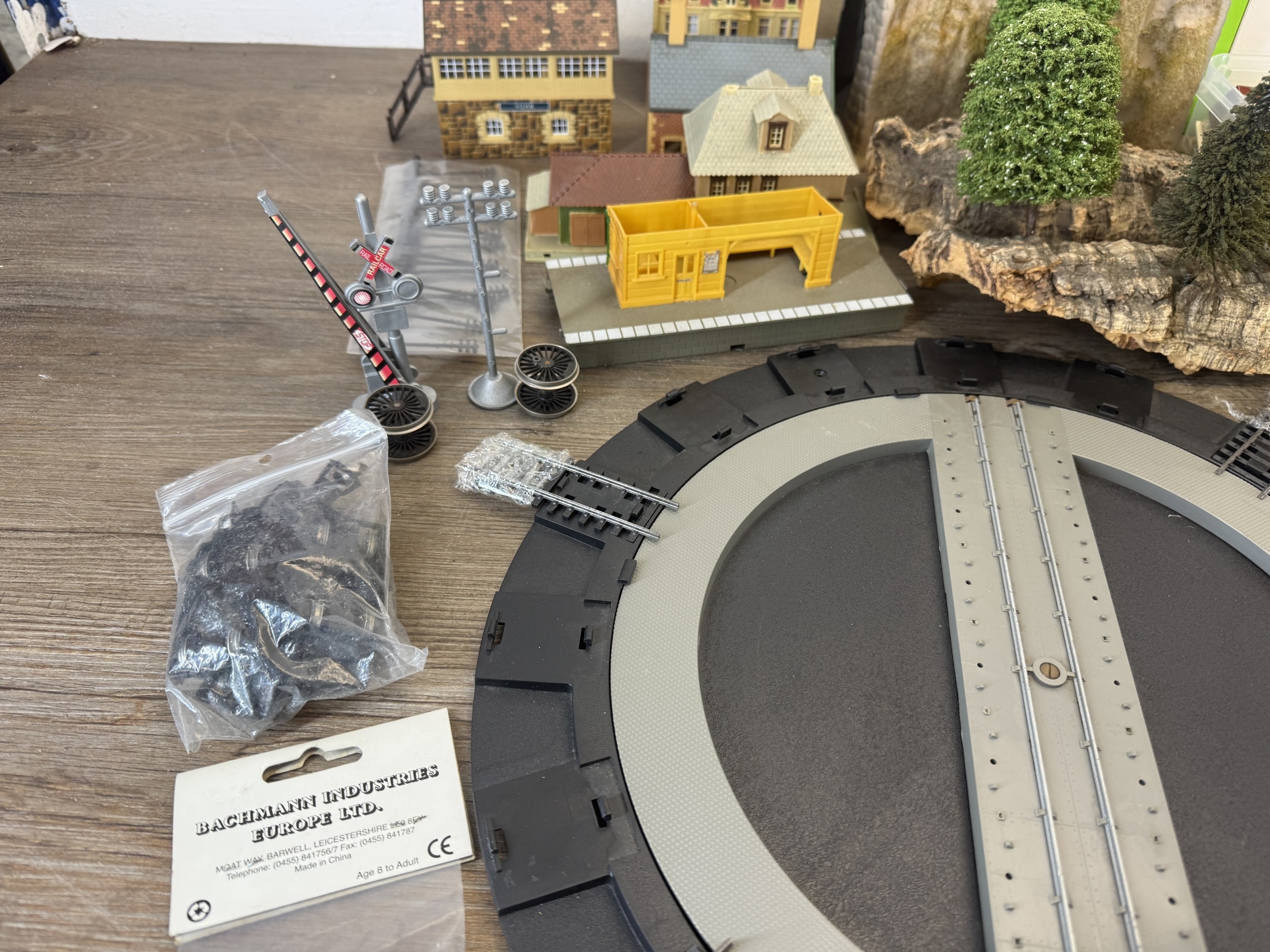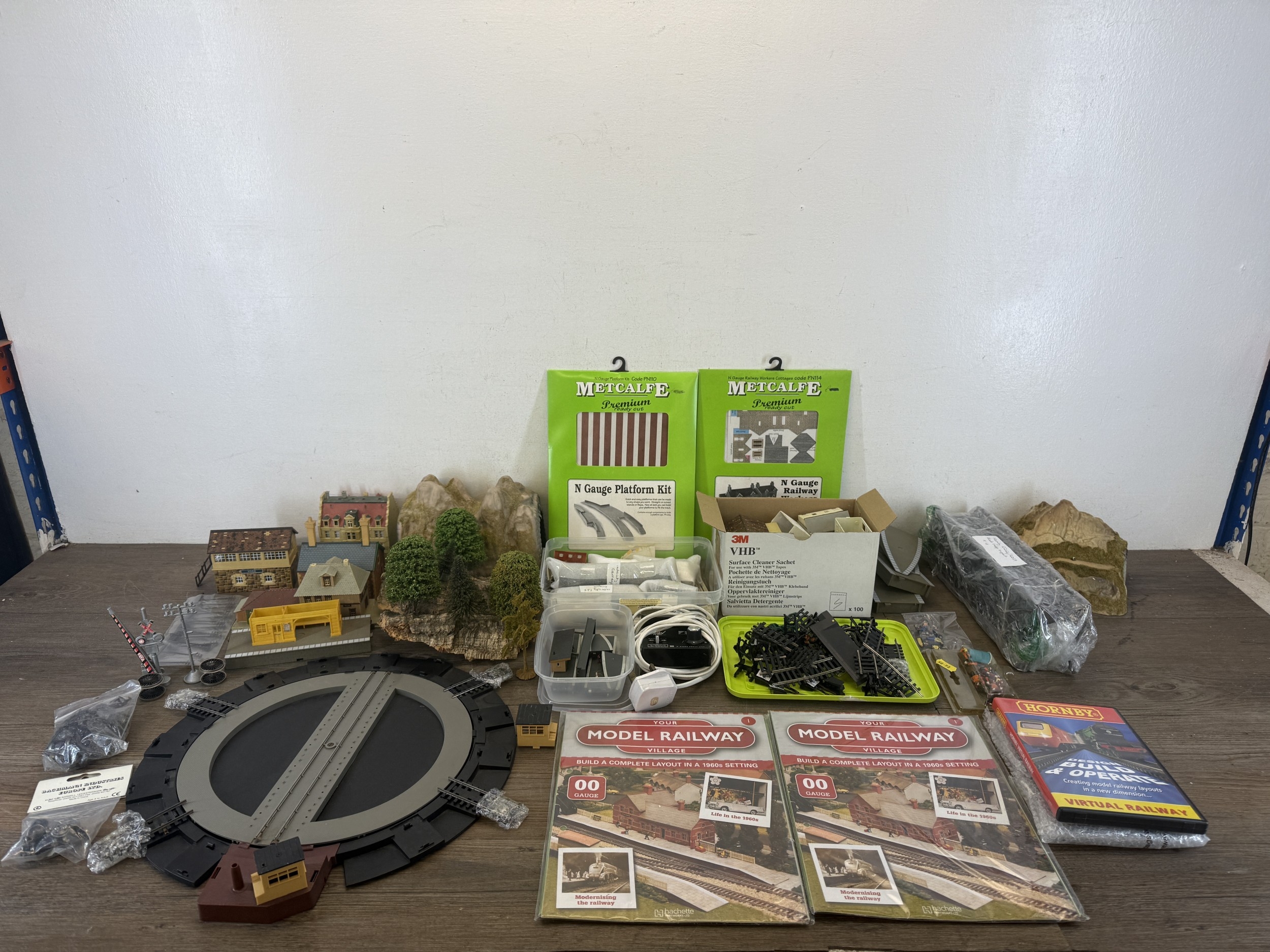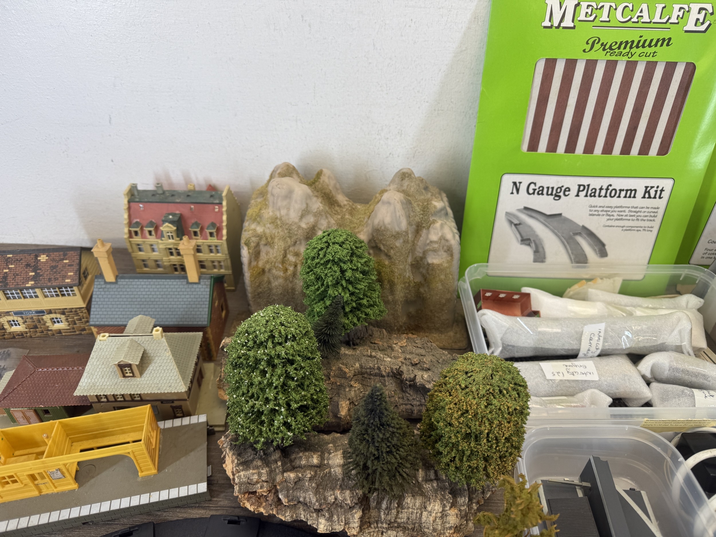 A collection of model railway accessories to include Inter-City 125 N gauge engine and coach, Flying Scotsman N gauge locomotive and tender, buildings, tunnels, track etc.