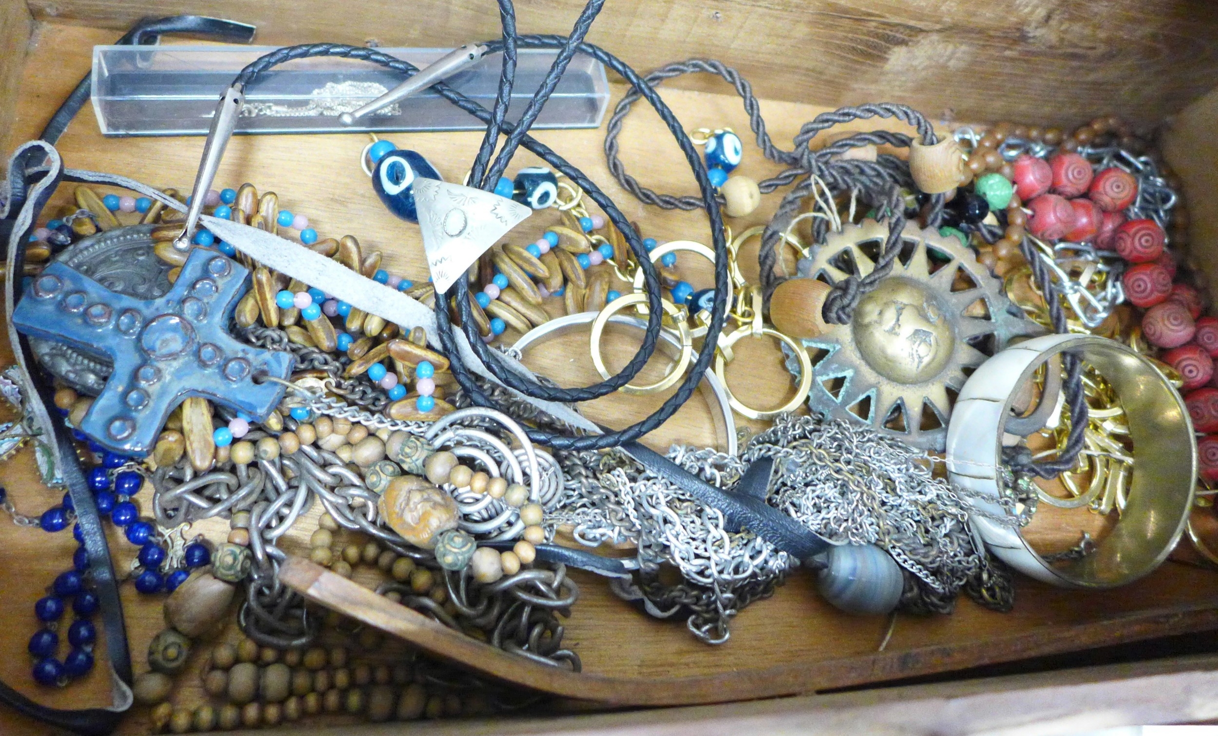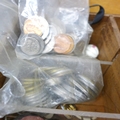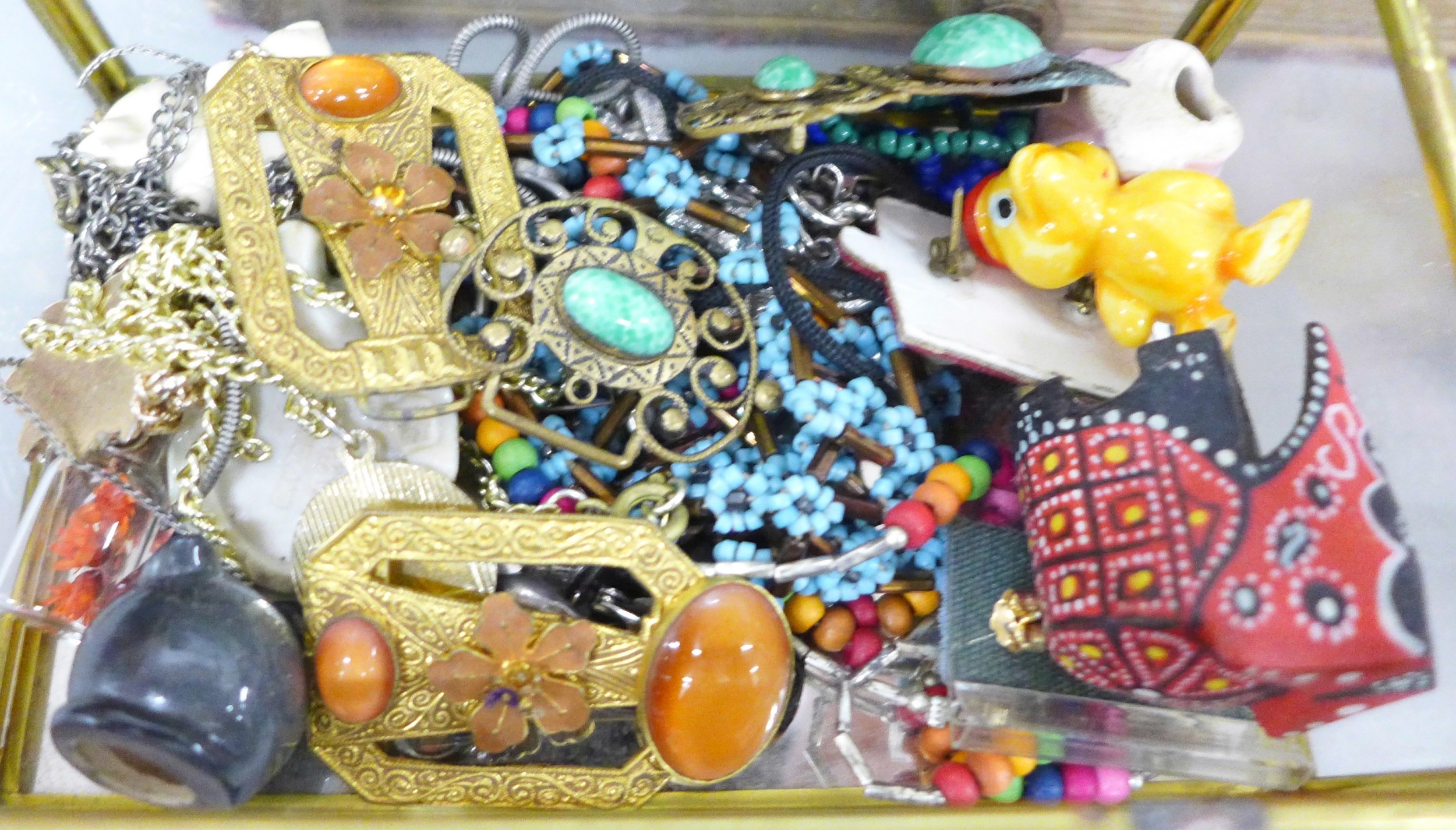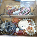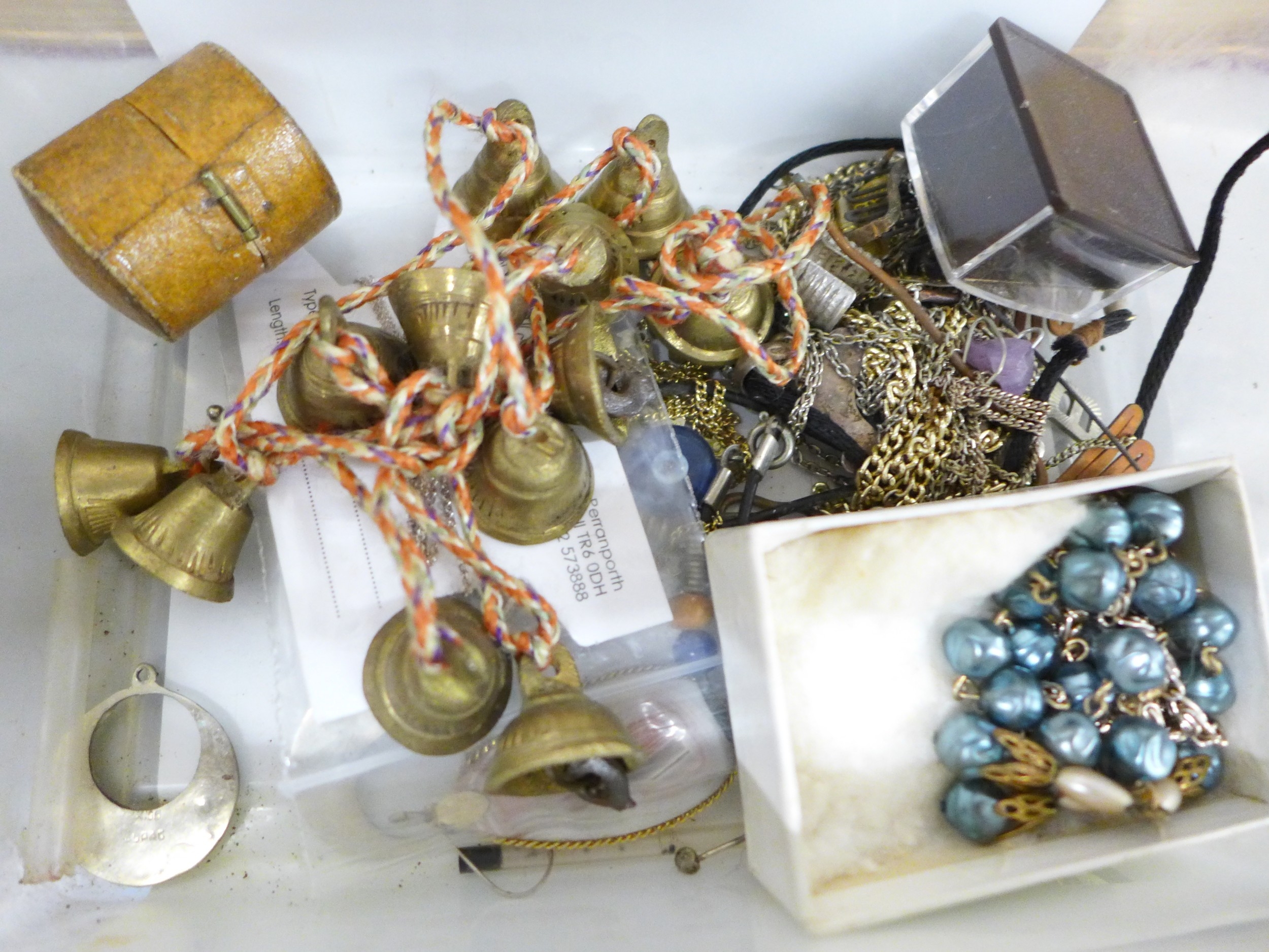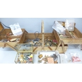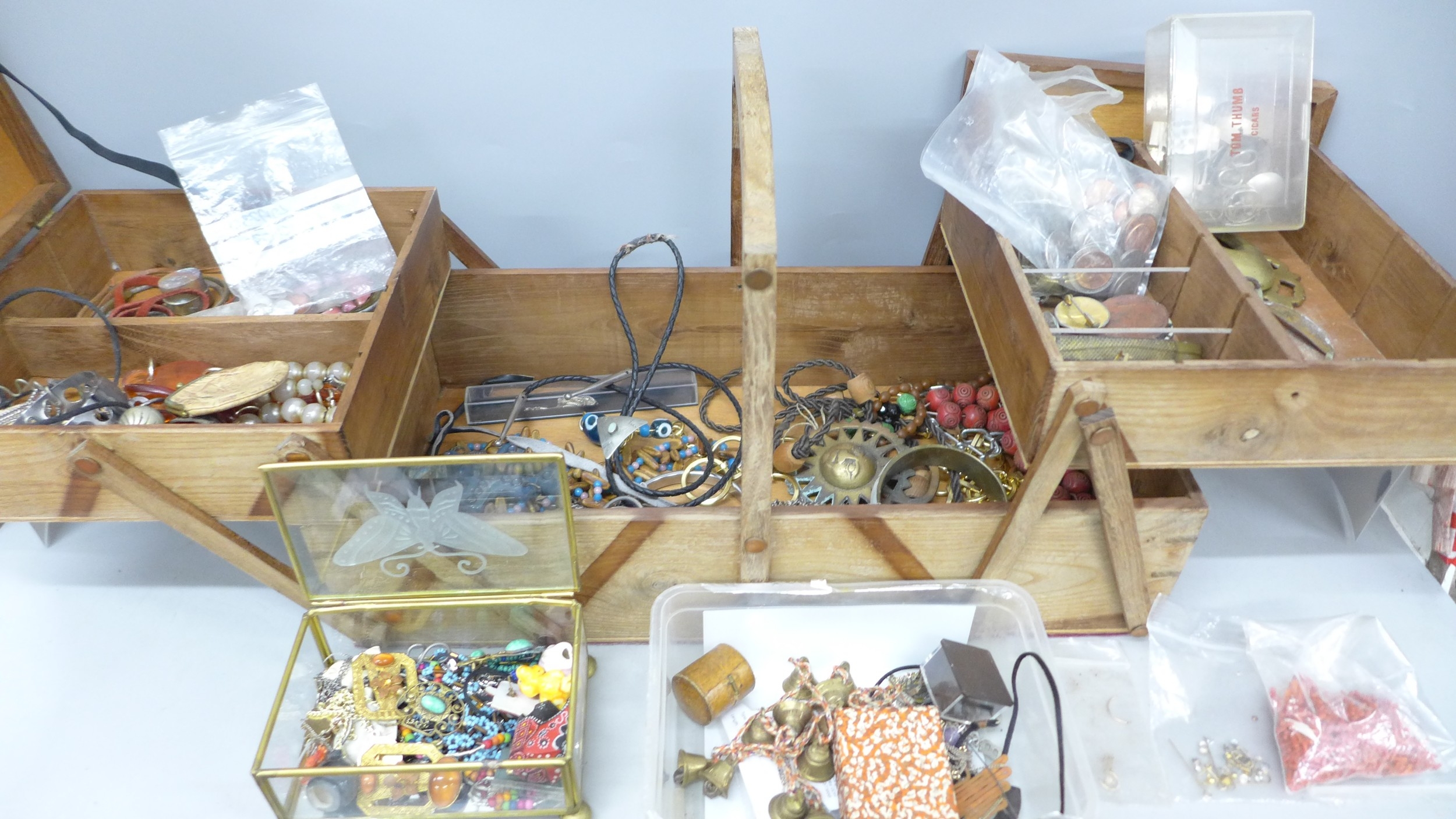 Two boxes of vintage and later costume jewellery and coins