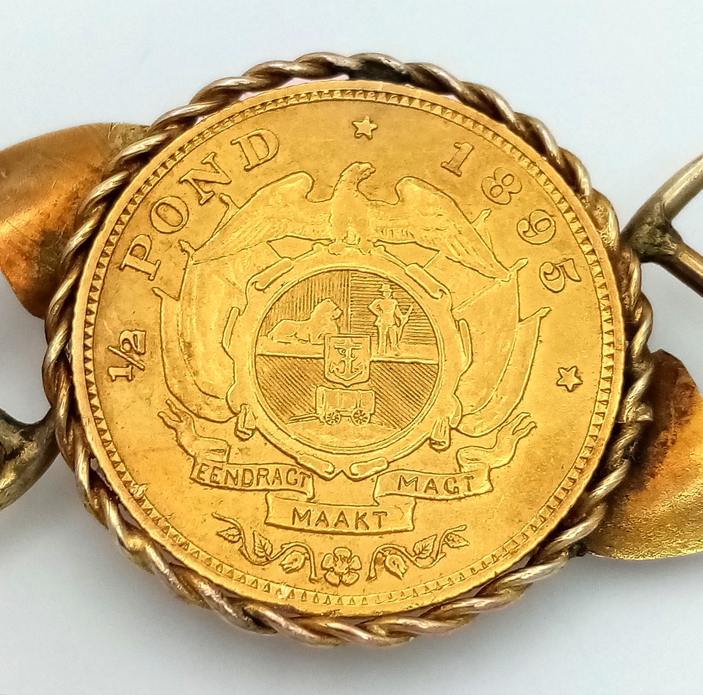 An 1895 South African 1/2 Pond Gold Coin Brooch. Decorated w...
