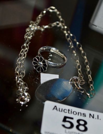 Silver Necklace And Pendant + Ring