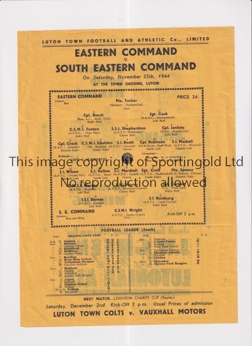 SERVICES FOOTBALL AT LUTON TOWN F.C. 1944 Single sheet programme for Eastern Command v South Eastern Command 25/11/1944. Generally good