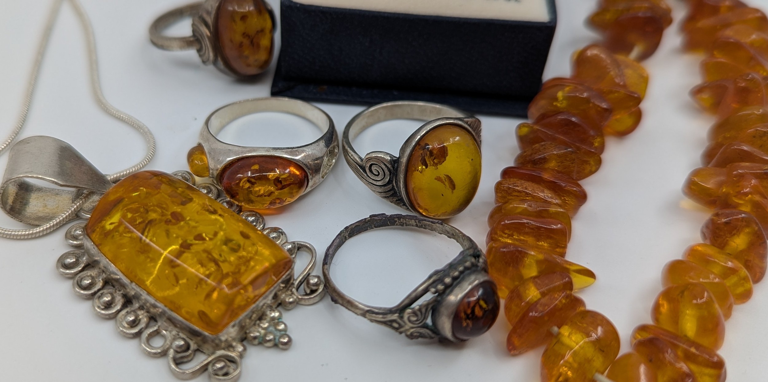 A selection of amber jewellery,