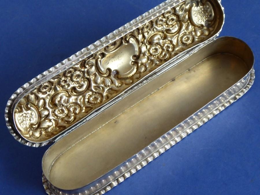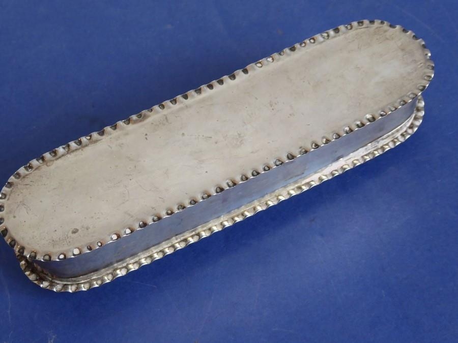Condition Report: Overall the box appears in good order, it is noted that the hallmarks are very rubbed at one end, some small scratches to the underside commensurate with age. The hinge is in good order with no problems, there is a gilded interior and the lip of the lid inside is slightly raised to one end - although the lid does shut firmly and tightly.