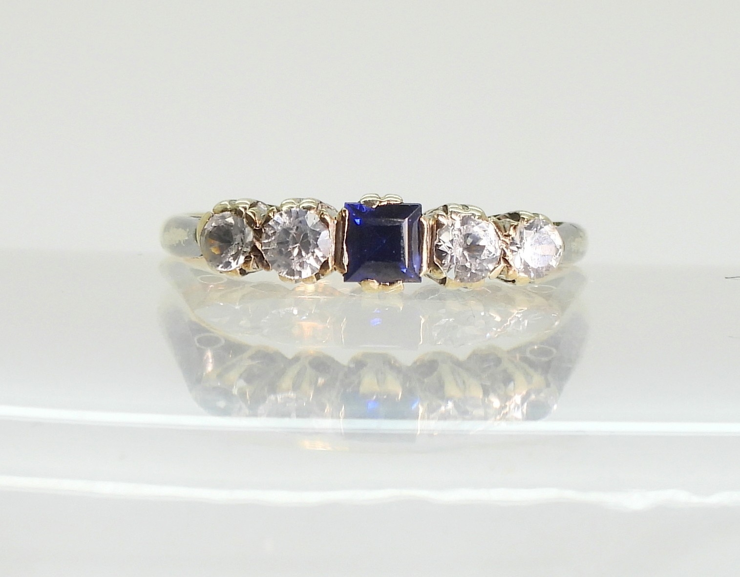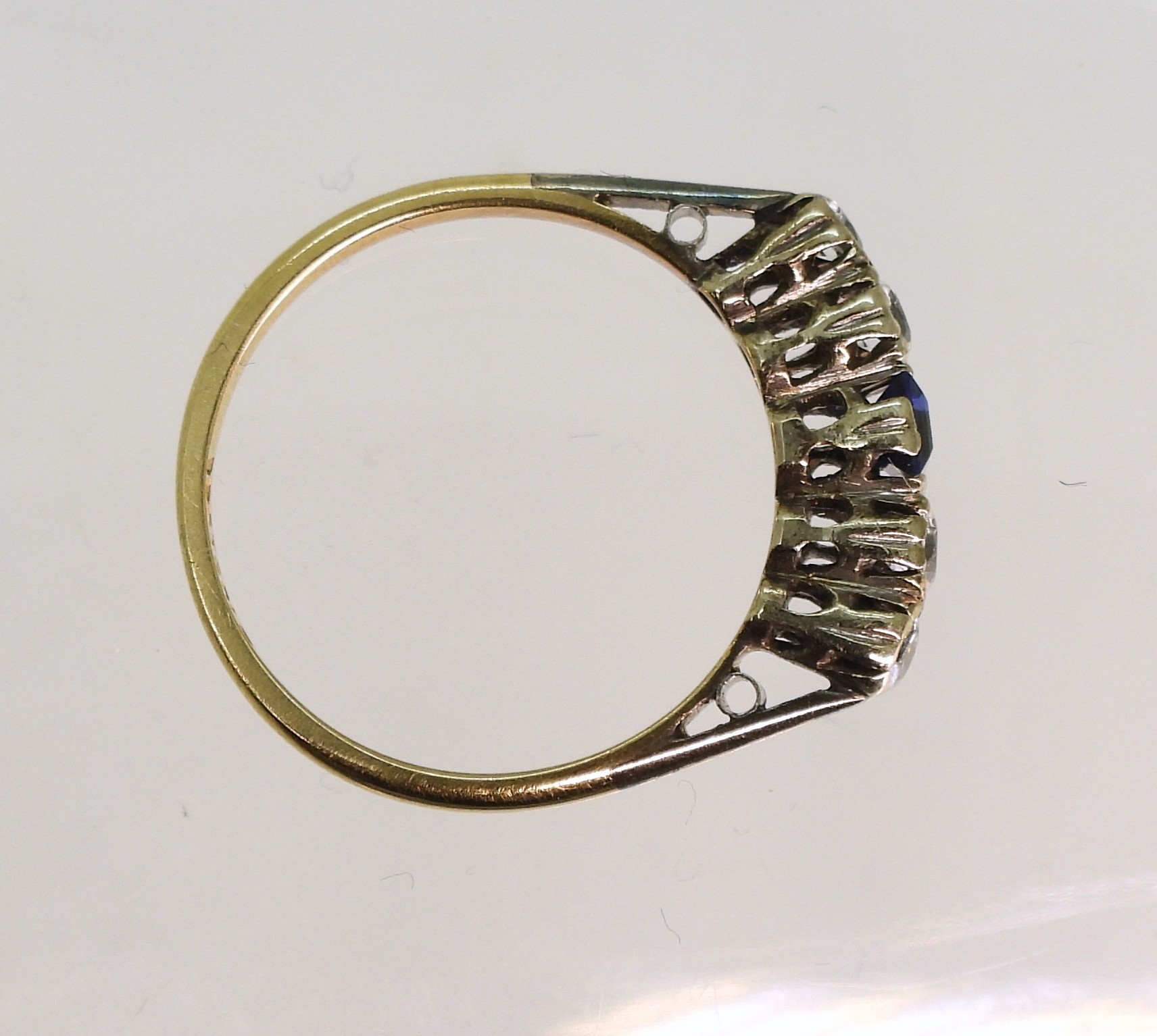 An 18ct gold blue and clear gem set ring,size M1/2, weight 2.3gms