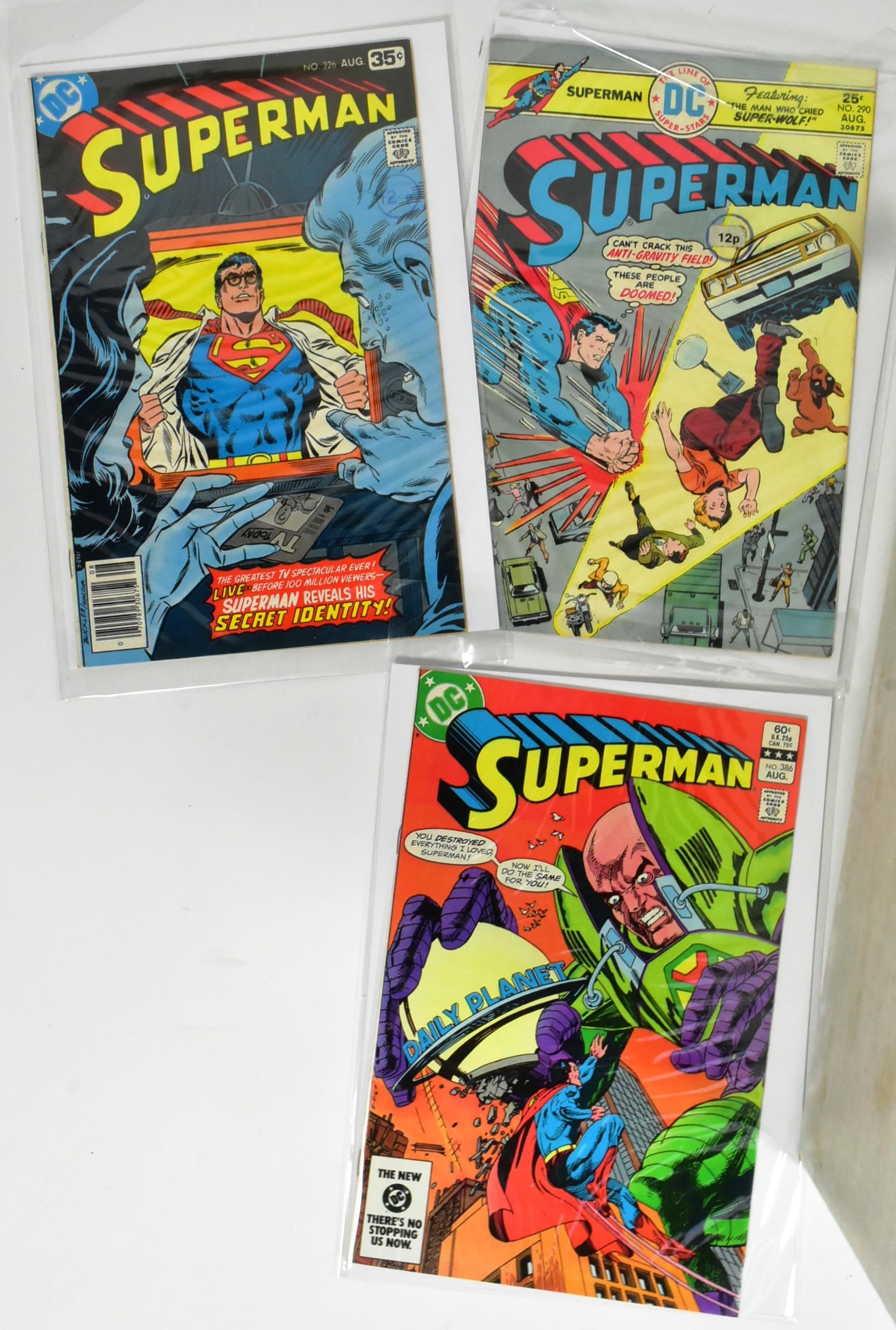 Comic Books - a collection of vintage DC Comics Superman issues from the 1970's onwards. Conditions are fine to near mint and all comics have been bagged and boarded.