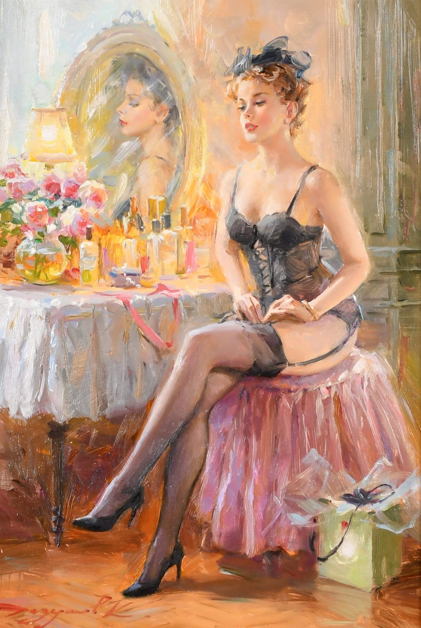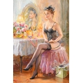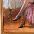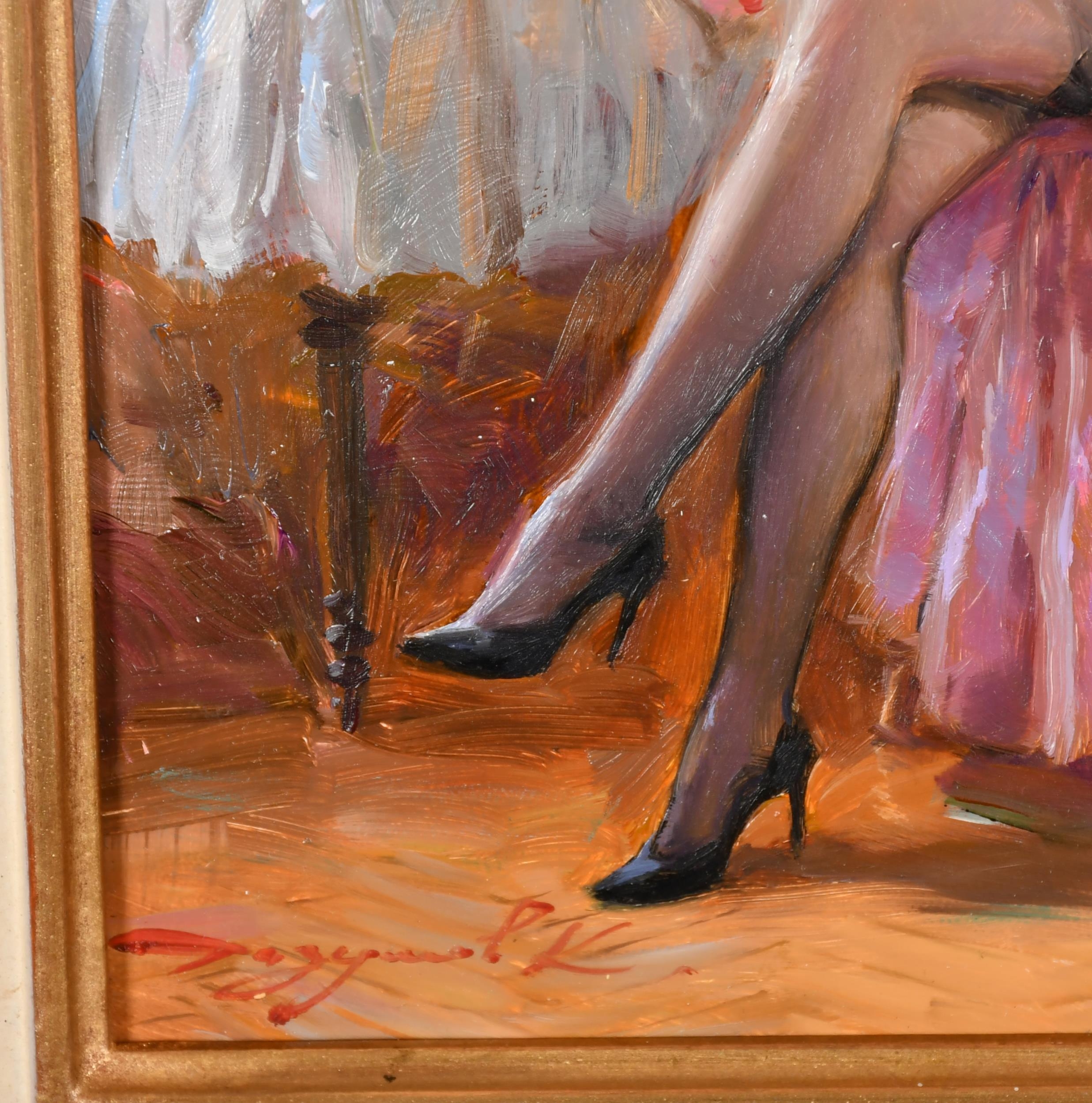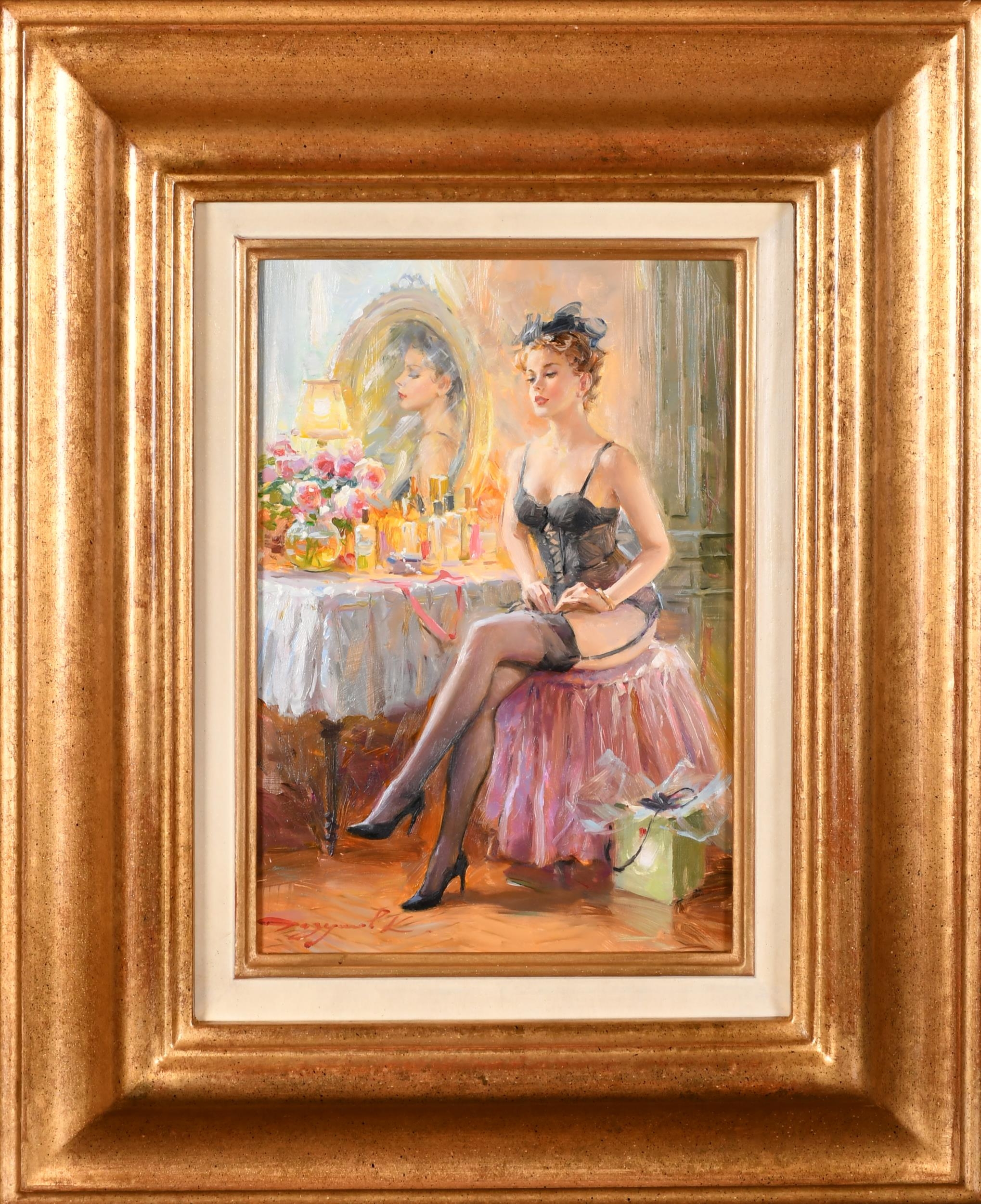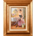 Konstantin Razumov (1974-) Russian. "Before Bedtime", Oil on canvas, Signed in Cyrillic, and signed and inscribed in Cyrillic verso, 10.75" x 7.5" (27.3 x 19cm)