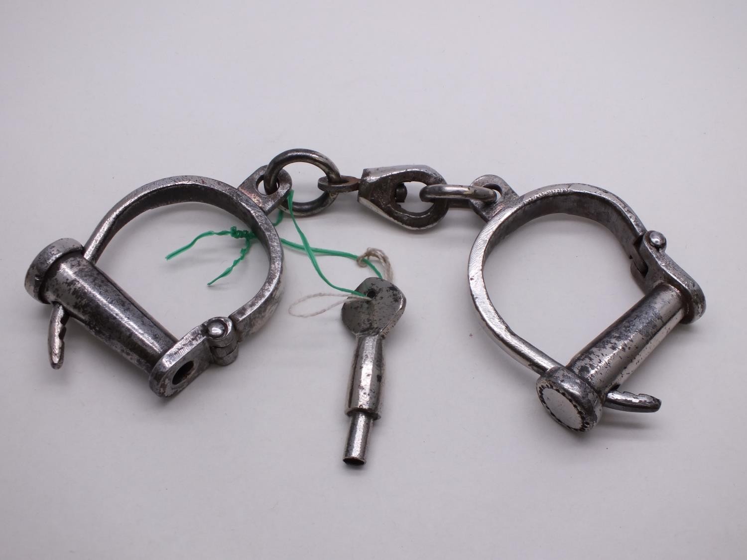 ANTIQUE HIATT POLICE HANDCUFFS/SHACKLES WITH KEY