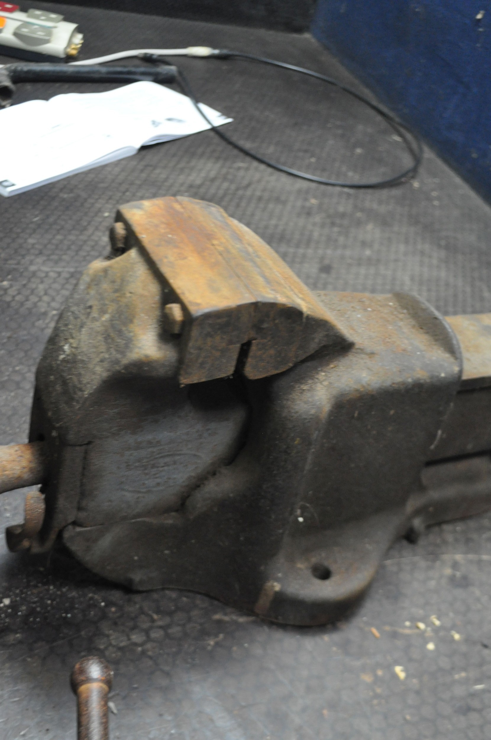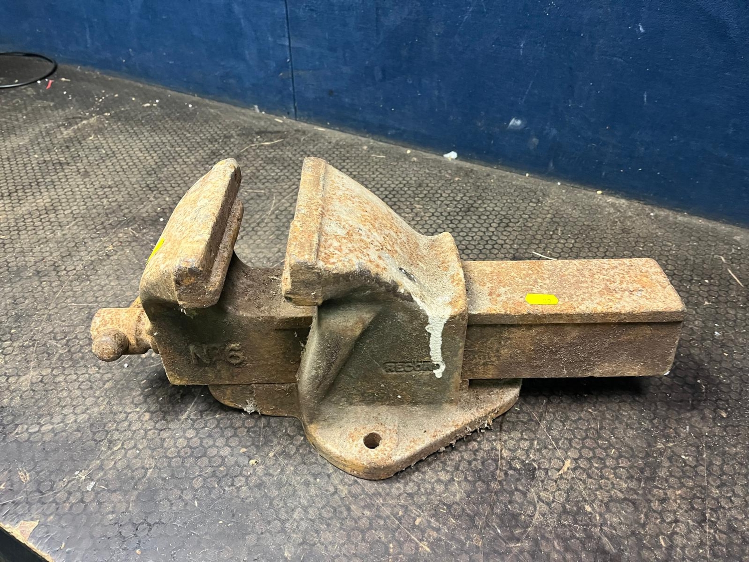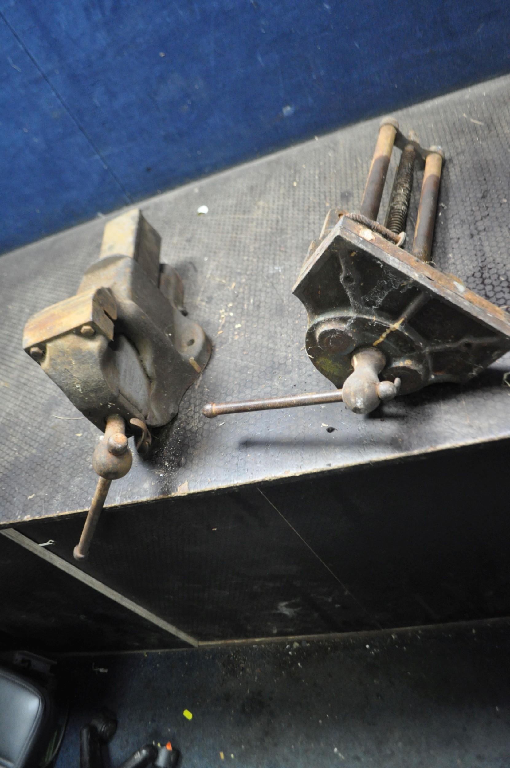 A RECORD No.52 1/2 WOOD WORKING VICE with 9in jaws, a Record No.6 vice and an engineers vice with 4in jaws (3) Condition Report; both have surface rust and impede operation slightly but No.6 seized