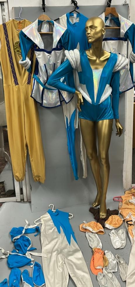 Selection of stage worn "Cosmic" costumes including leotards, socks and headwear / AN110
