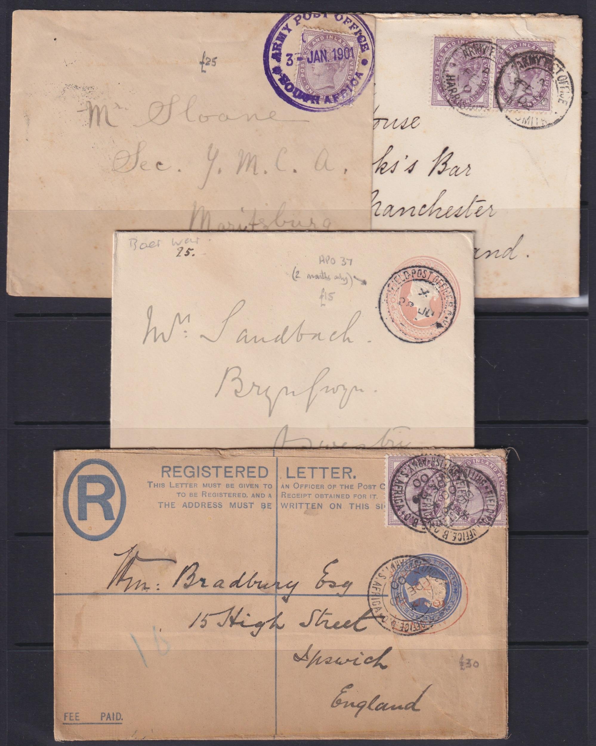 Boer war range of 39 covers in packet, mostly bearing GB 1d lilacs and addressed to UK, mixed condition, a useful group and excellent value