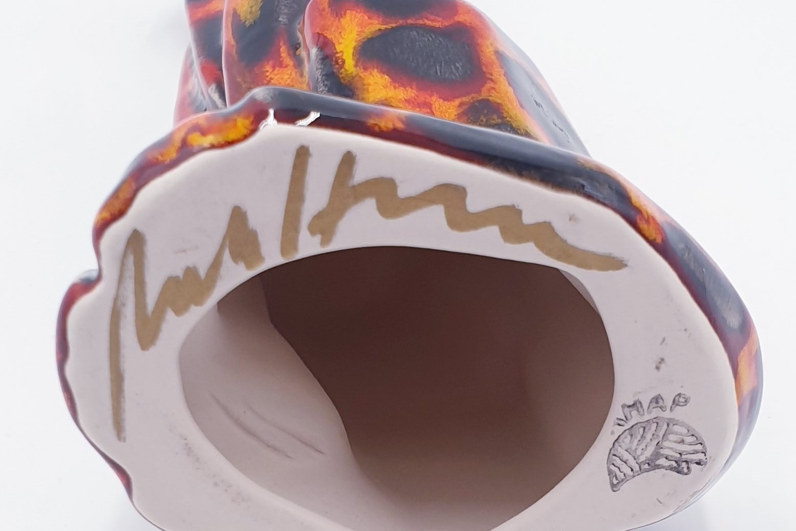 ANITA HARRIS ART POTTERY Large 23cm MODEL OF A CAT IN THE HOT COALS DESIGN (Signed In Gold By Anita Harris)