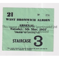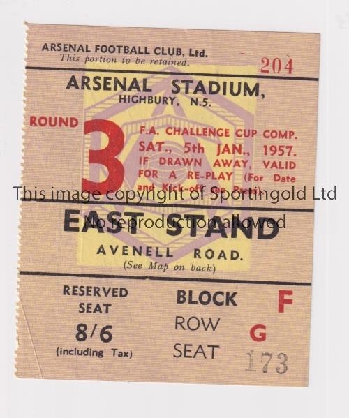 ARSENAL Ticket for the home FA Cup tie v Stoke City 5/1/1957, slightly creased. Generally good
