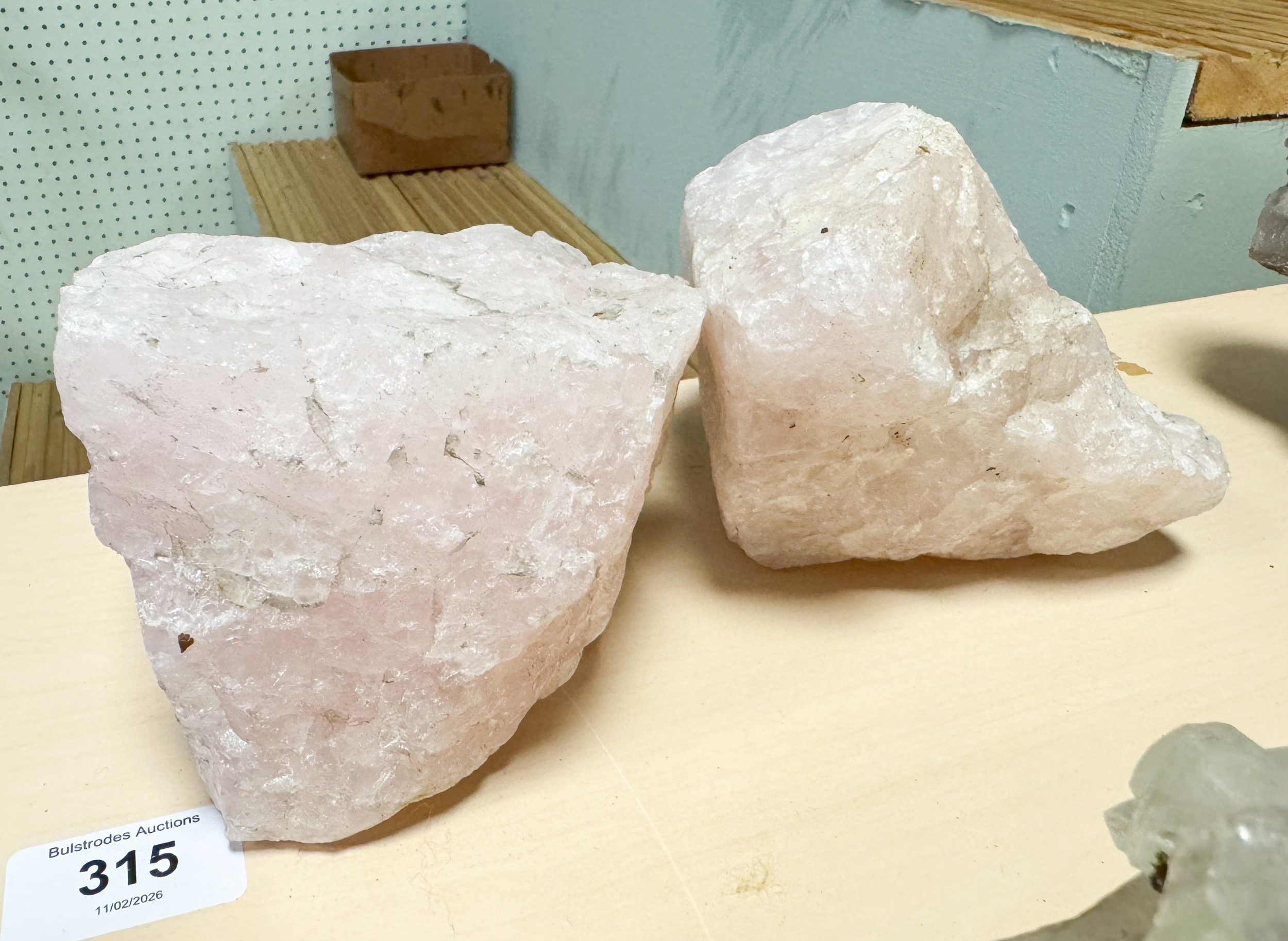Two pieces of rose quartz