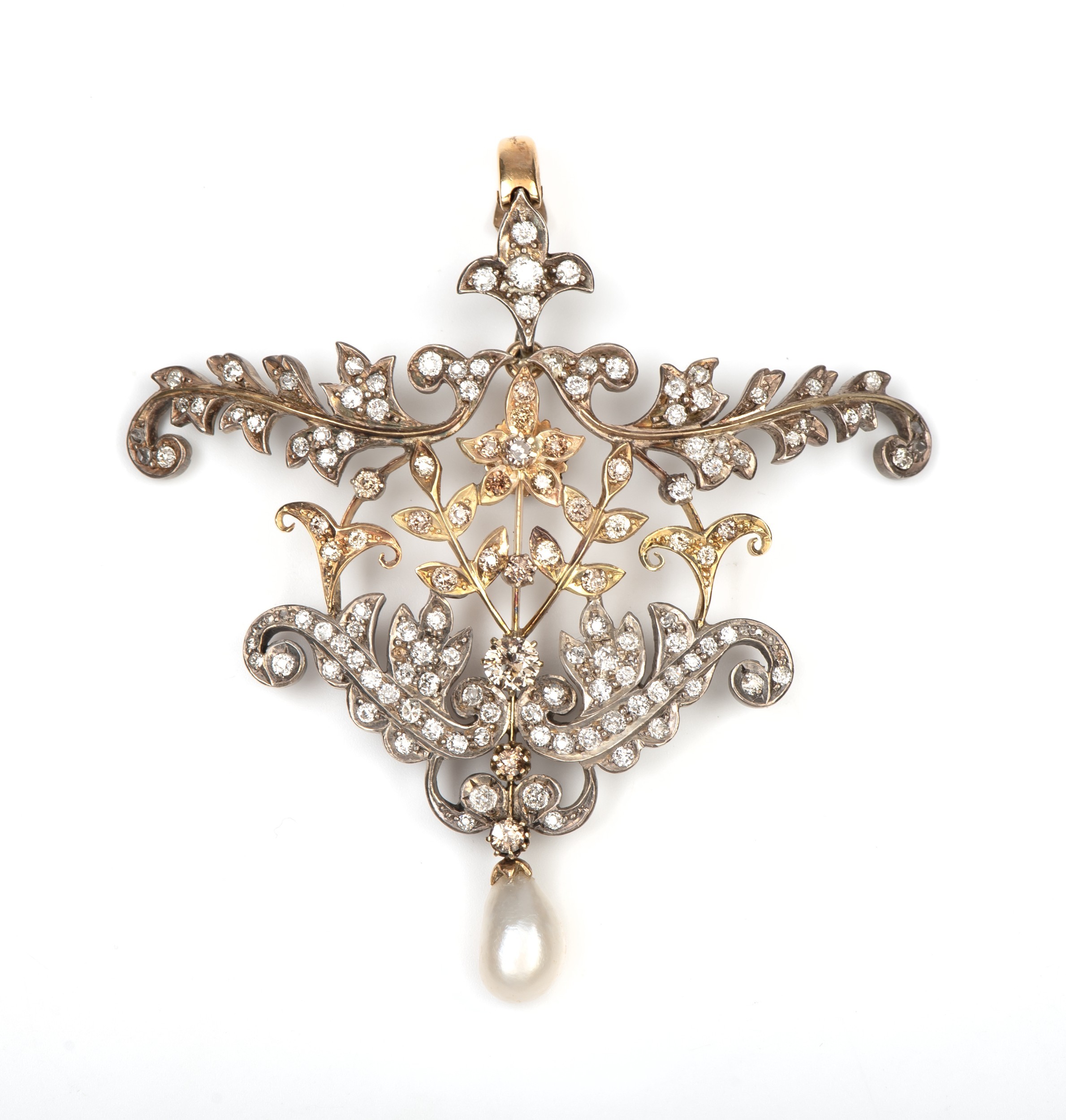 A NATURAL DIAMOND AND PEARL TIARA PENDANT, LONDON, LATE 19TH CENTURY