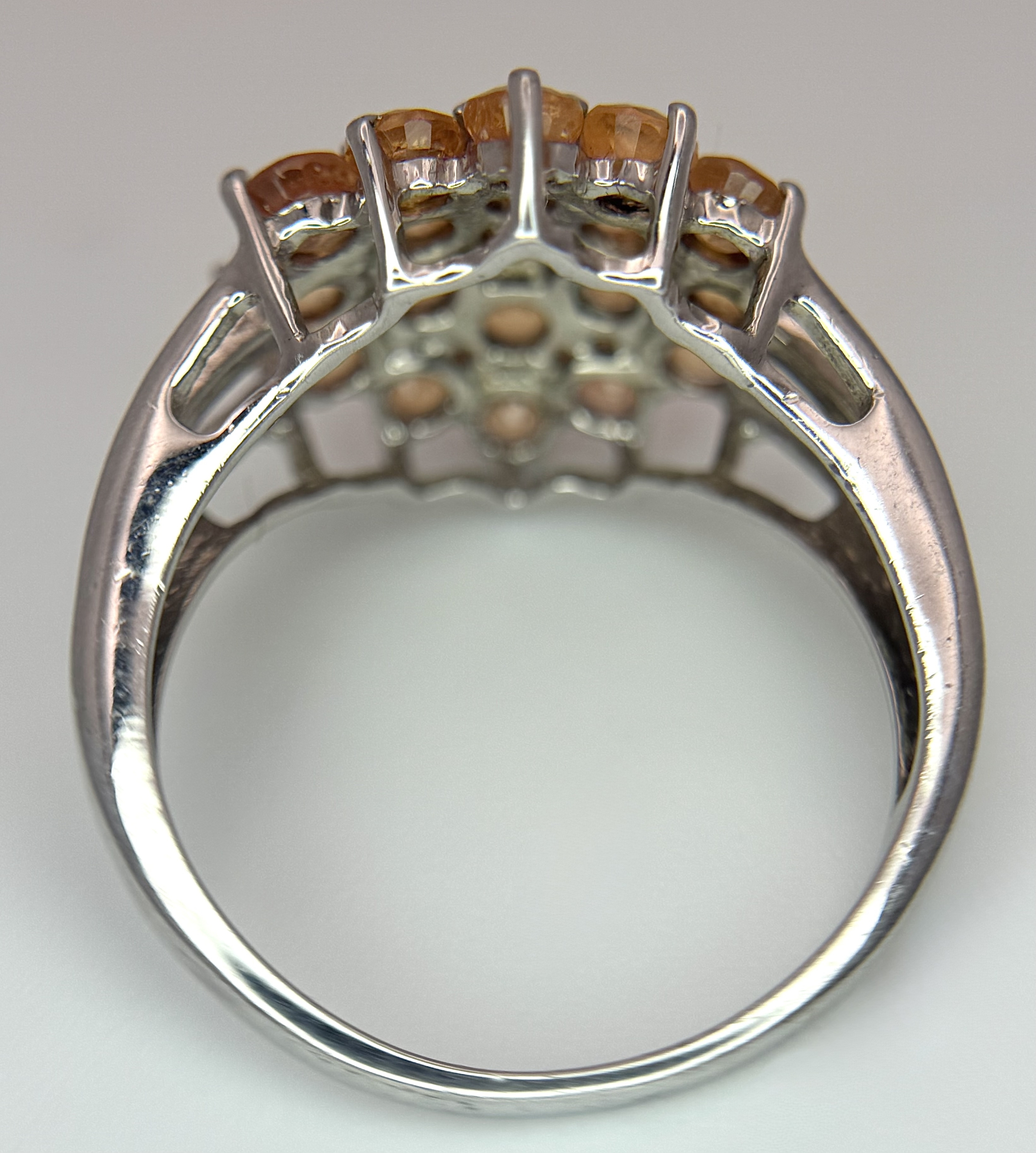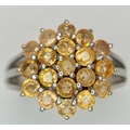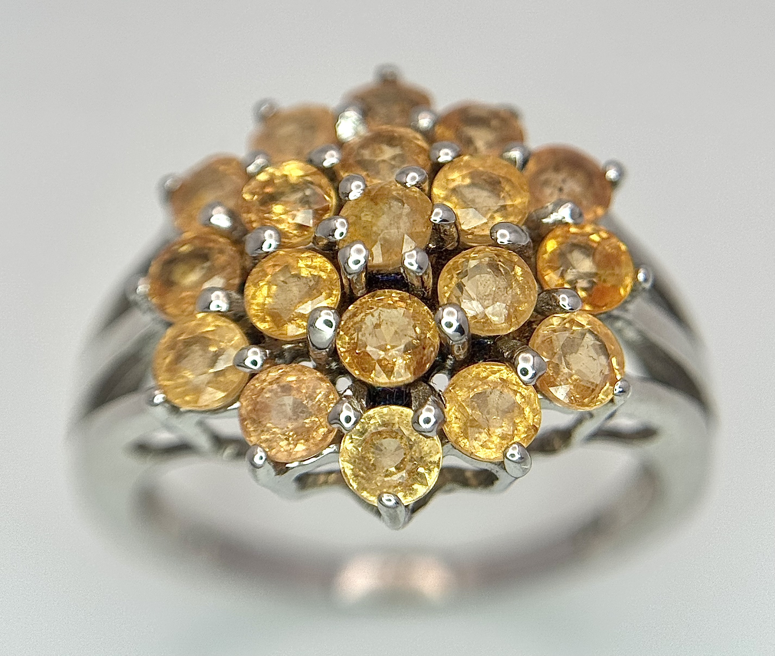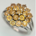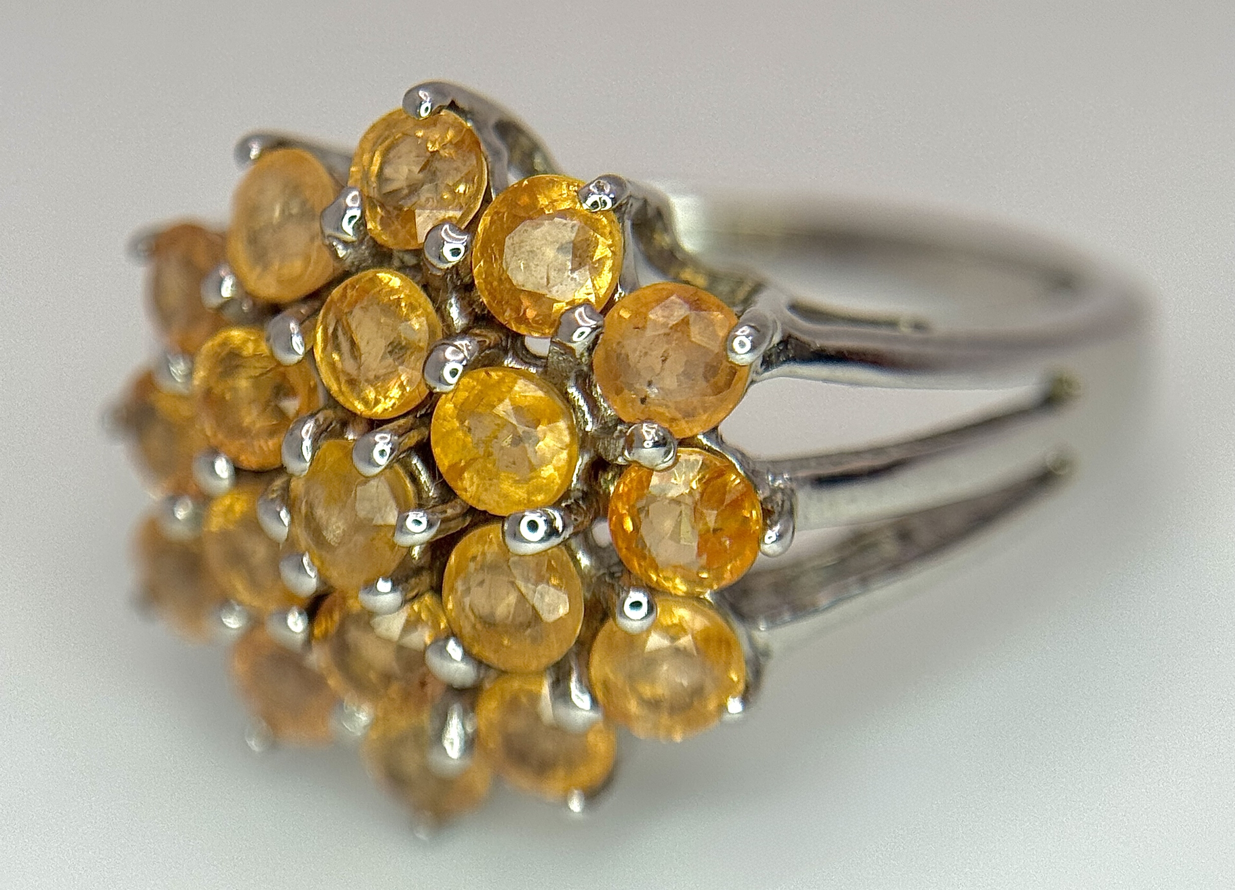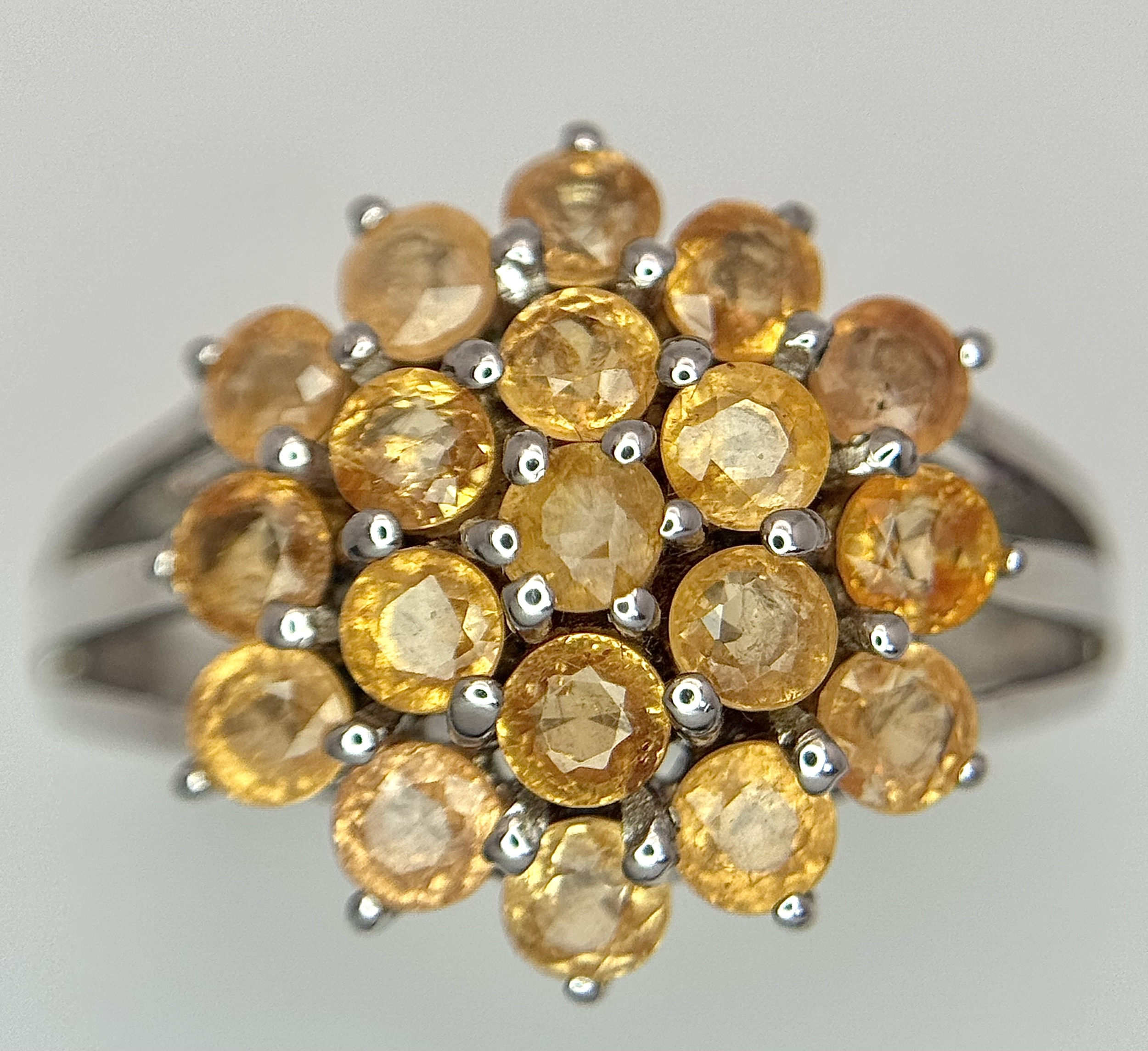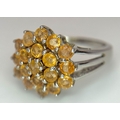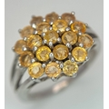 An Eye-Catching Sterling Silver Citrine Cluster Ring Size P1/2. The Ring measures 1.6cm Wide at the Crown and Weighs 4.15 Grams.