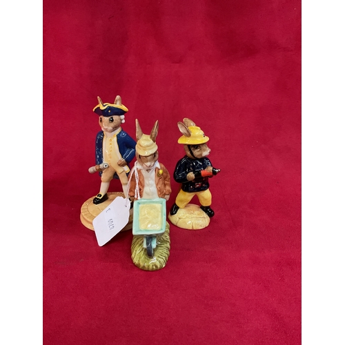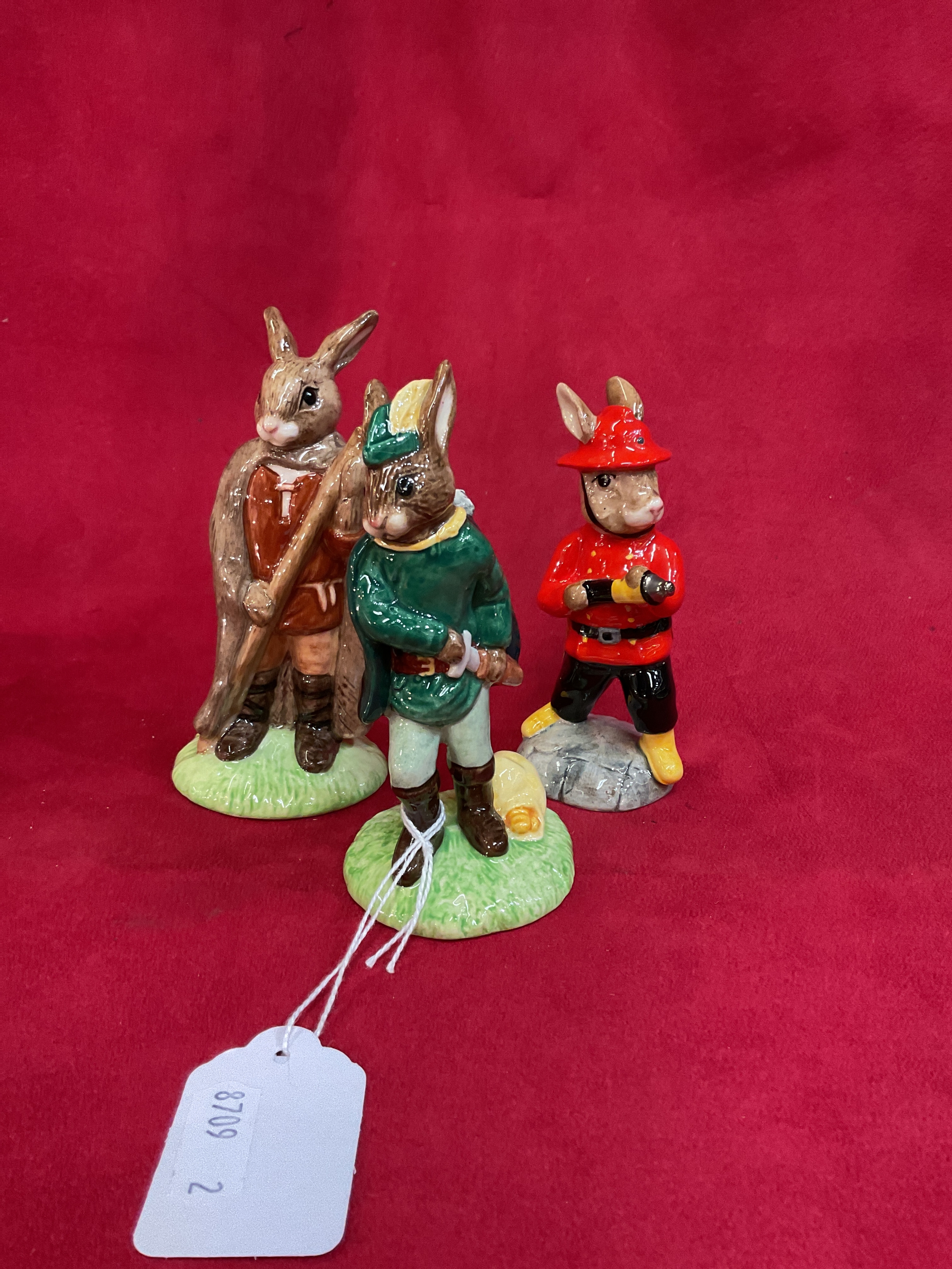 Three Royal Doulton Bunnykins figures 'Fireman', 'Friar Tuck' and 'Robin Hood'
