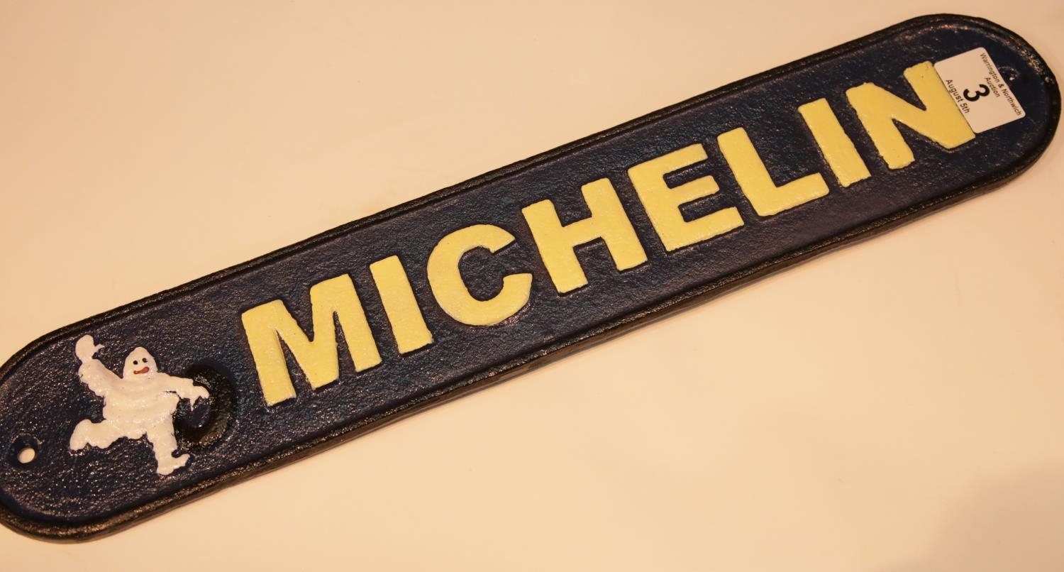 Cast iron Michelin sign, 48 x 9 cm. P&P Group 2 (£18+VAT for the first lot and £2+VAT for subsequent lots)