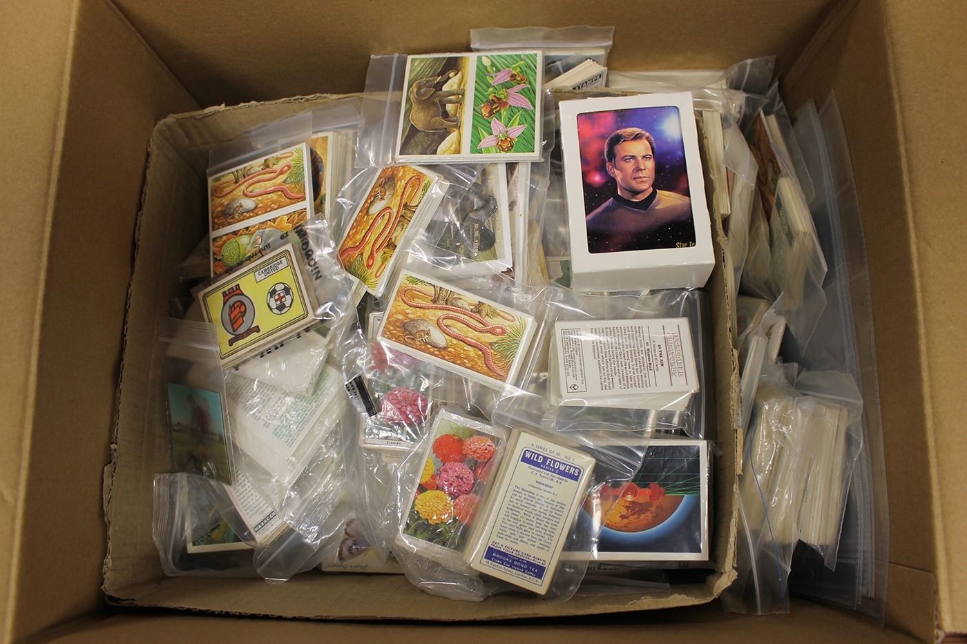 Collection in 3 albums and loose, generally very good, including ranges of B.D.V, Carreras, Churchman with Boxing Personalities, Cope, Gallahers, Players, RJ Leas with Butterflies and Moths (silk) (4), Services with Ancient Warriors, Turfs with British Aircraft, Taddy and Wills. Plus trade cards including Brooke bond, Frys and Lyons Tea. (2B)