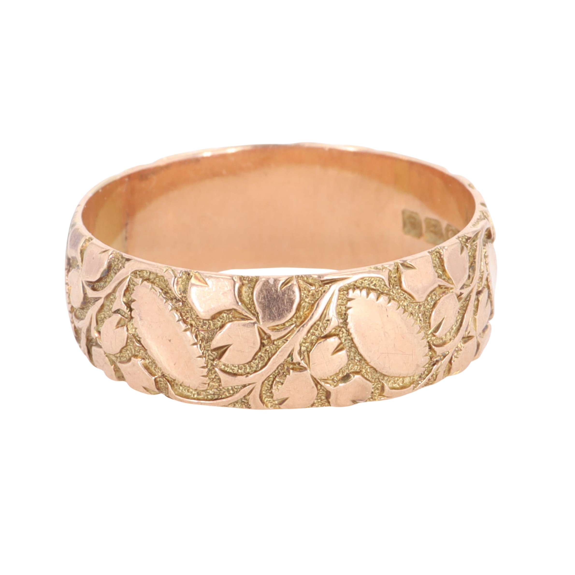 Edwardian Patterned 9ct Gold Band Ring, 4.5g