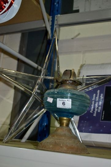 Vintage Blue Glass Well Oil Lamp Base + Star 3D Tealight Holder