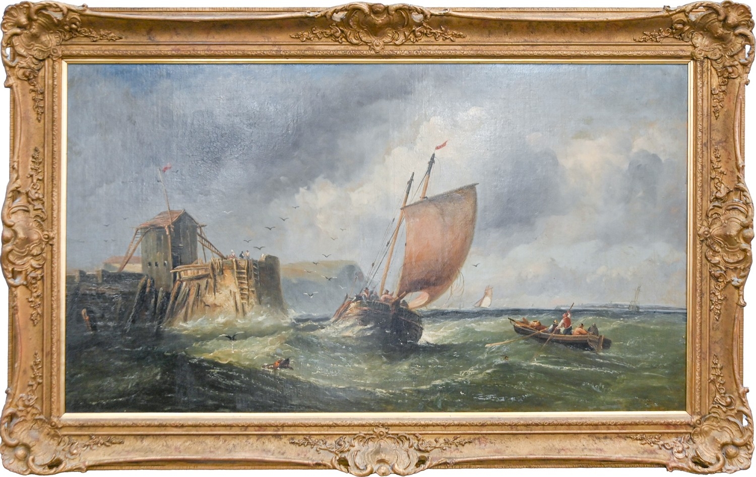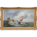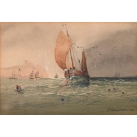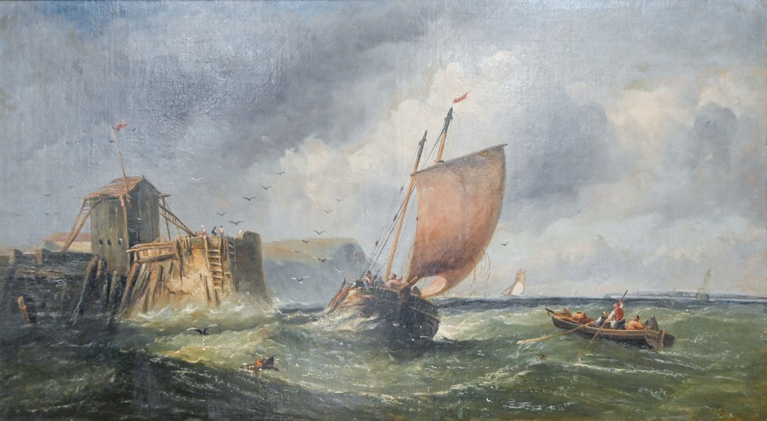 Attributed to James Edwin Meadows - Fishing Boats on Choppy Seas, oil on canvas, 59 x 104cm