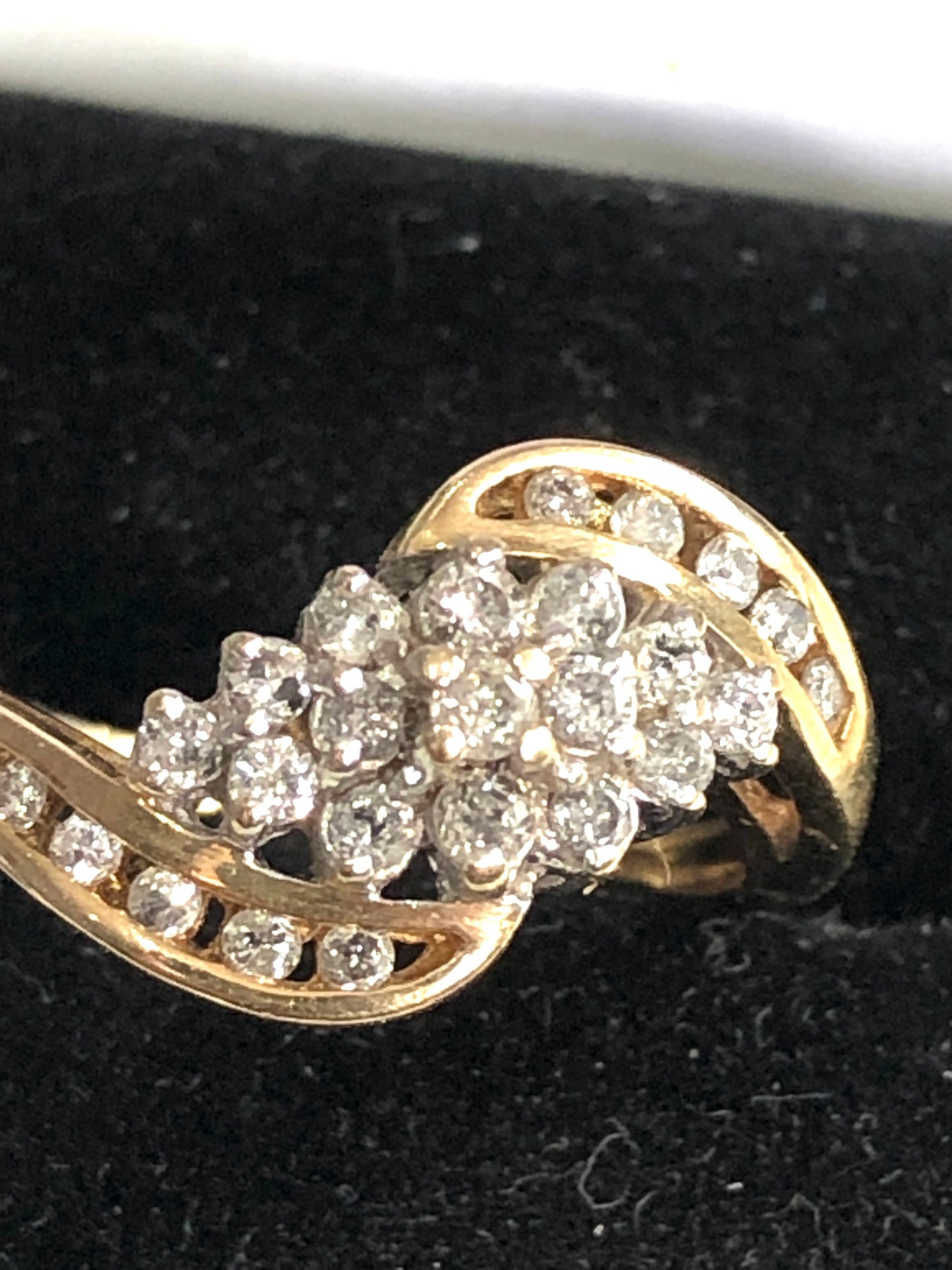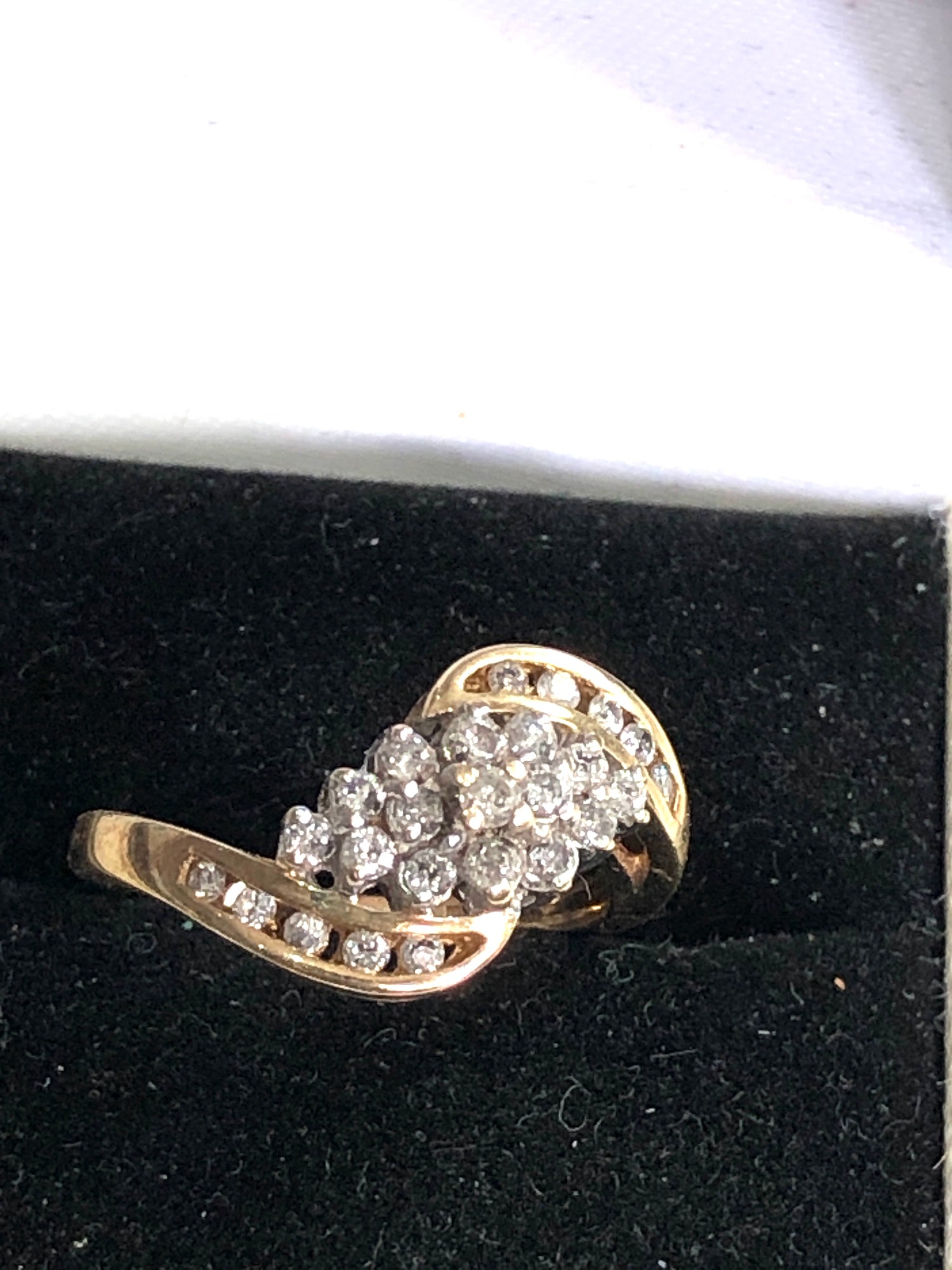 10ct gold diamond cluster cocktail ring est 0.30ct diamonds 3.6g