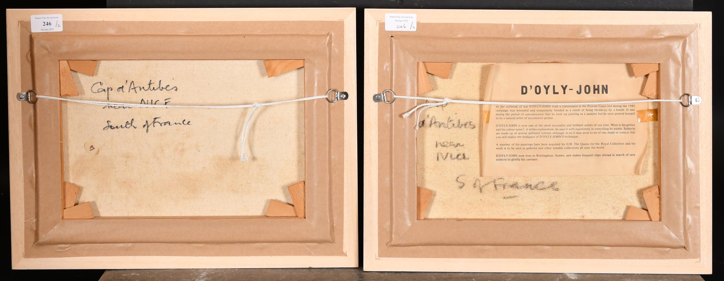 Cecil Rochfort D'Oyly John (1906-1993) British. "Cap d'Antibes, Near Nice, South of France", Oil on canvas, Signed, and inscribed verso, 10" x 14" (25.4 x 35.5cm) and the companion piece, a pair (2)