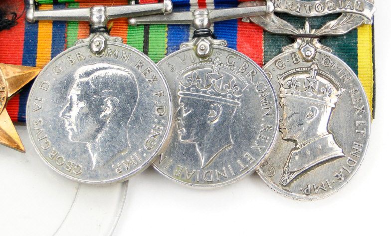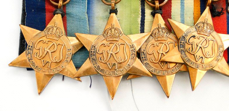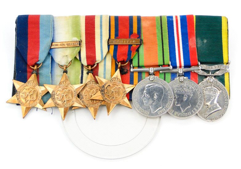 World War II British military medal group comprising 1939-45 War medal, 1939-45 Star, Defence medal, Atlantic Star with France and Germany bars, Africa Star, Burma Star with Pacific bar and a Territorial Efficient Service medal, the latter marked 911466 GNR.H.R.HARMAN.R.A. to the rim
