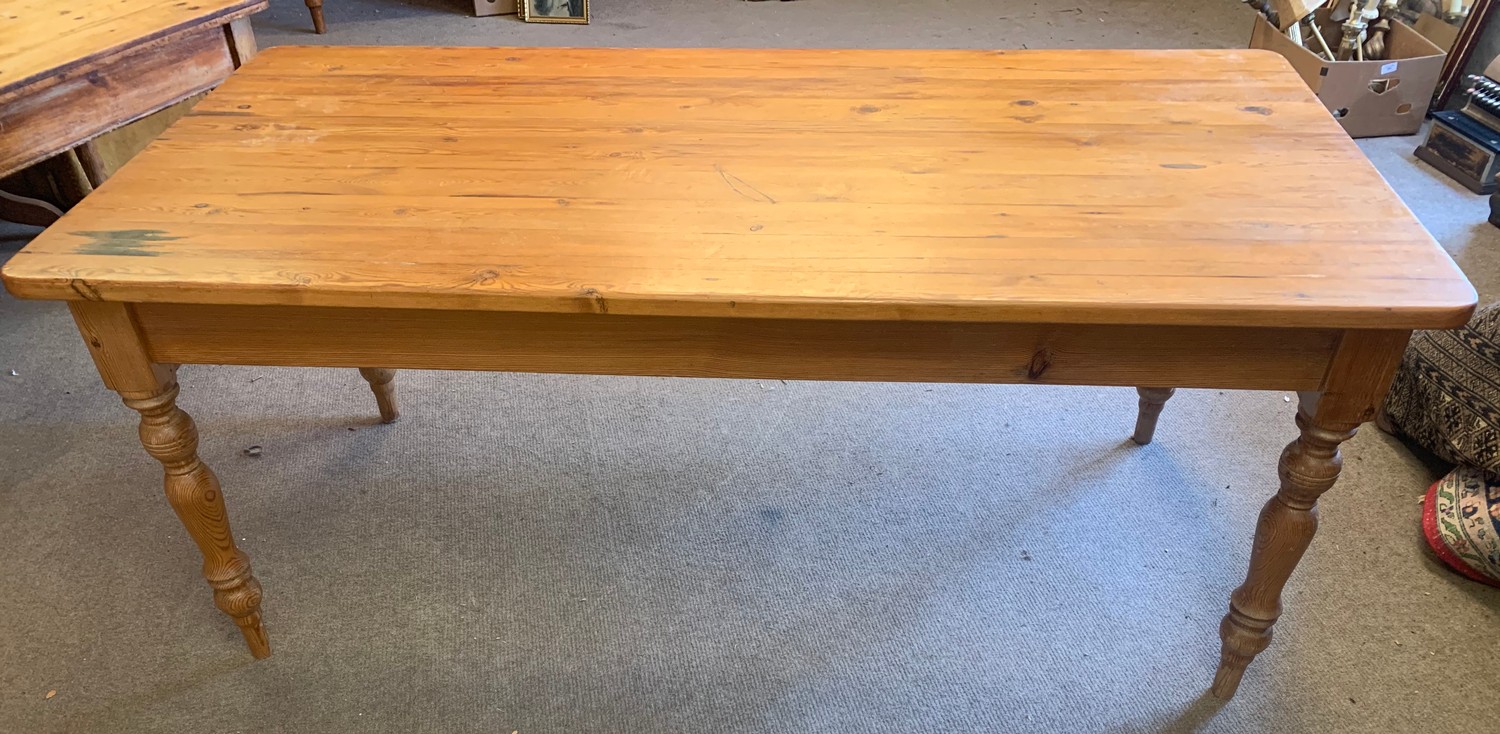 Large Pine Farmhouse Table. 183 x 91 x 78 cms