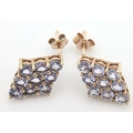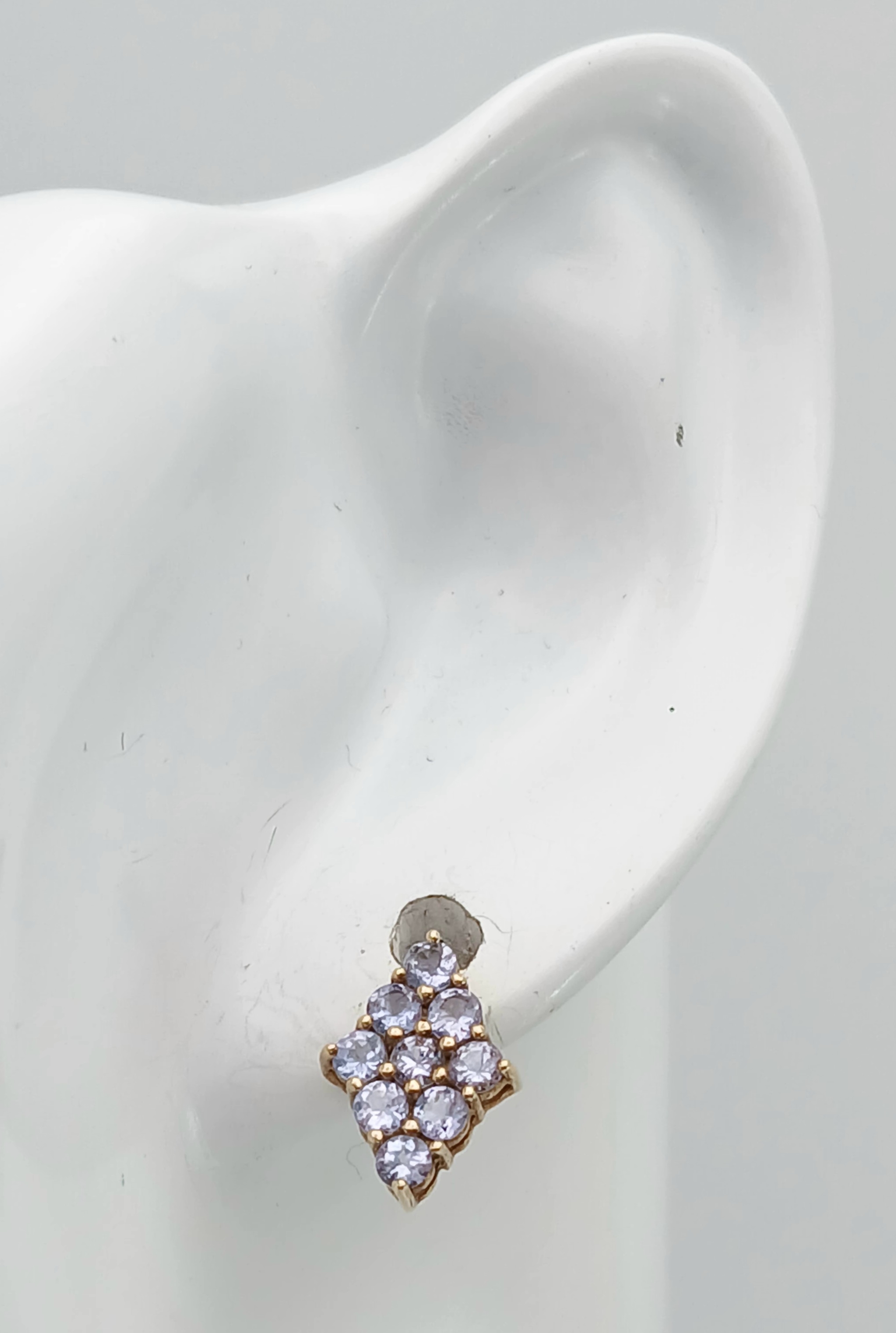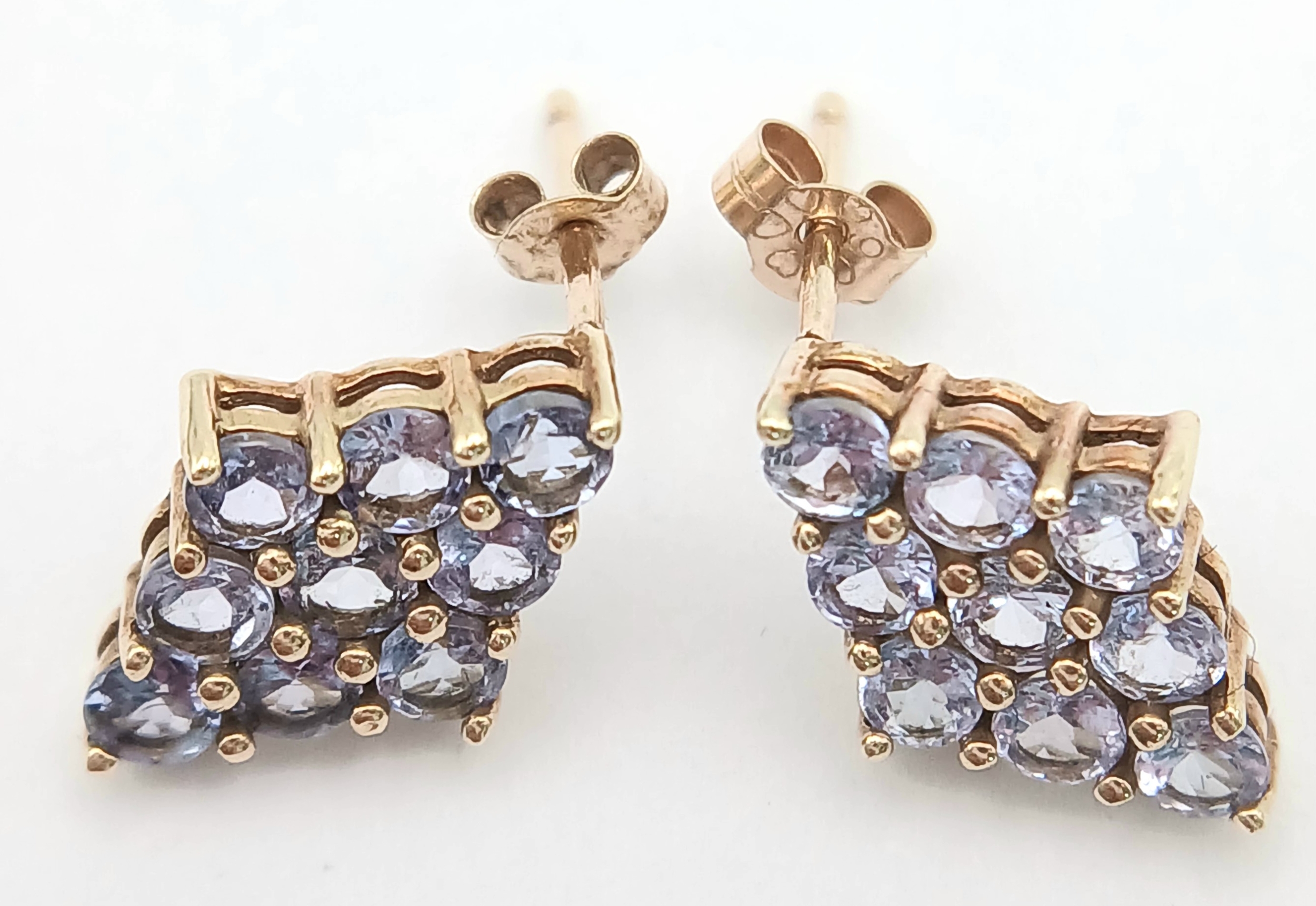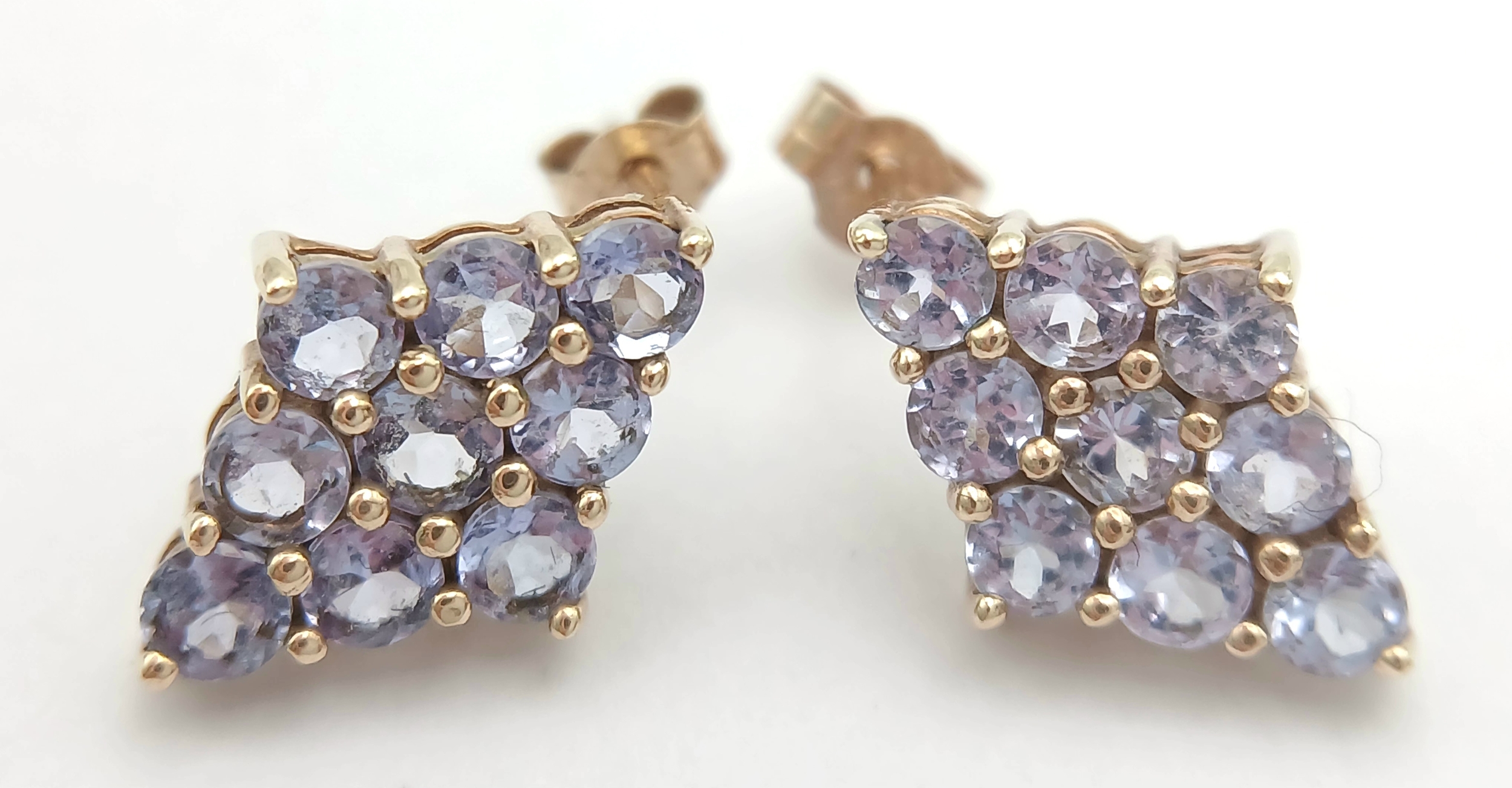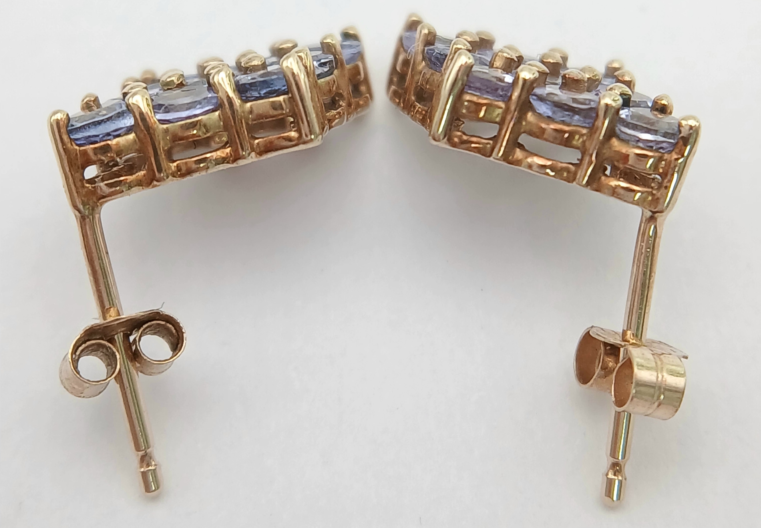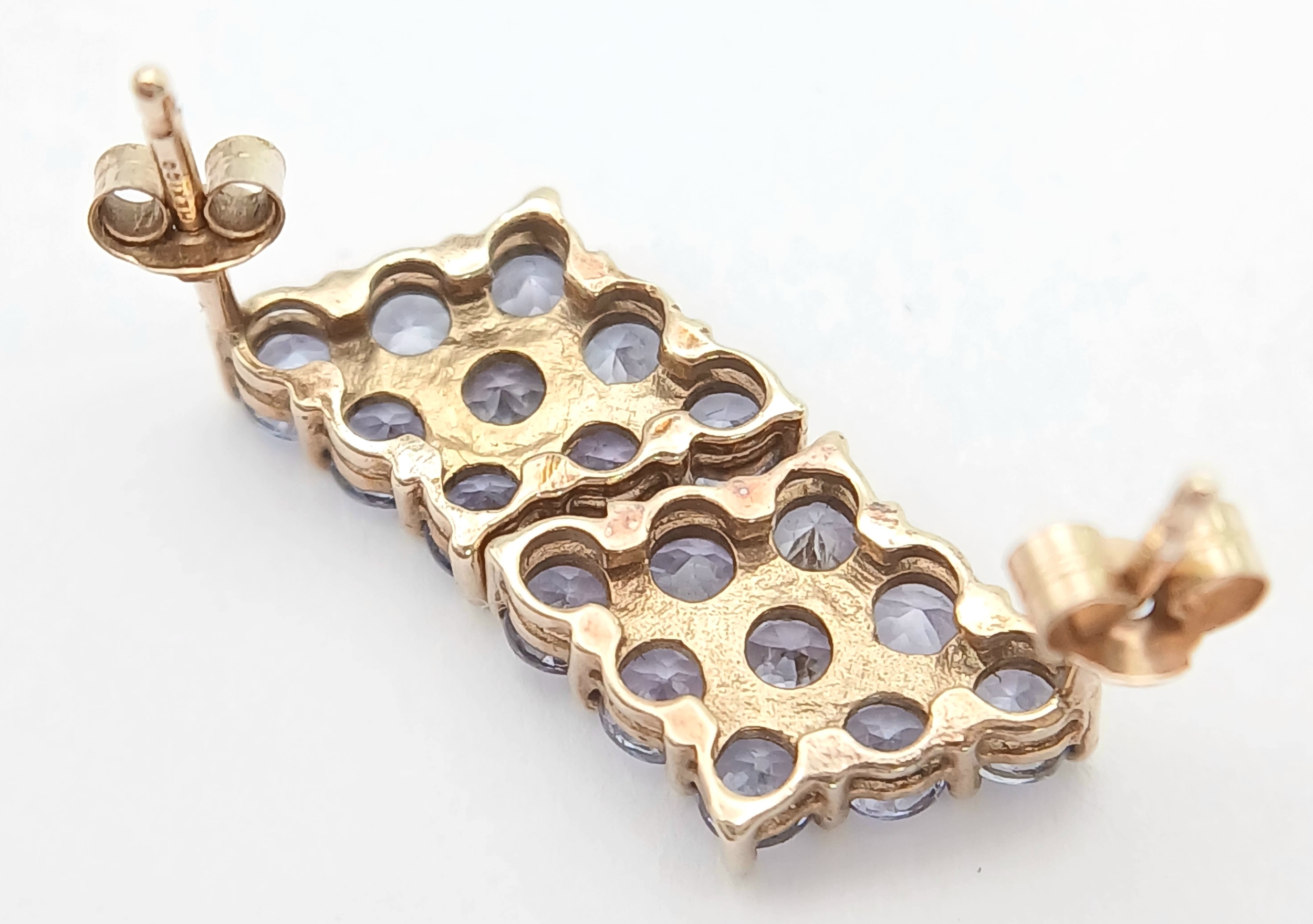 A Pretty Pair of 9K Gold Tanzanite Set Stud Earrings. 13mm Length. 9mm Width. Combined Gross Weight 1.3 Grams.