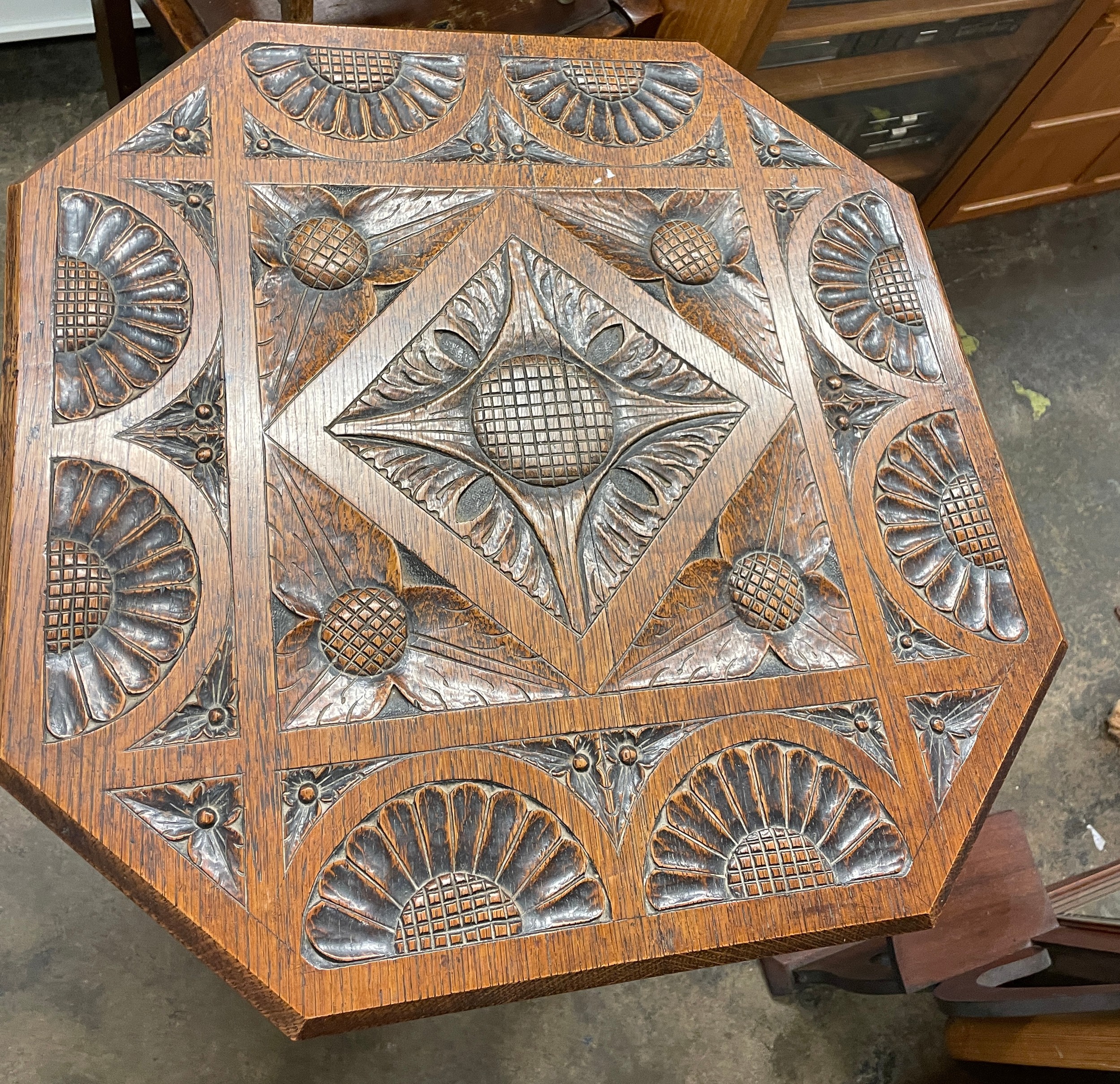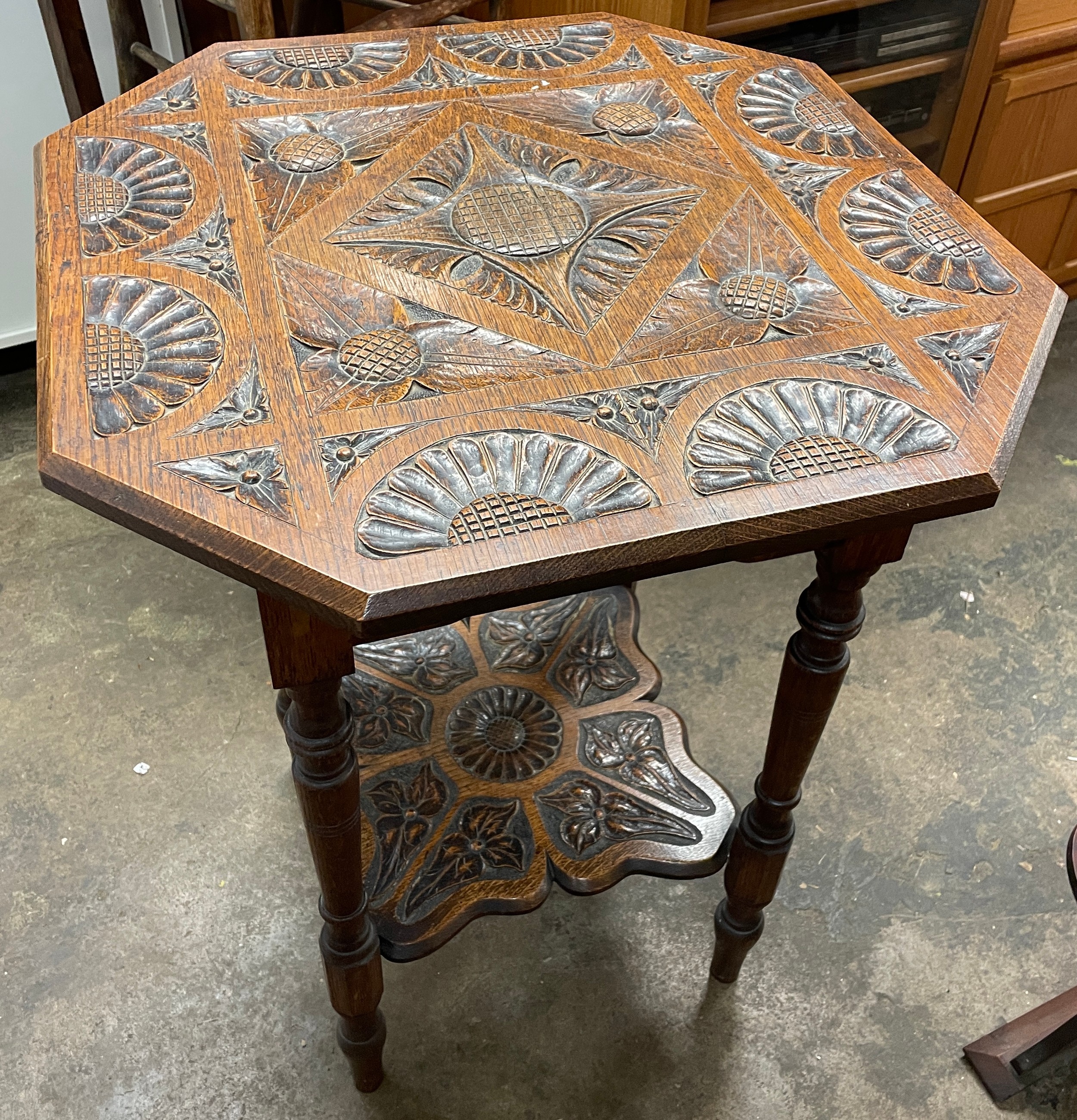 EDWARDIAN OCTAGONAL CARVED OCCASIONAL TABLE WITH UNDER TIER